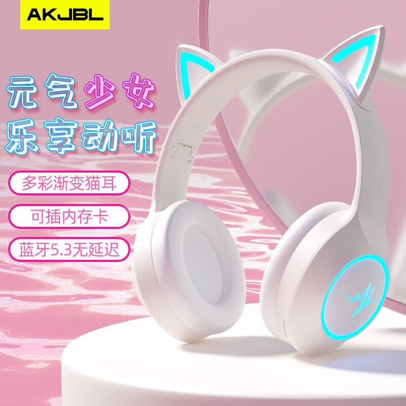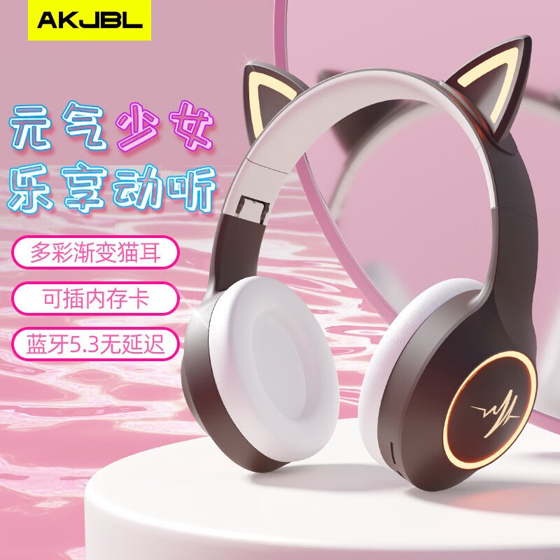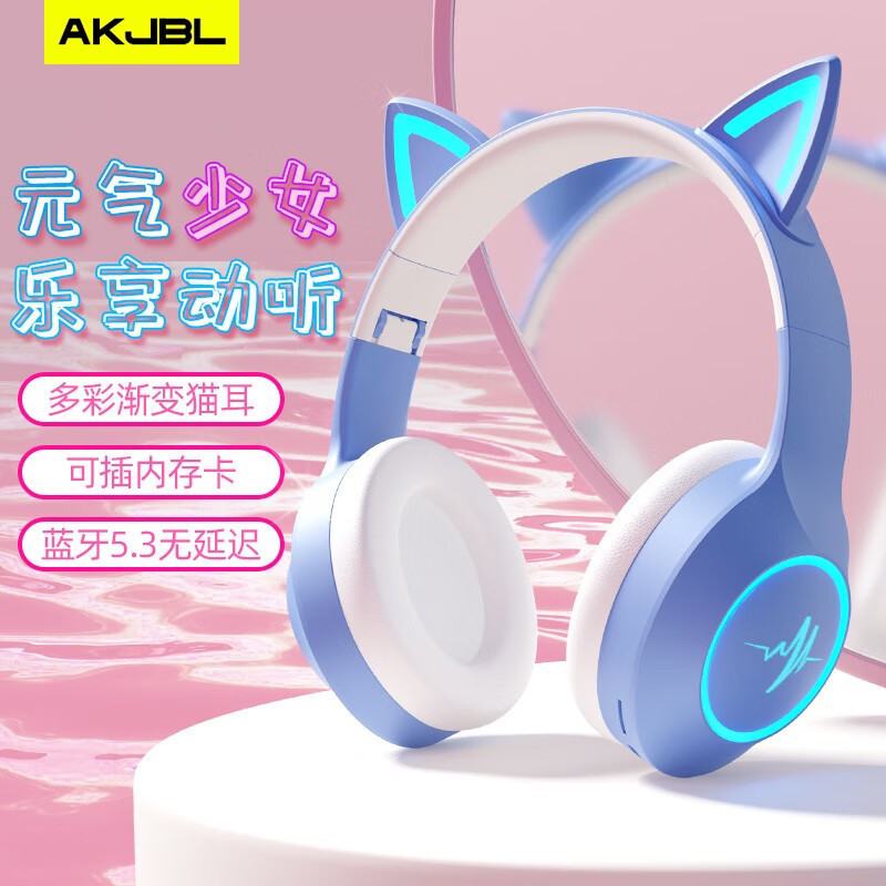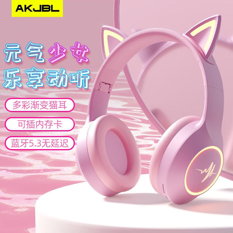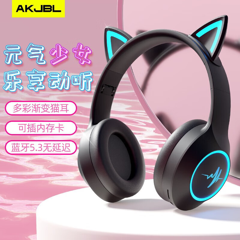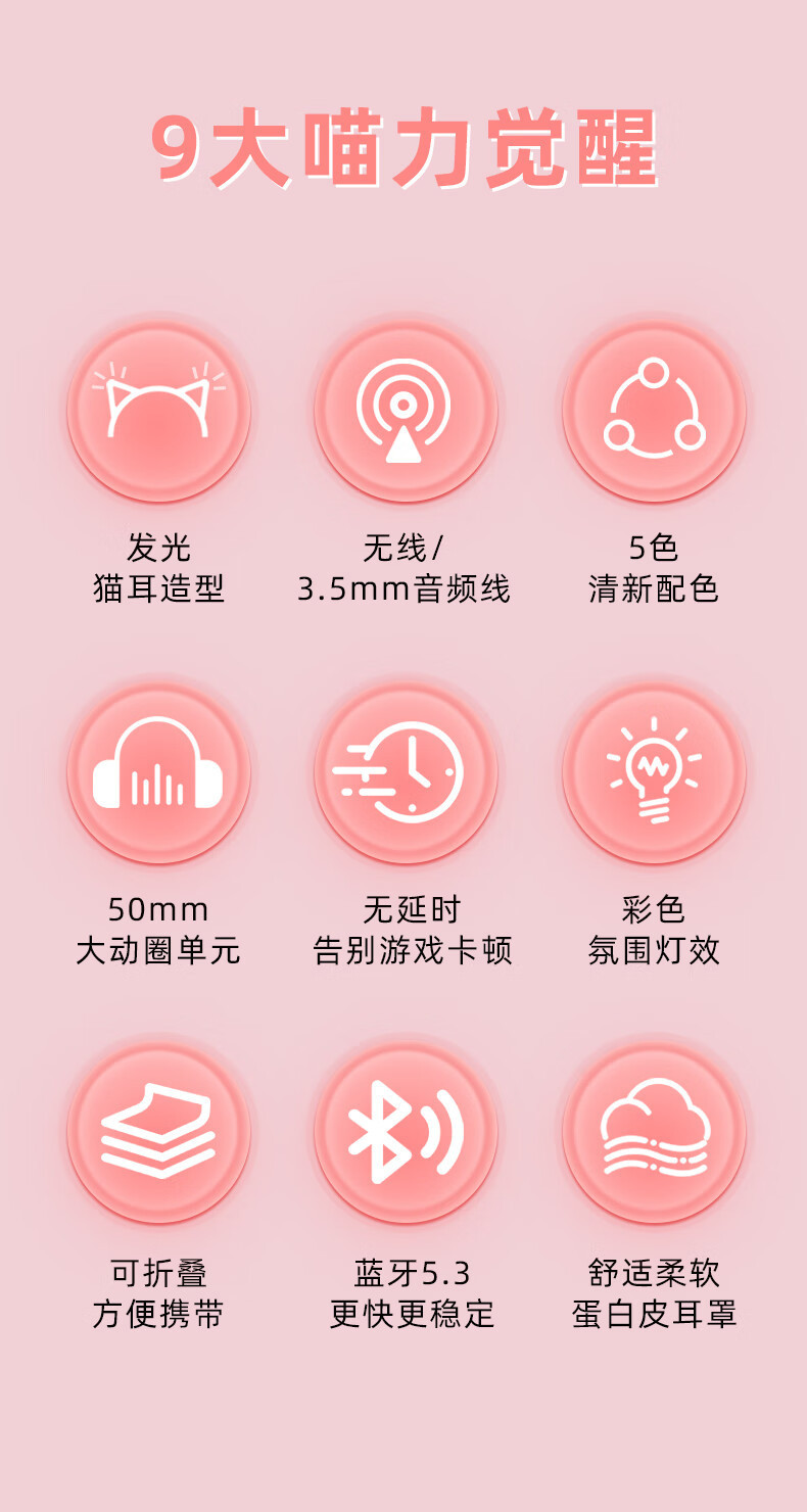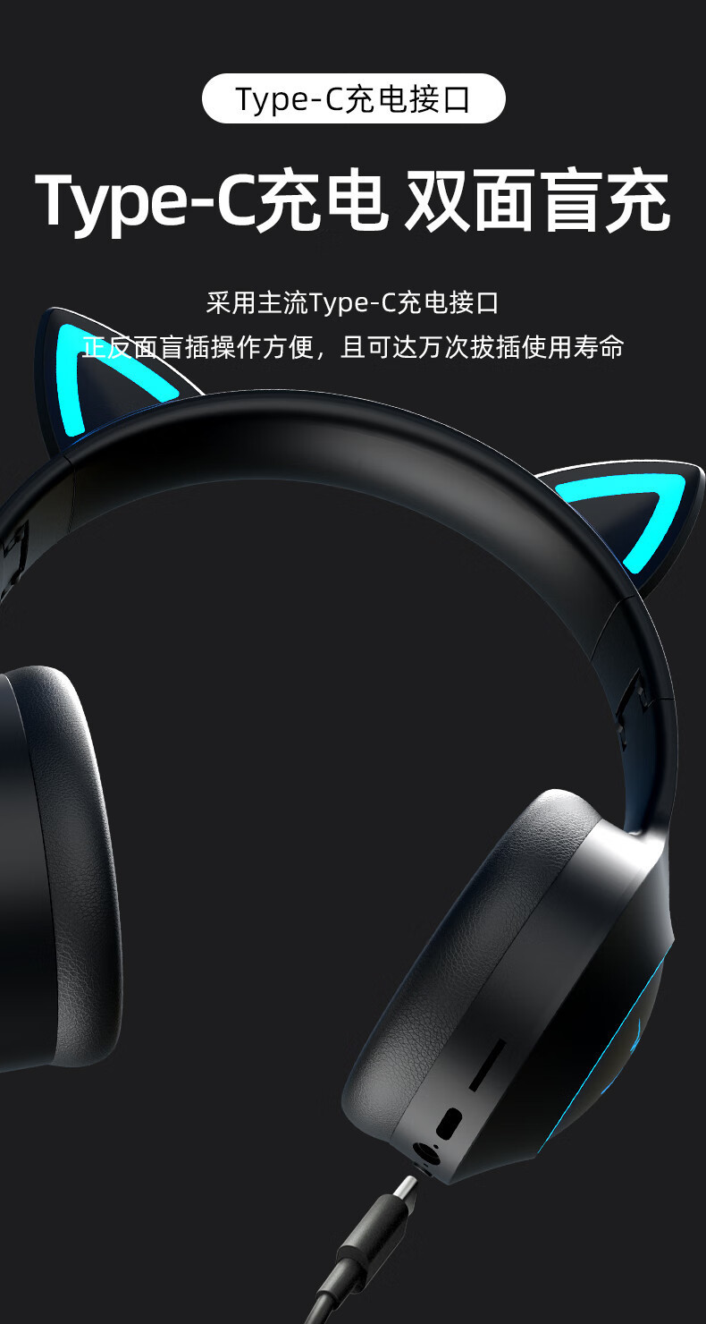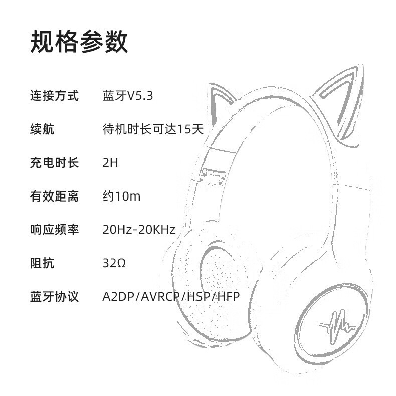 跨境新款YDM52无线蓝牙耳机儿童小孩少女猫耳可折叠发光游戏耳机