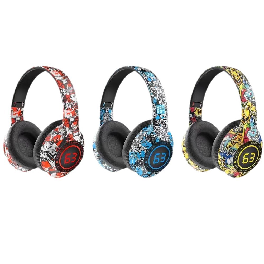 新款跨境爆款YDM63头戴式蓝牙耳机创意炫酷涂鸦RGB无延迟无线耳机