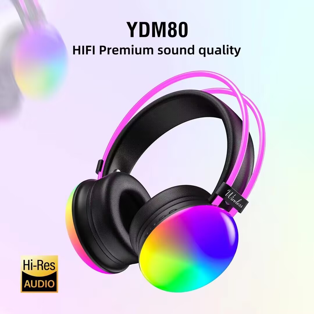 YDM80跨境新款头戴式蓝牙耳机无线发光重低音耳麦插卡有线耳机