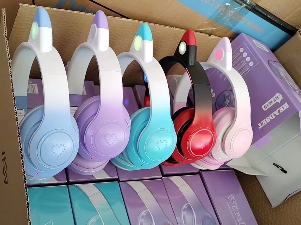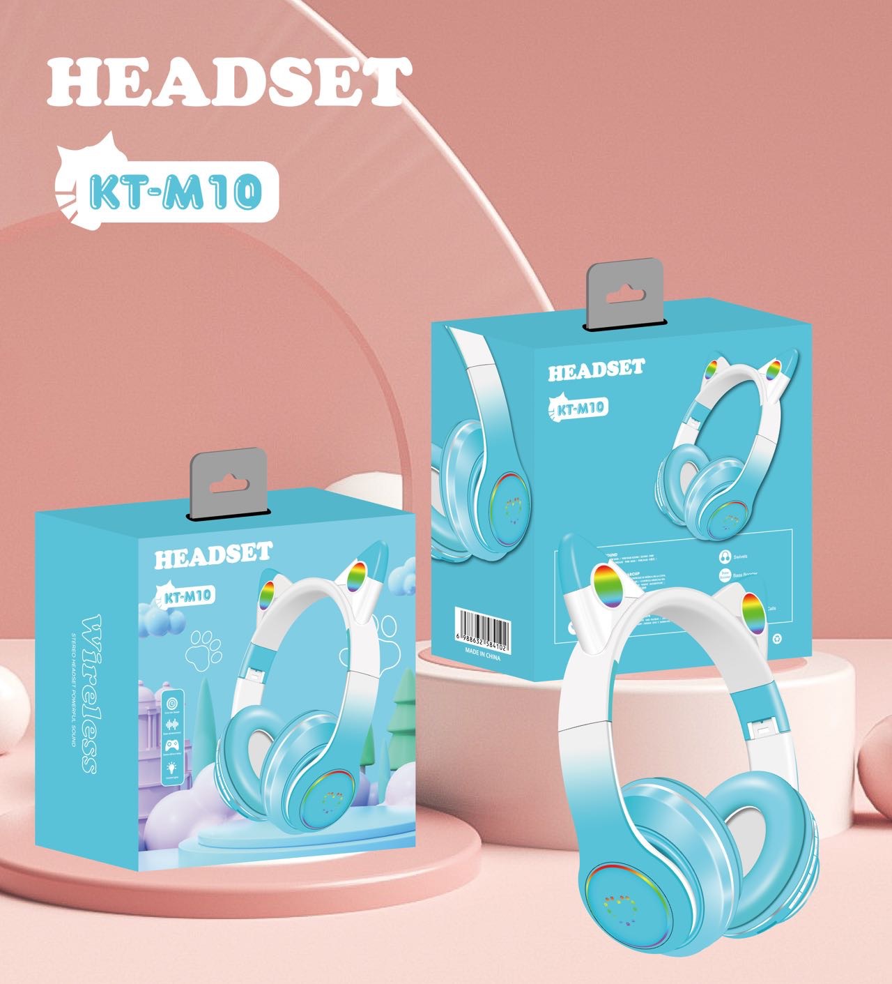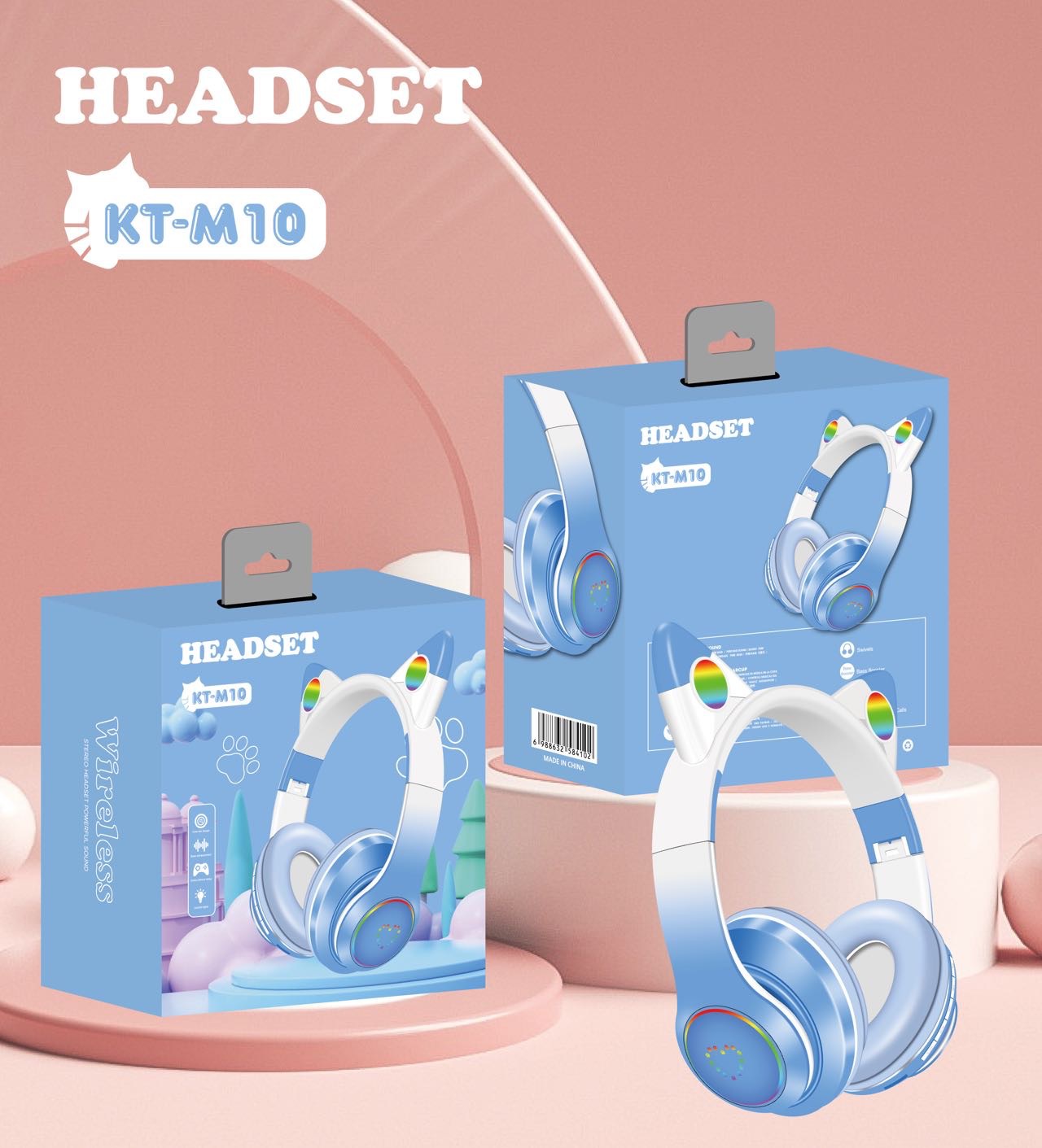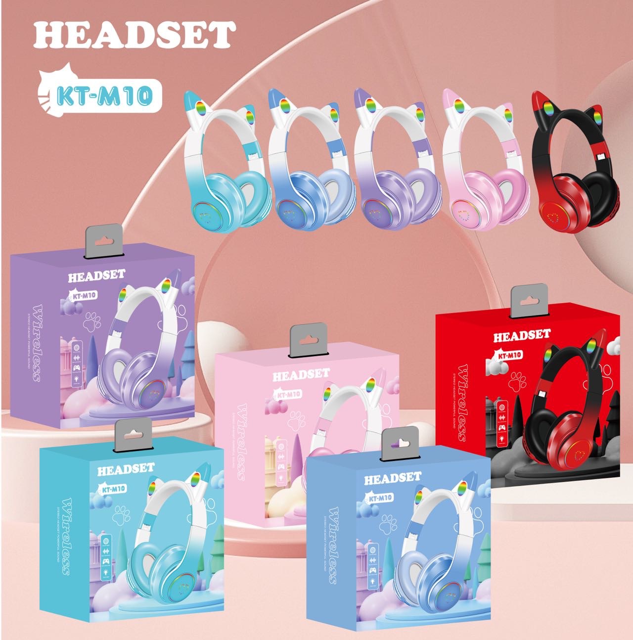 外贸跨镜新款KT-M10头戴式蓝牙耳机发光折叠可爱无线耳机批发直销