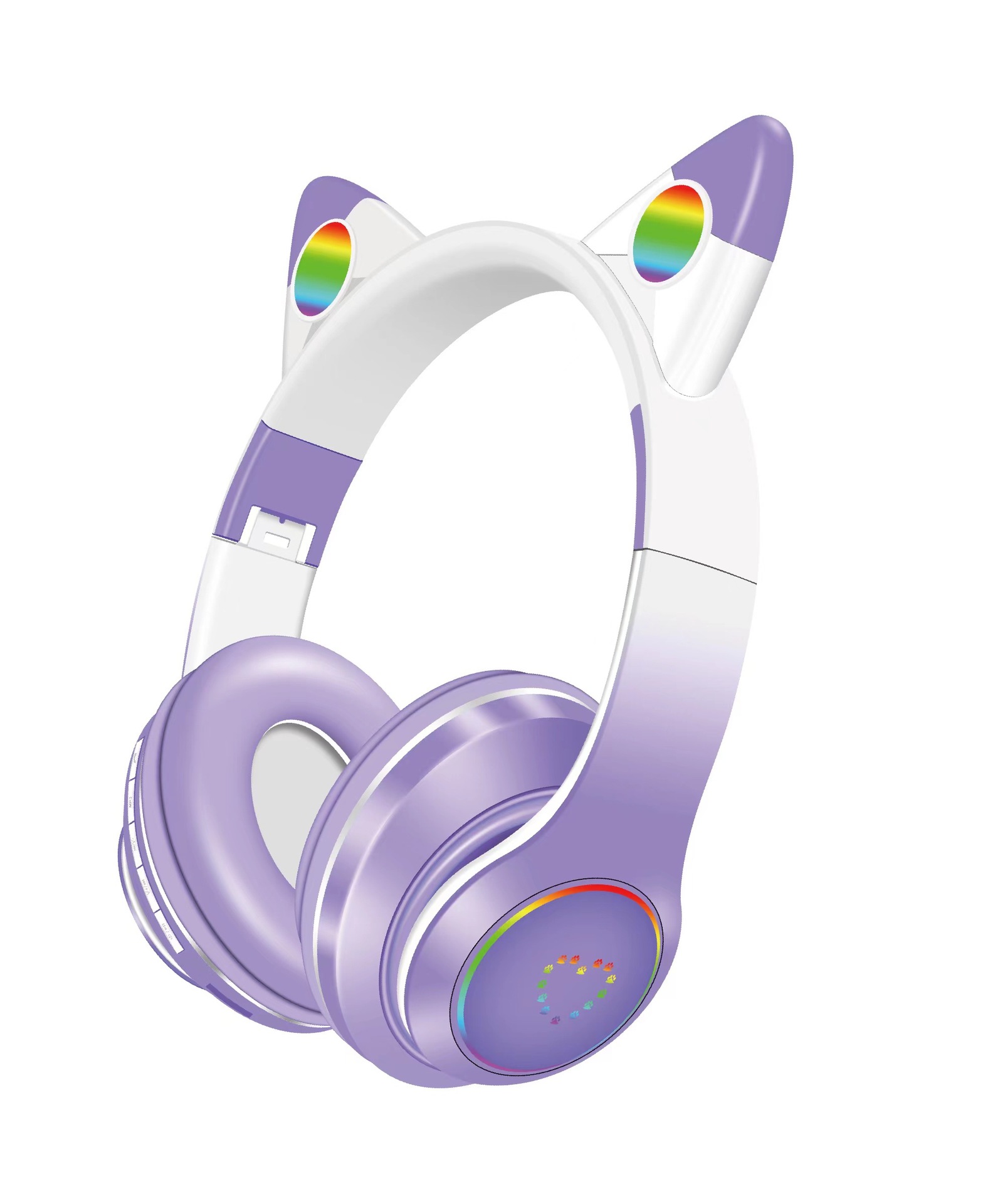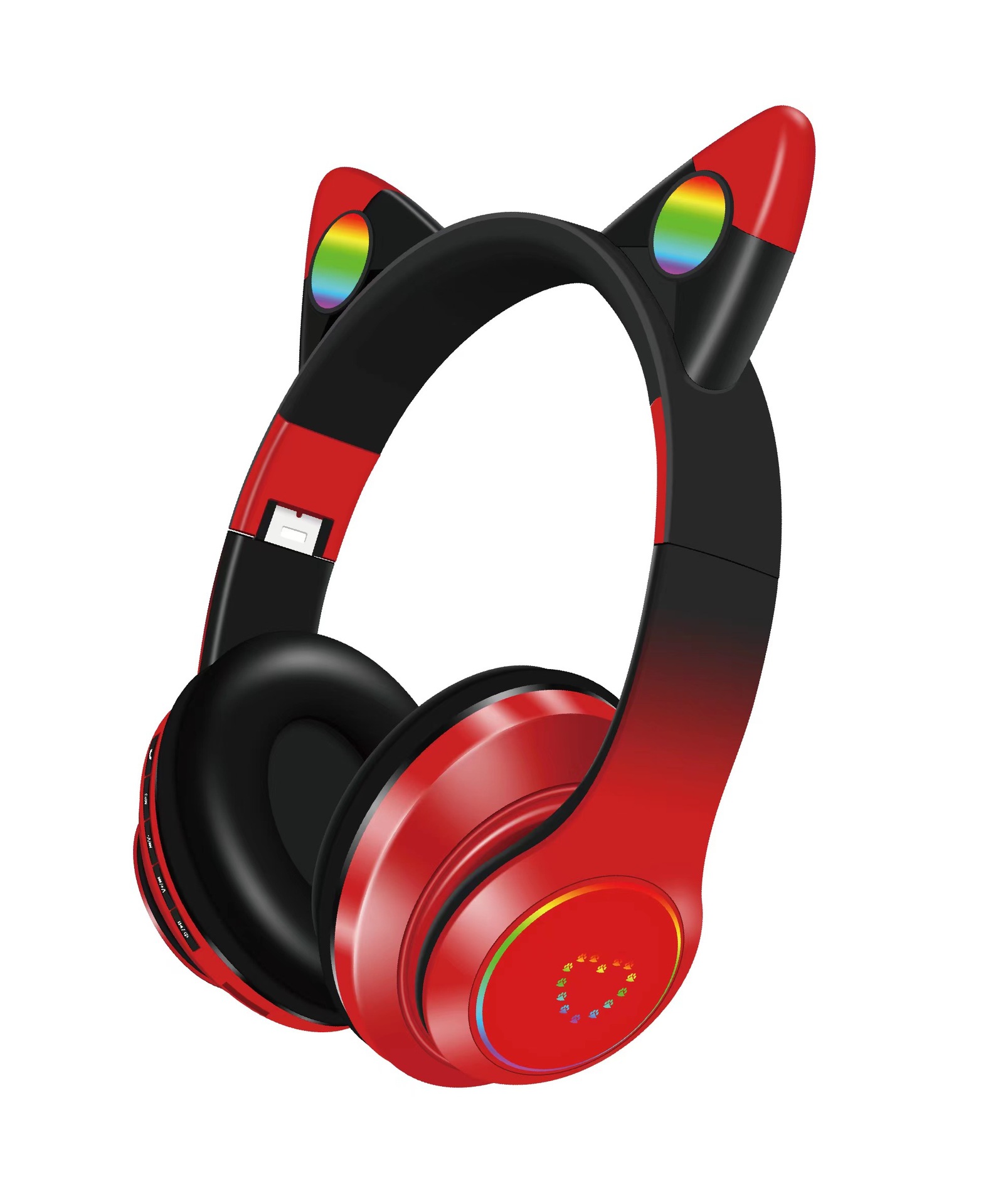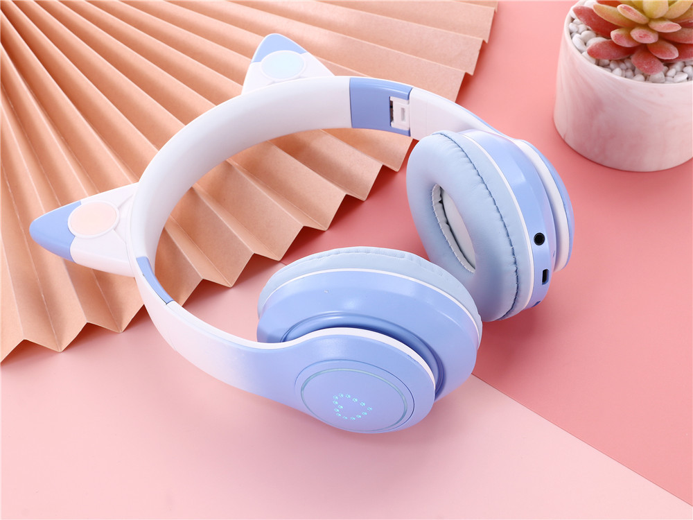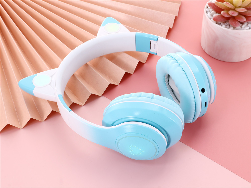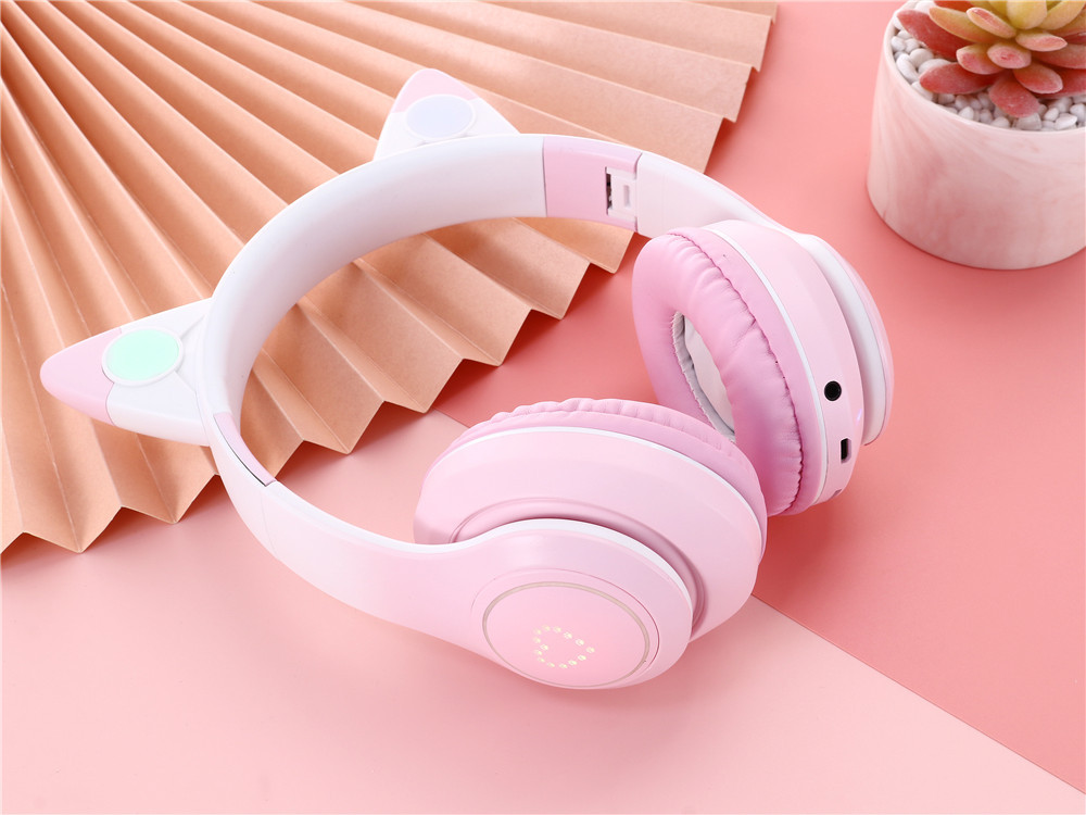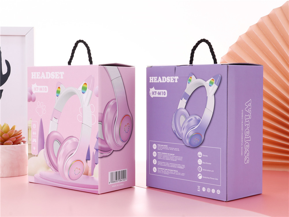 外贸跨镜新款KT-M10头戴式蓝牙耳机发光折叠可爱无线耳机批发直销
