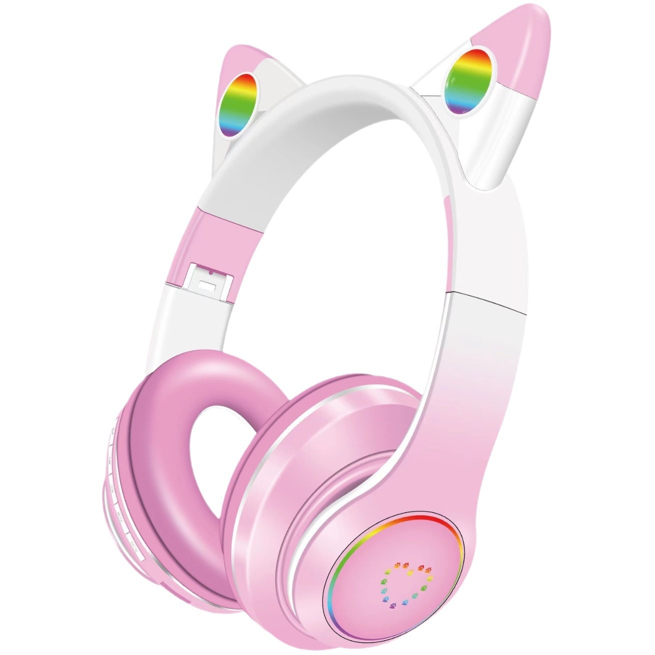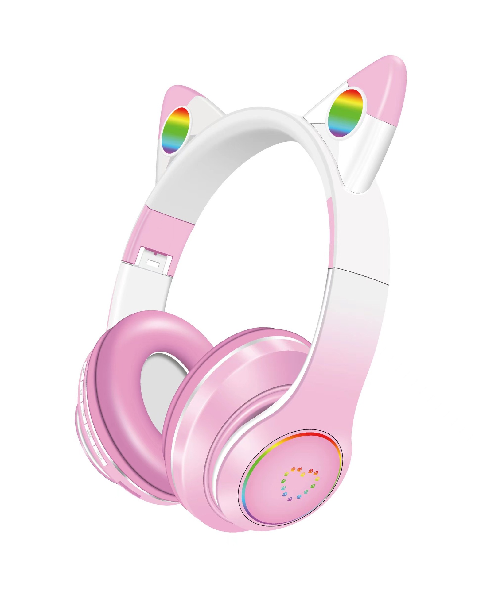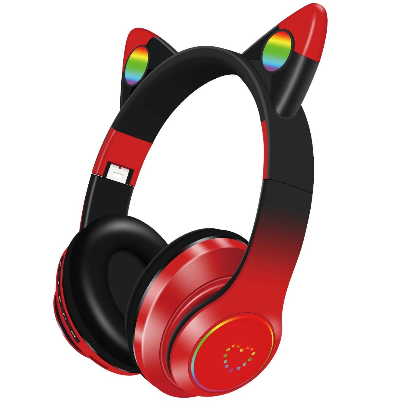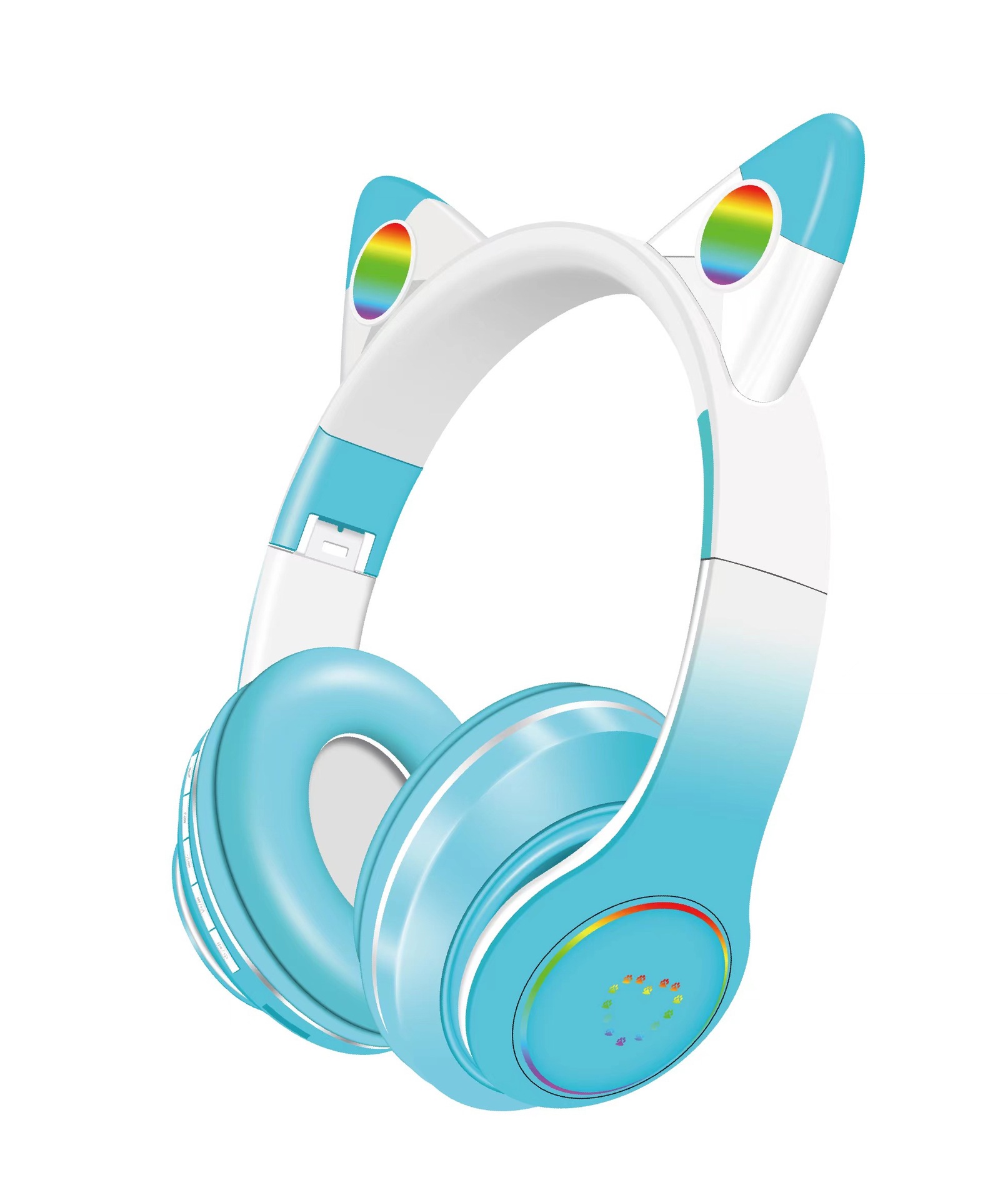 外贸跨镜新款KT-M10头戴式蓝牙耳机发光折叠可爱无线耳机批发直销