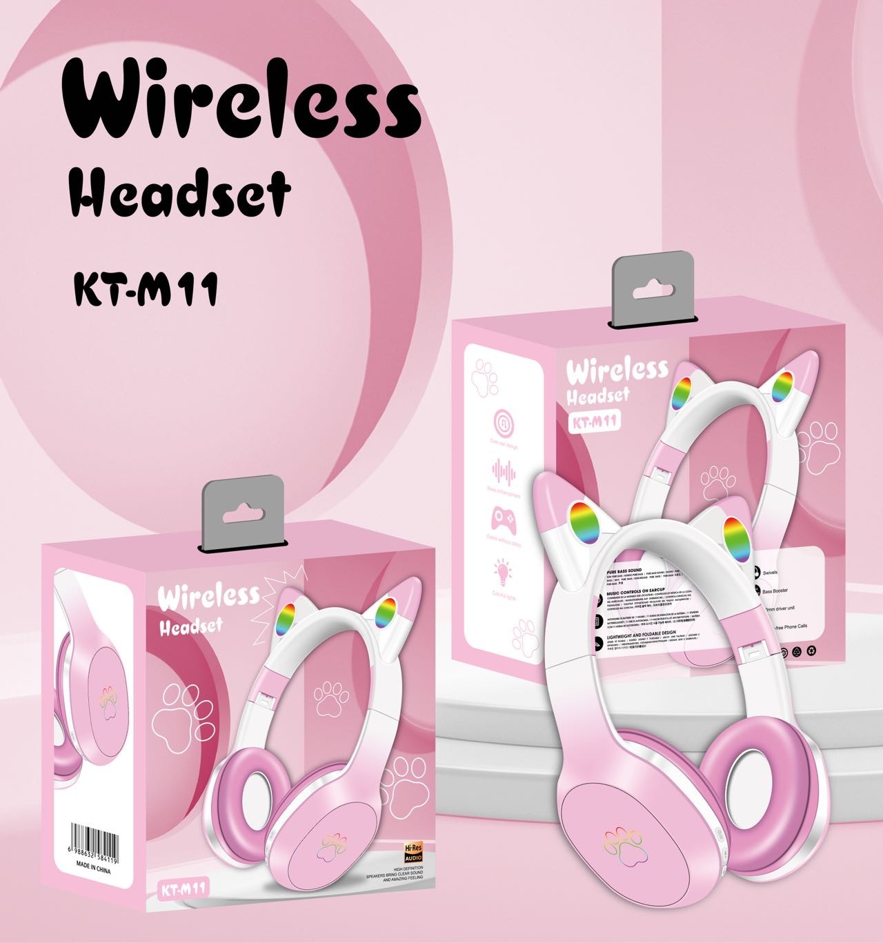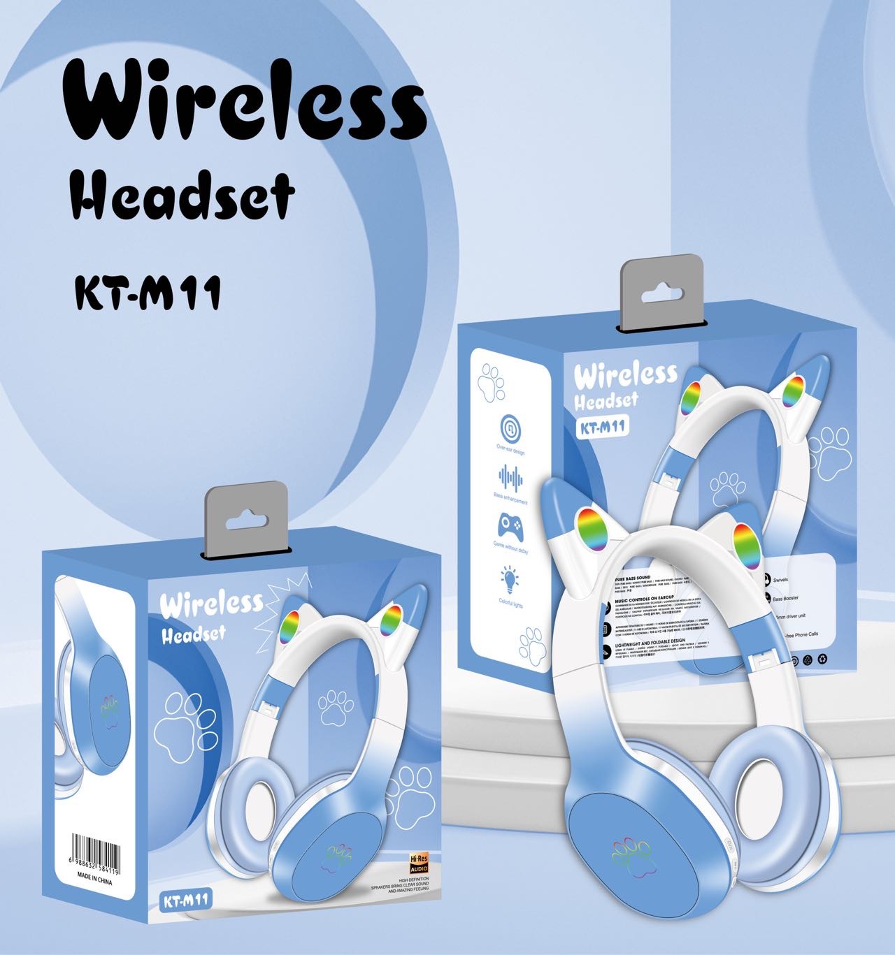 外贸跨镜新款KTM11头戴式蓝牙耳机发光折叠可爱无线耳机批发直销