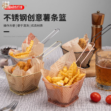 现货不锈钢薯条油炸篮子小吃油炸网篮隔油沥炸 炸鸡篮薯条篮