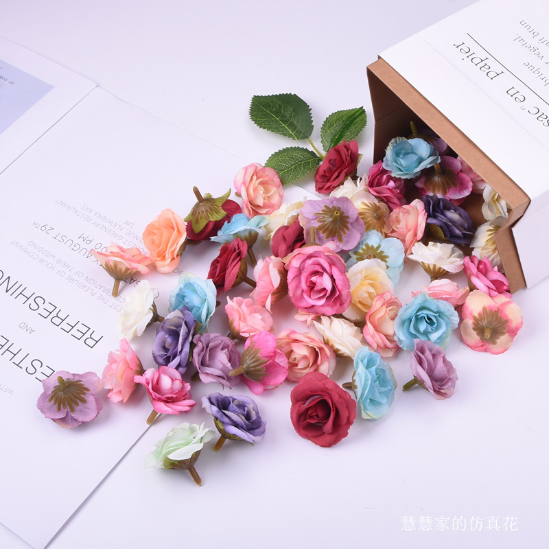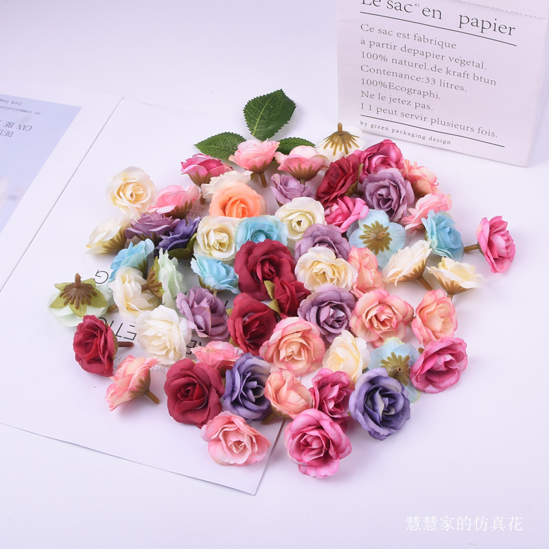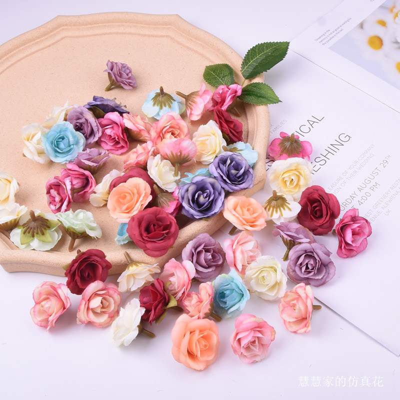 仿真花玫瑰花头diy手作素材婚庆头饰发饰配件家居礼盒装饰品
