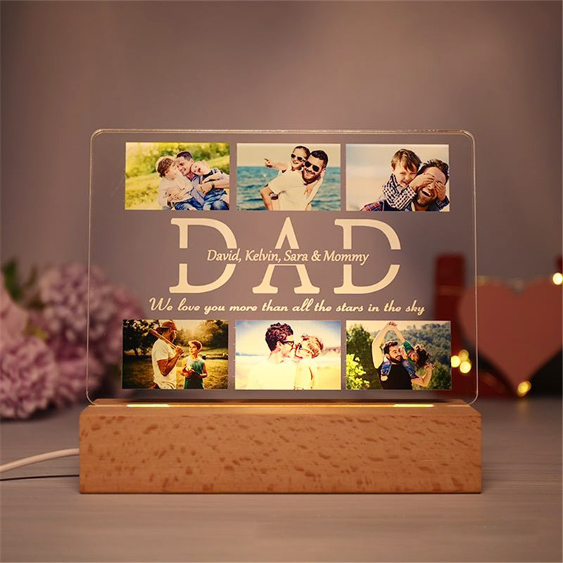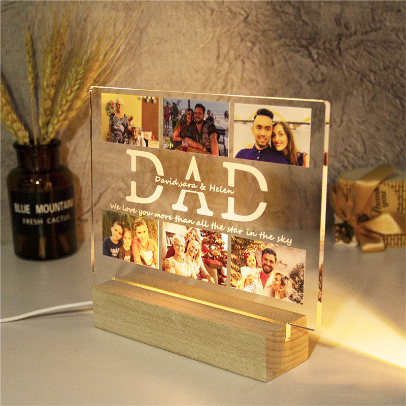 欧美热卖爆款个性化亚克力印刷木质底座刻字送给爸爸的父亲节礼物