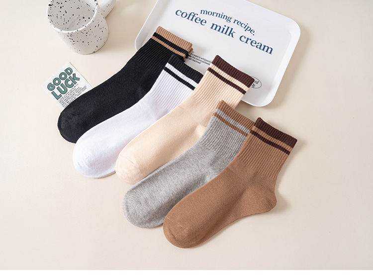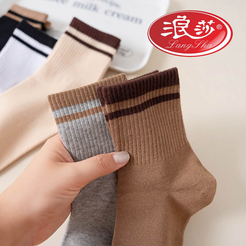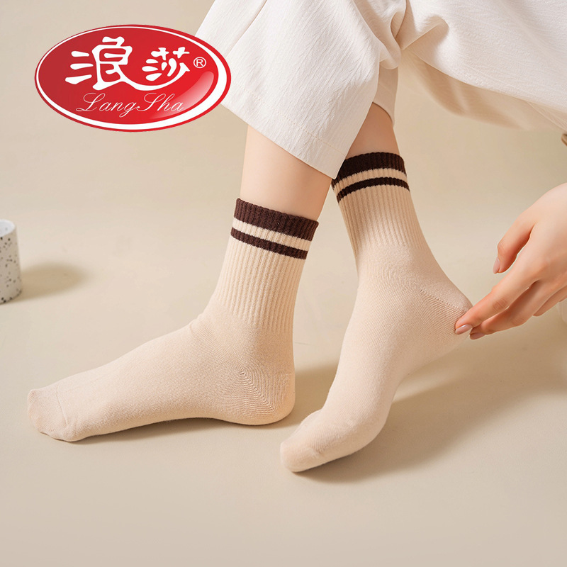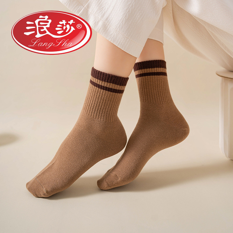 浪莎秋冬款女士棉袜少女休闲袜日系学院风中筒袜批发超市独立包装