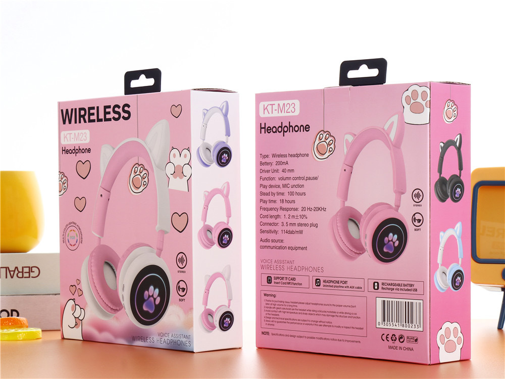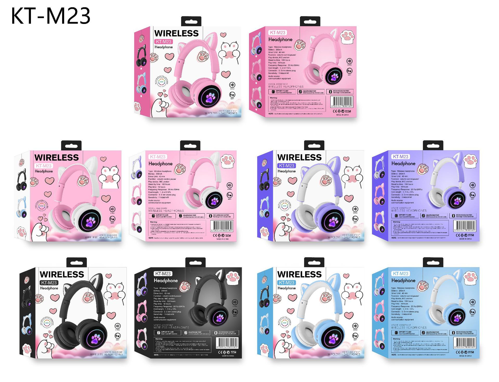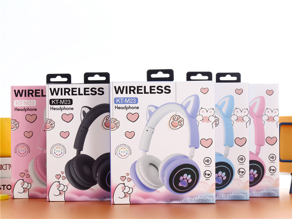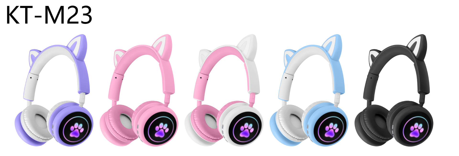 外贸跨镜新款KTM23头戴式蓝牙耳机发光折叠可爱无线耳机批发直销