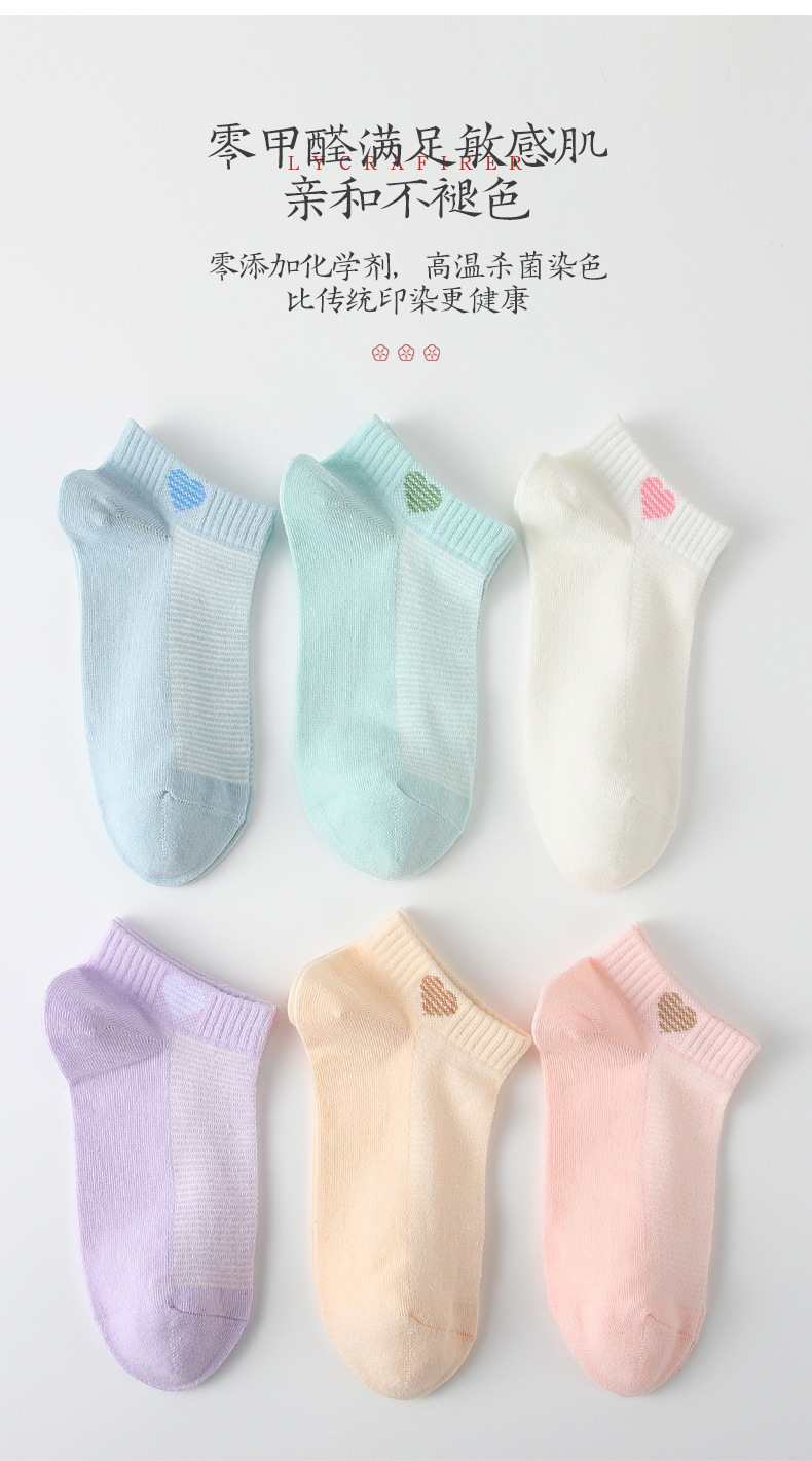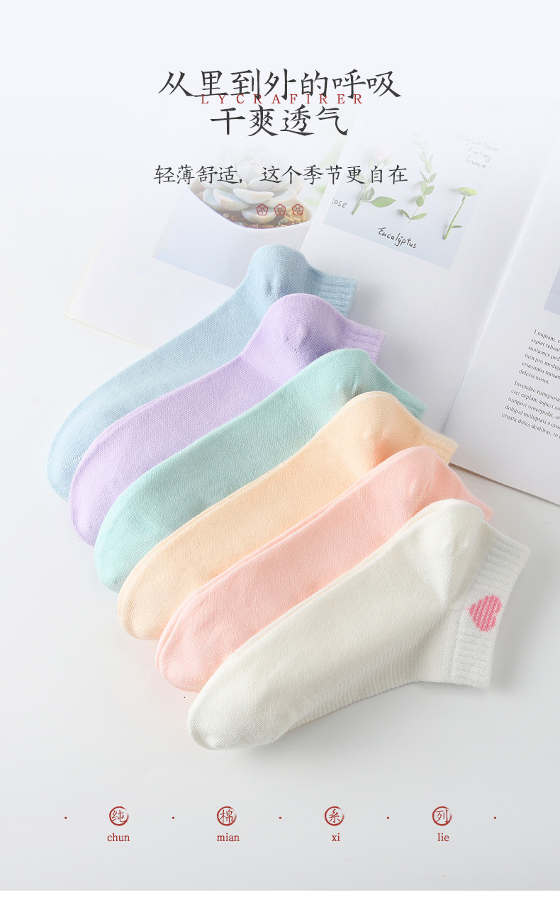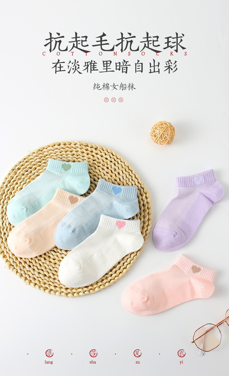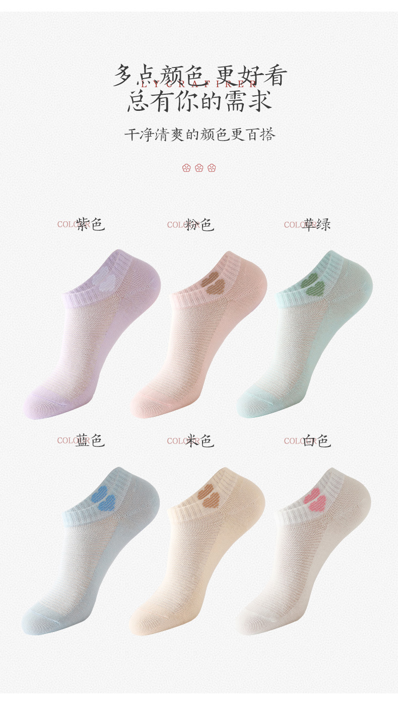 浪莎袜子女夏季薄款棉袜船袜不掉跟韩系爱心图案纯棉女袜网眼透气