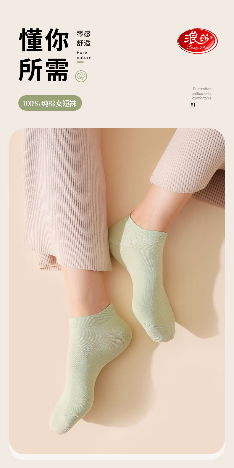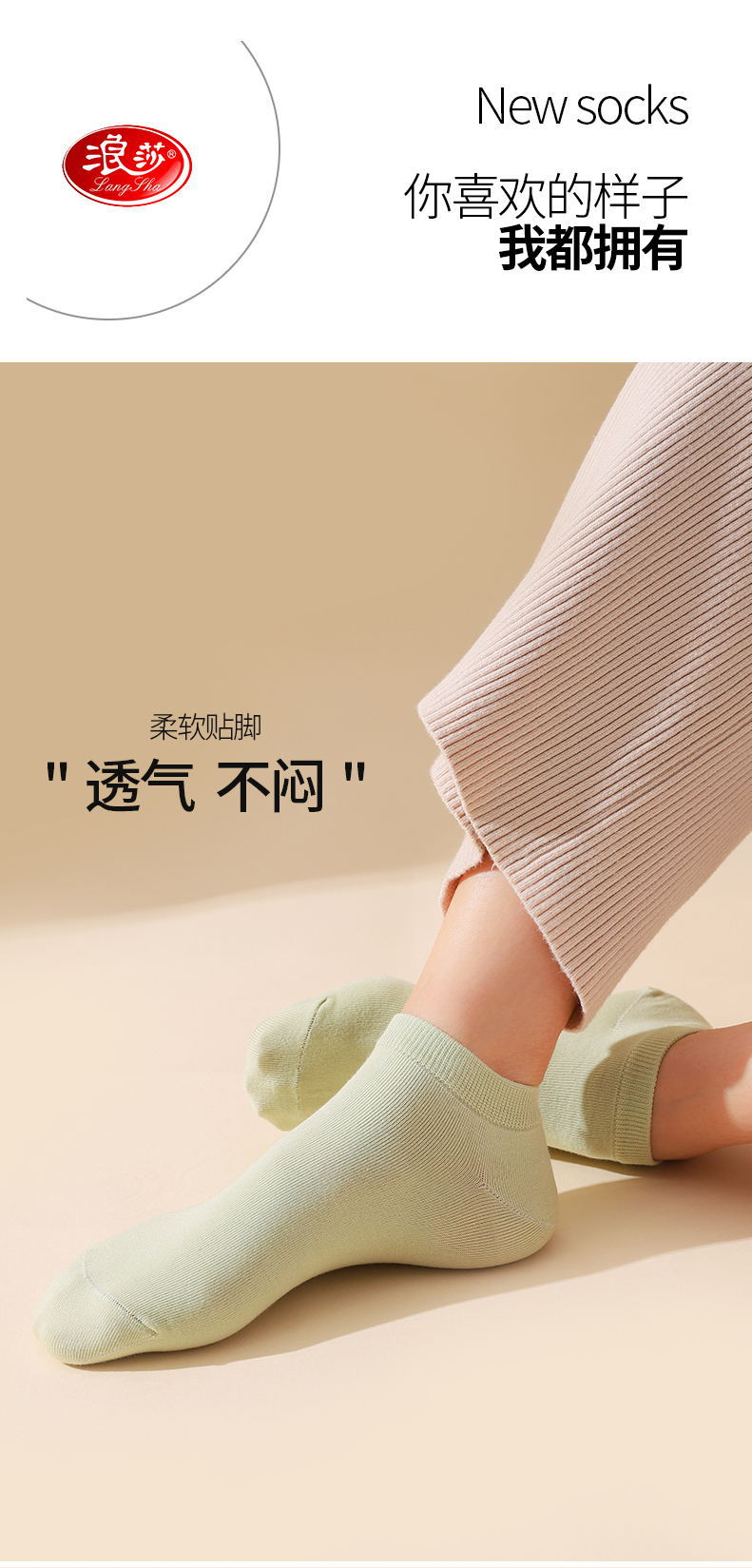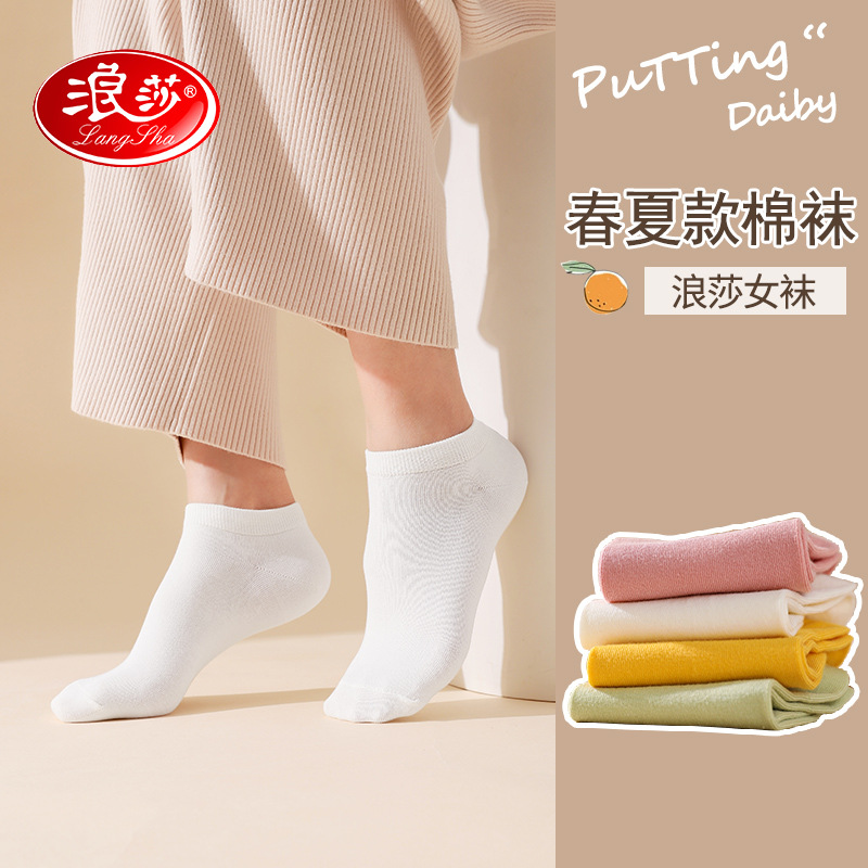 浪莎袜子女夏季薄款纯棉船袜不掉跟短袜吸汗运动棉短袜春夏季