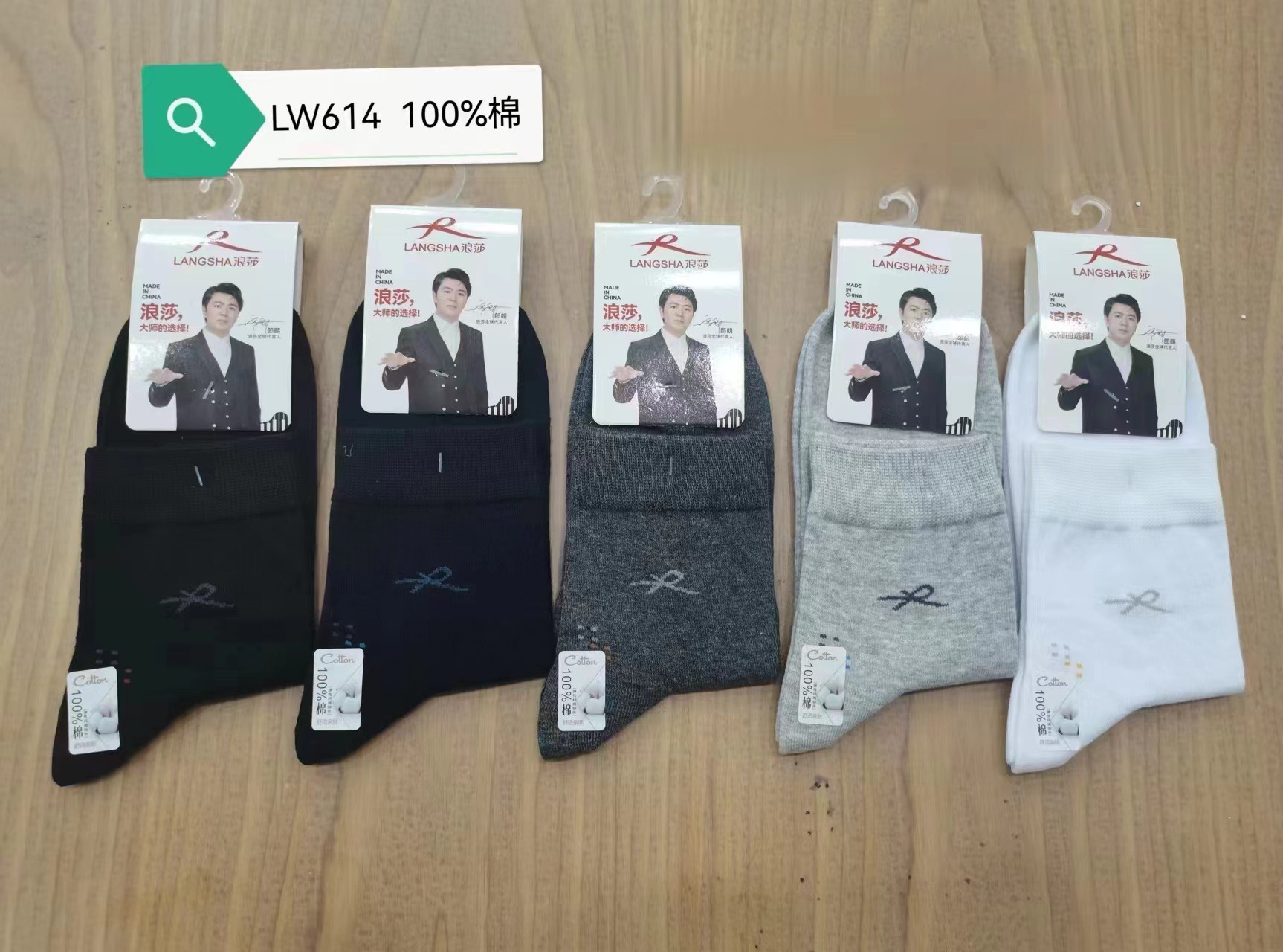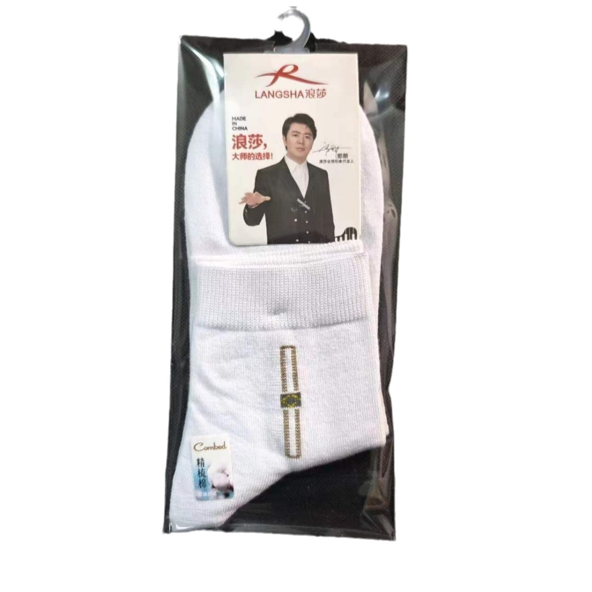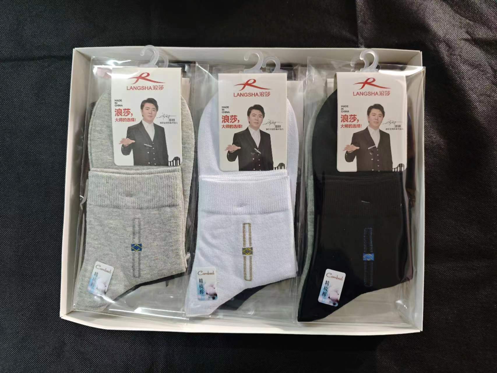 浪莎新款秋冬纯棉商务袜精梳棉中筒休闲袜纯色全棉四季袜独立包装