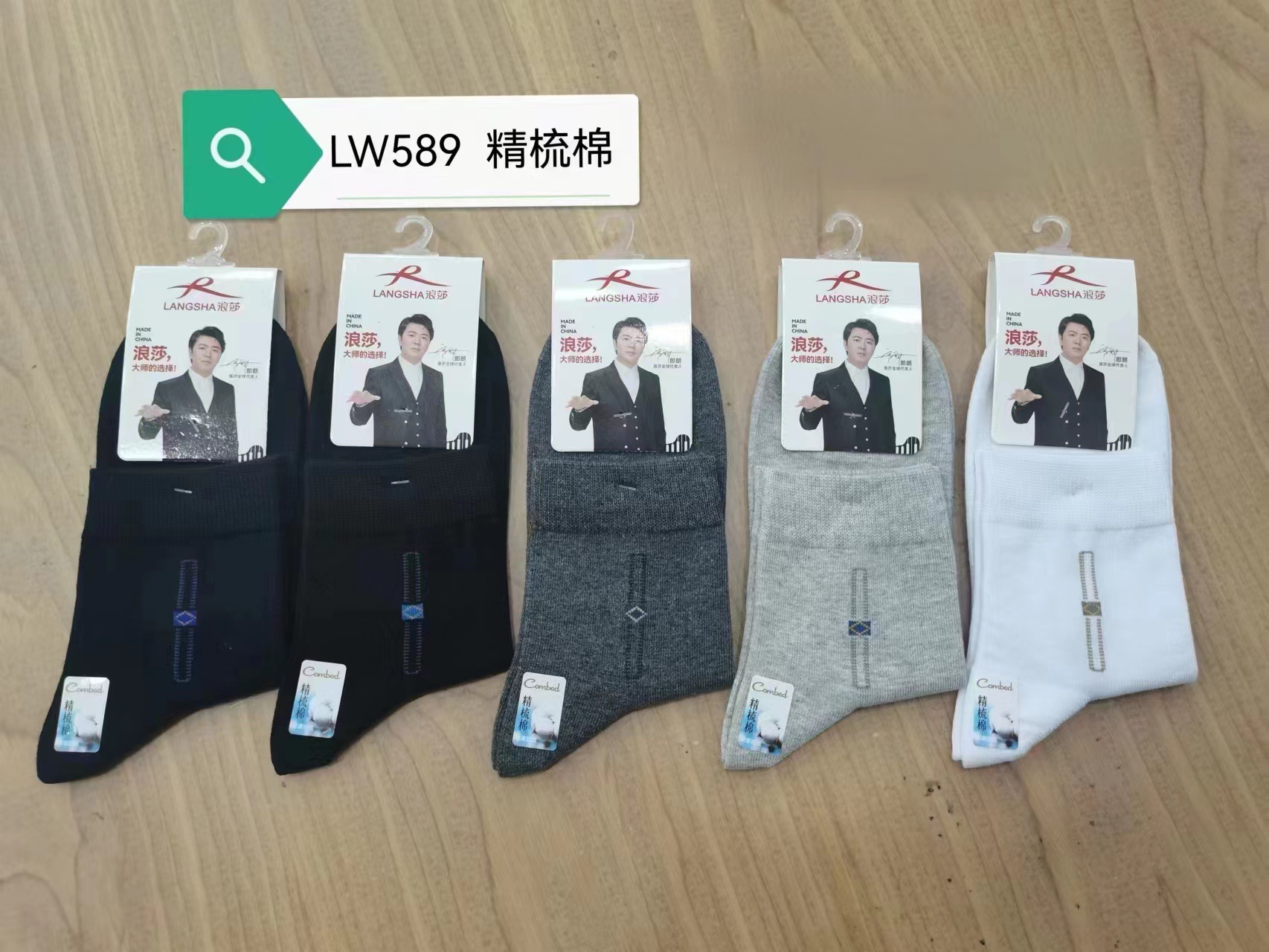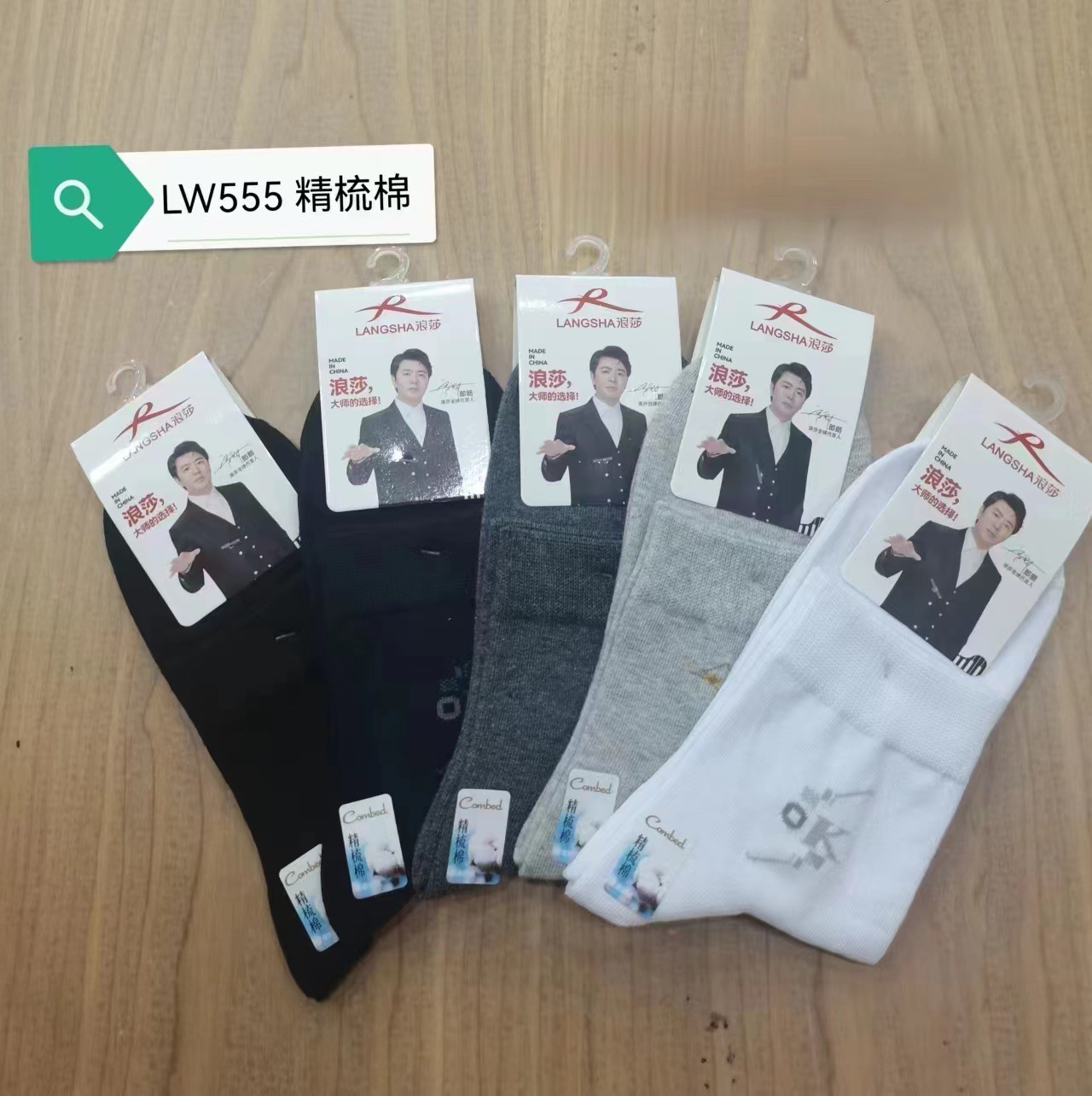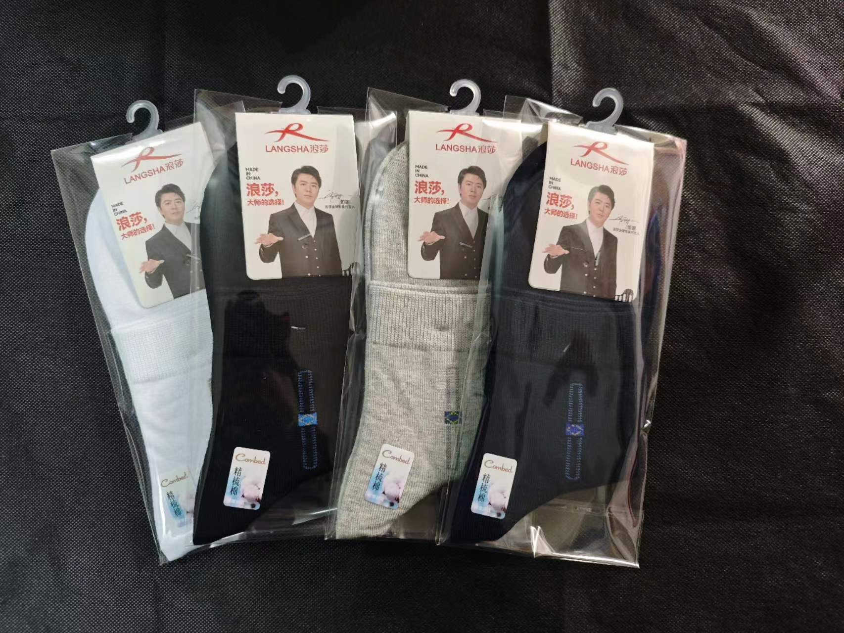 浪莎新款秋冬纯棉商务袜精梳棉中筒休闲袜纯色全棉四季袜独立包装