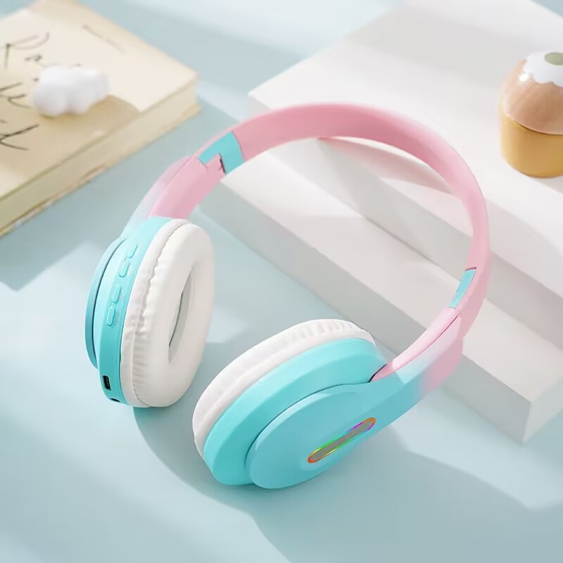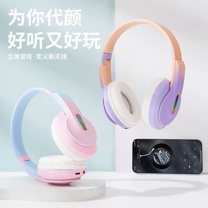 XY-229BT跨境头戴式蓝牙耳机马卡龙渐变拼色可折叠无线儿童耳机
