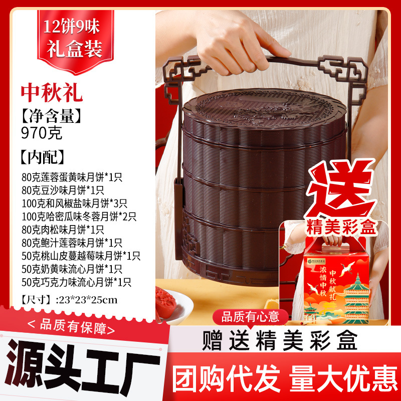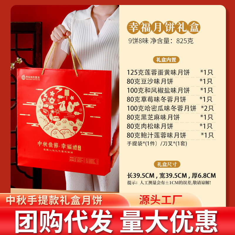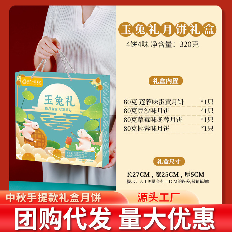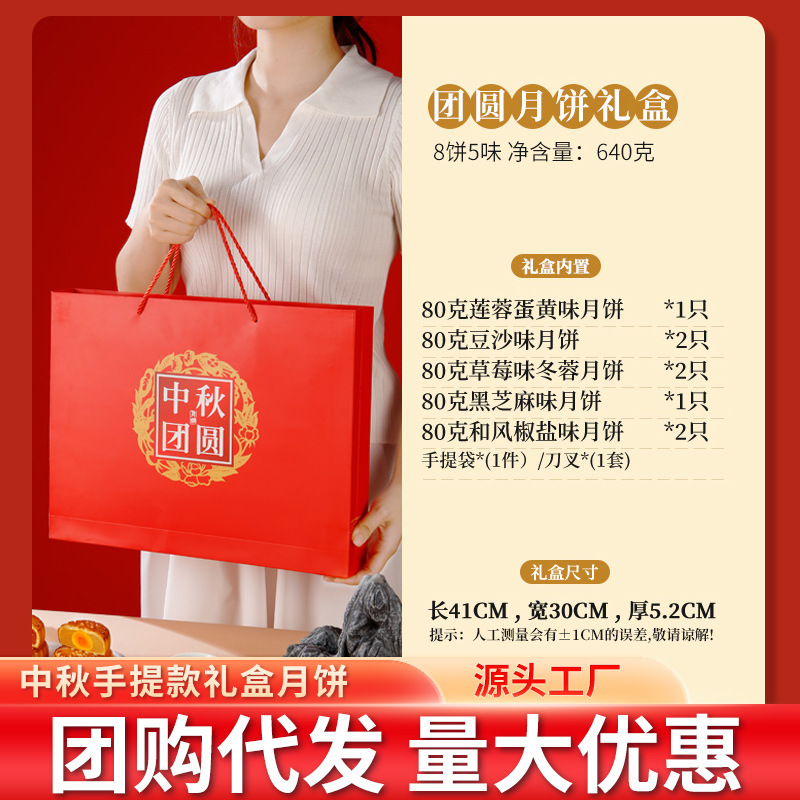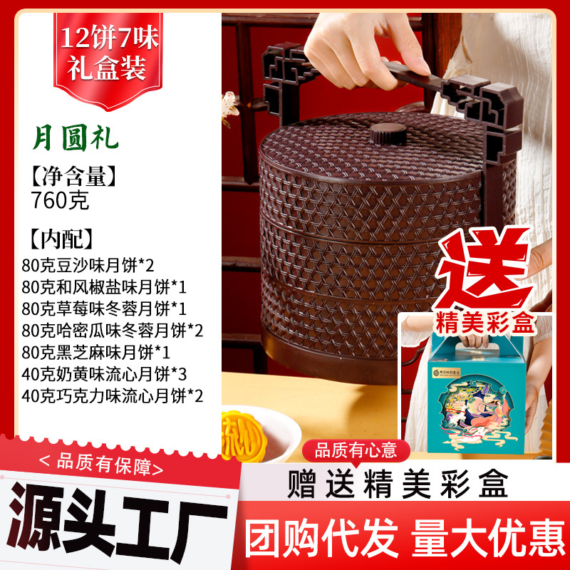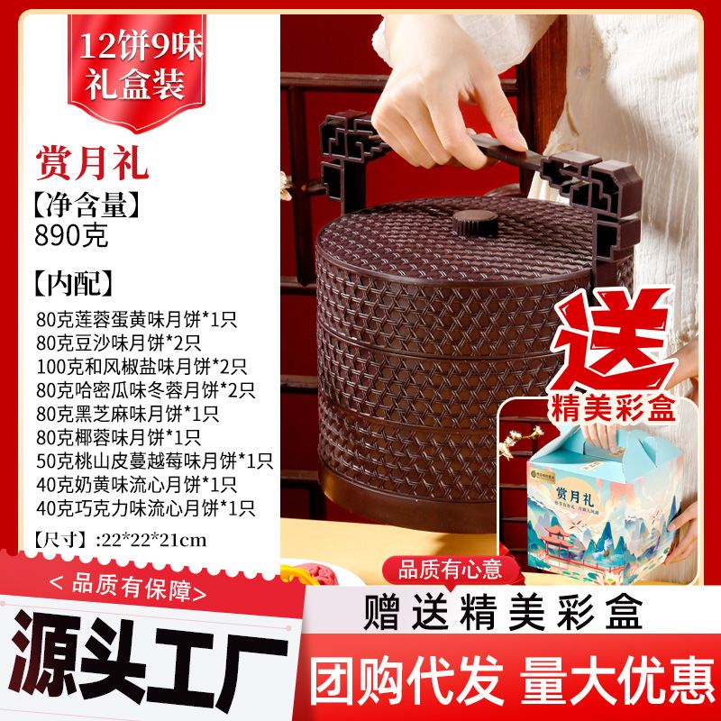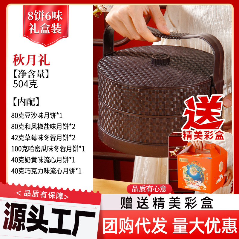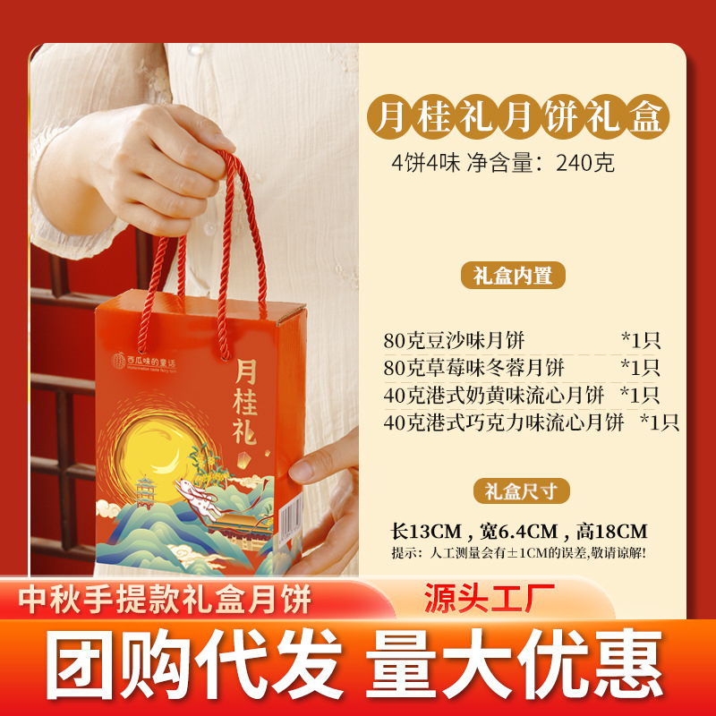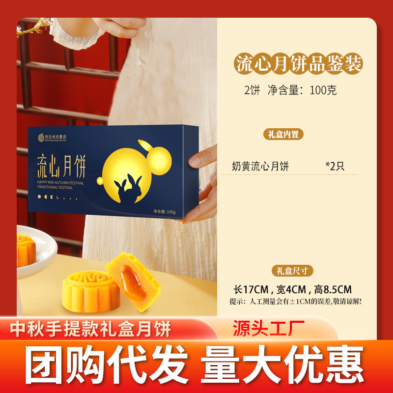 中秋月饼礼盒装广式桃山皮流心月饼礼盒批发采购企业送礼糕点代发