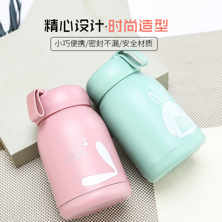 萌萌兔玻璃水杯创意礼品杯子迷你可爱学生杯卡通提绳地推随手杯