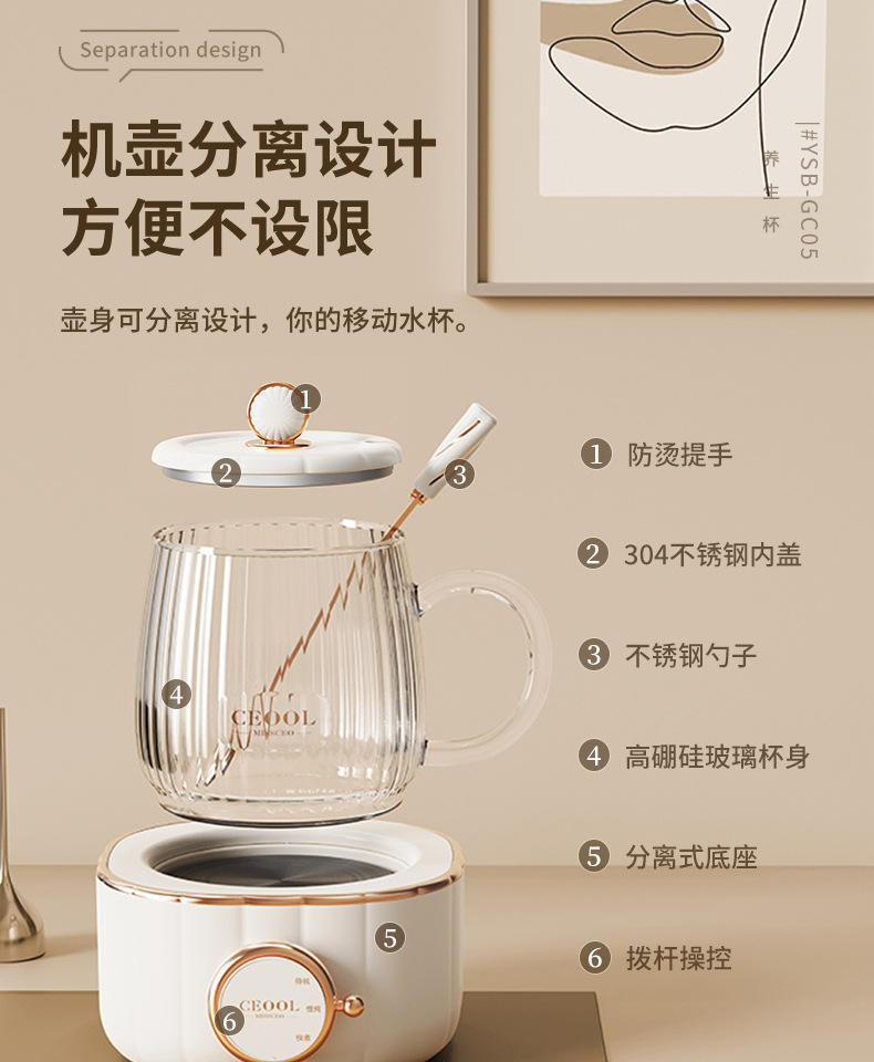 多功能养生电炖杯迷你玻璃电热杯办公室智能便携式小型烧水壶分体