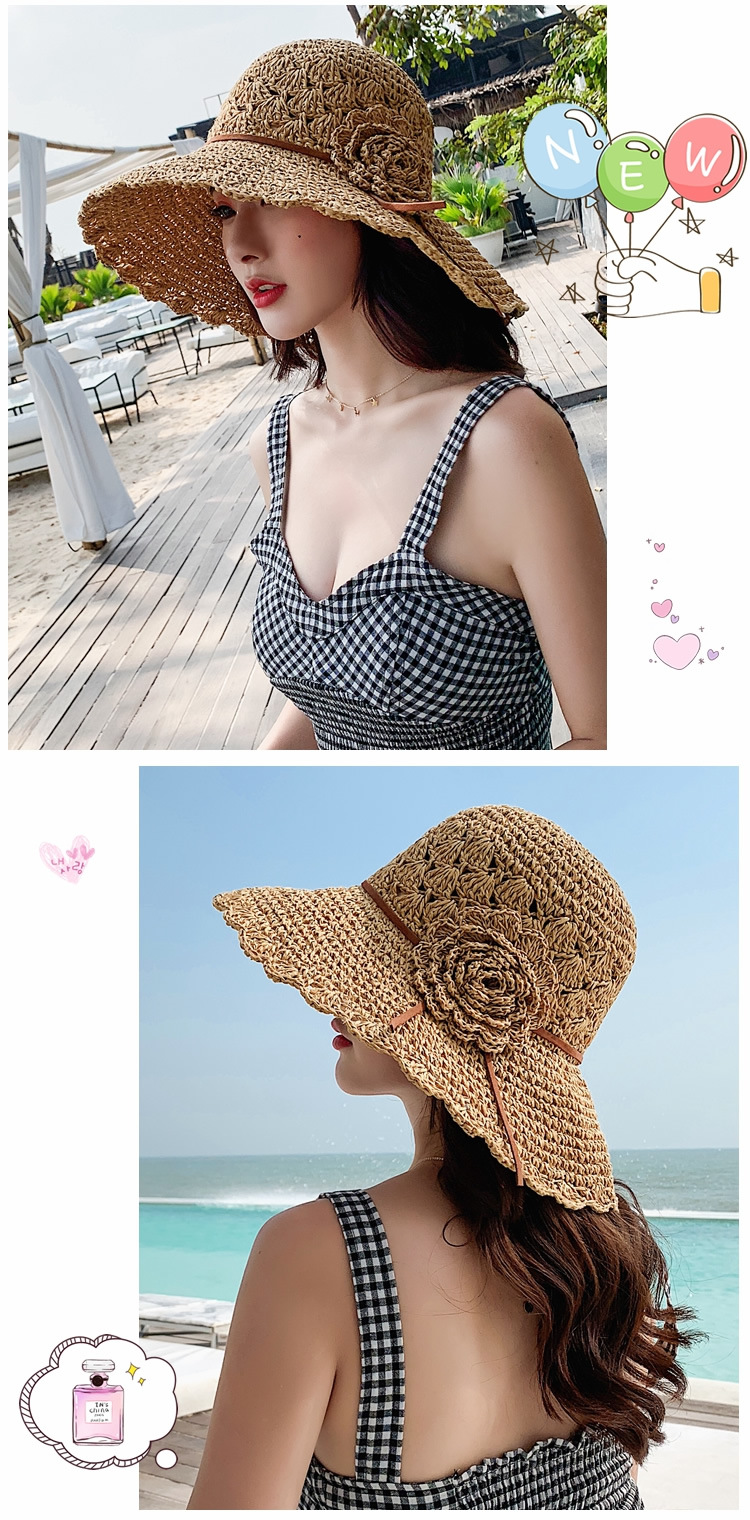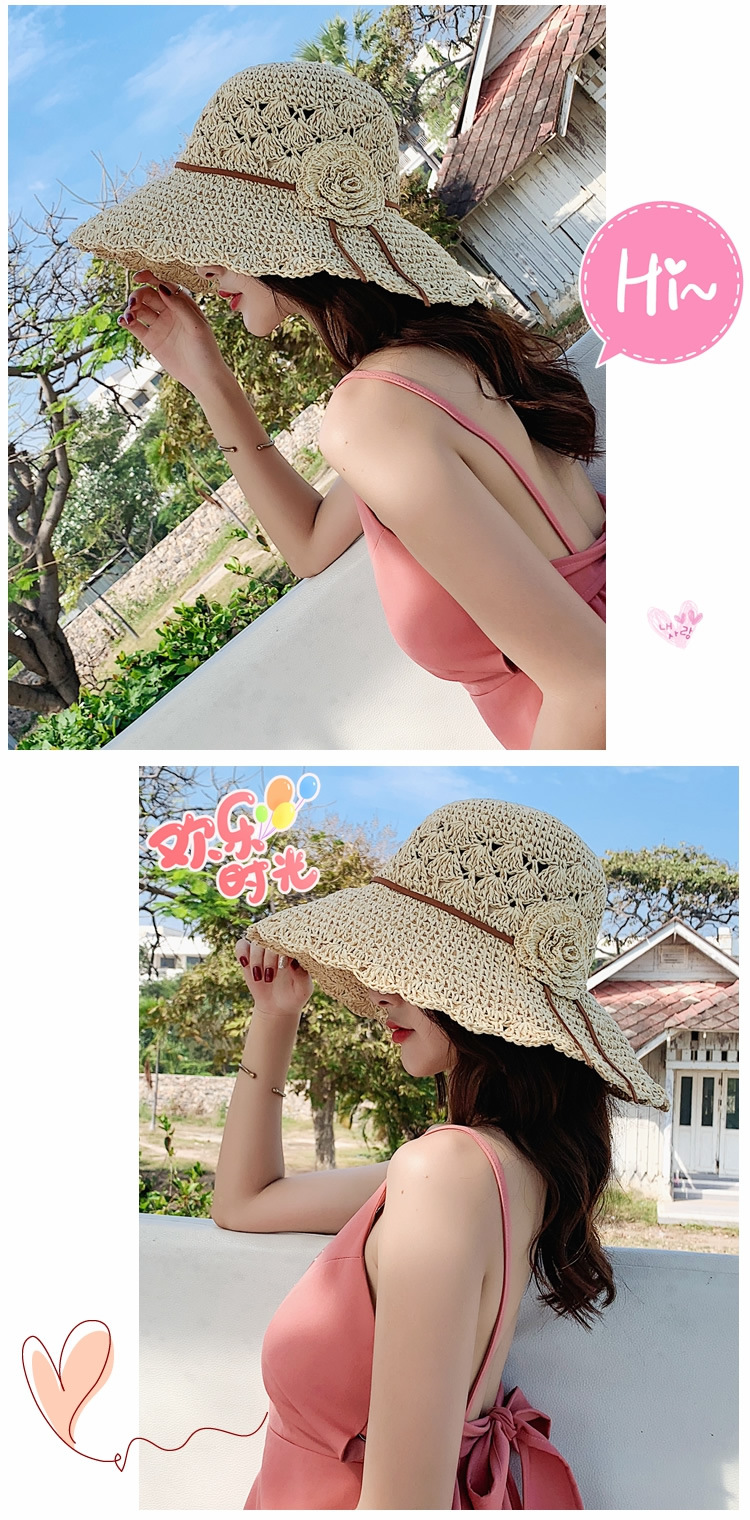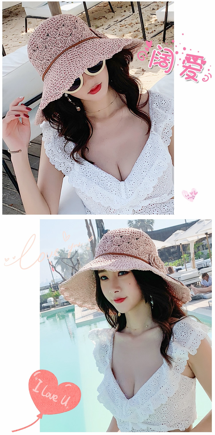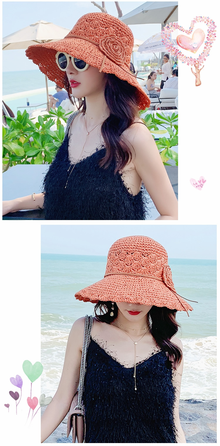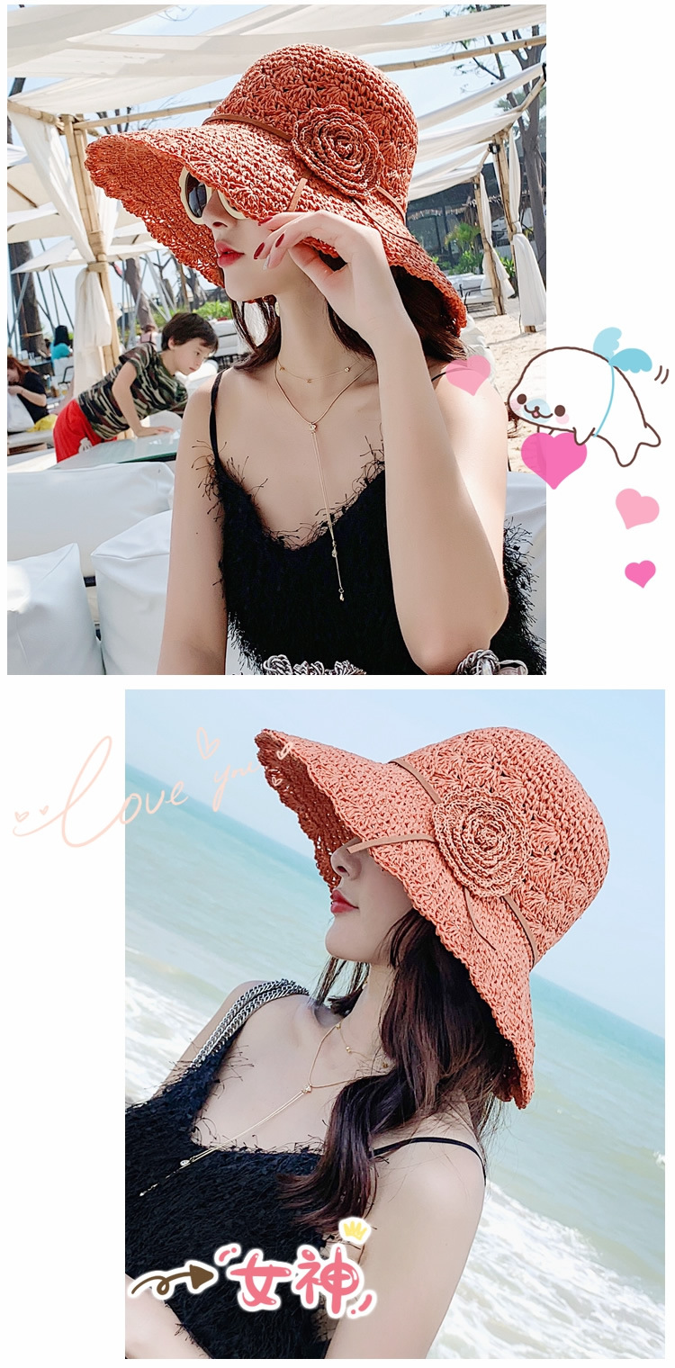 草帽女编织防晒手工编制遮阳韩版潮女式时尚小檐带花夏天太阳帽子