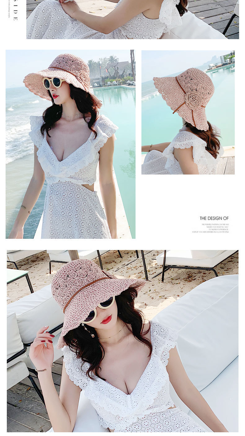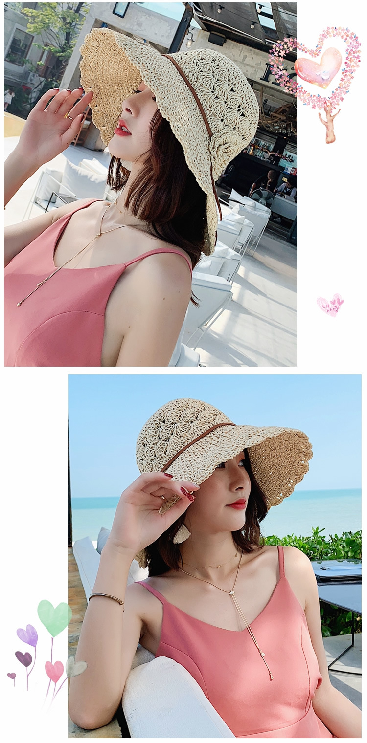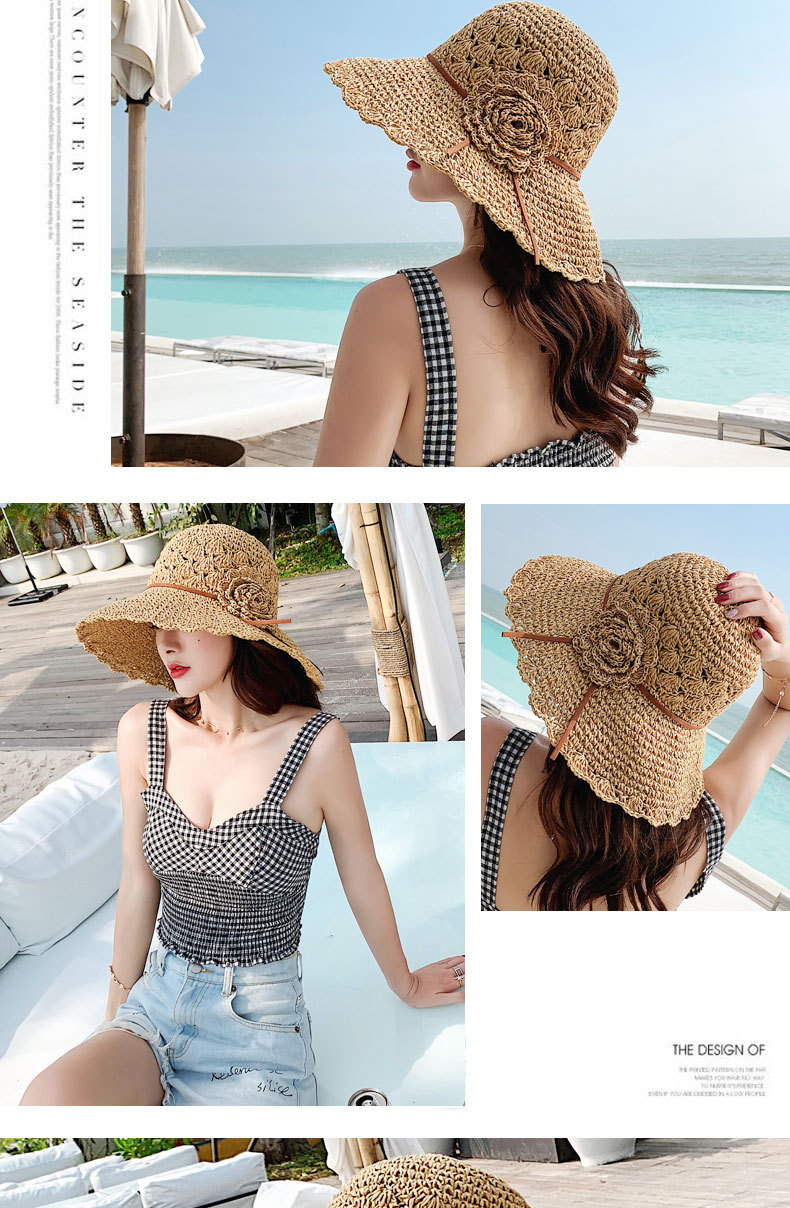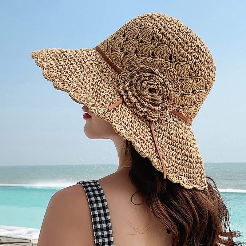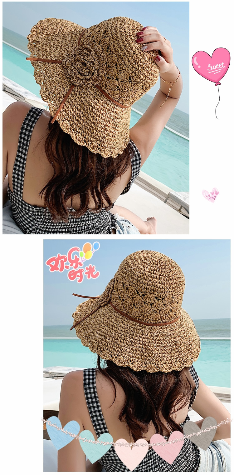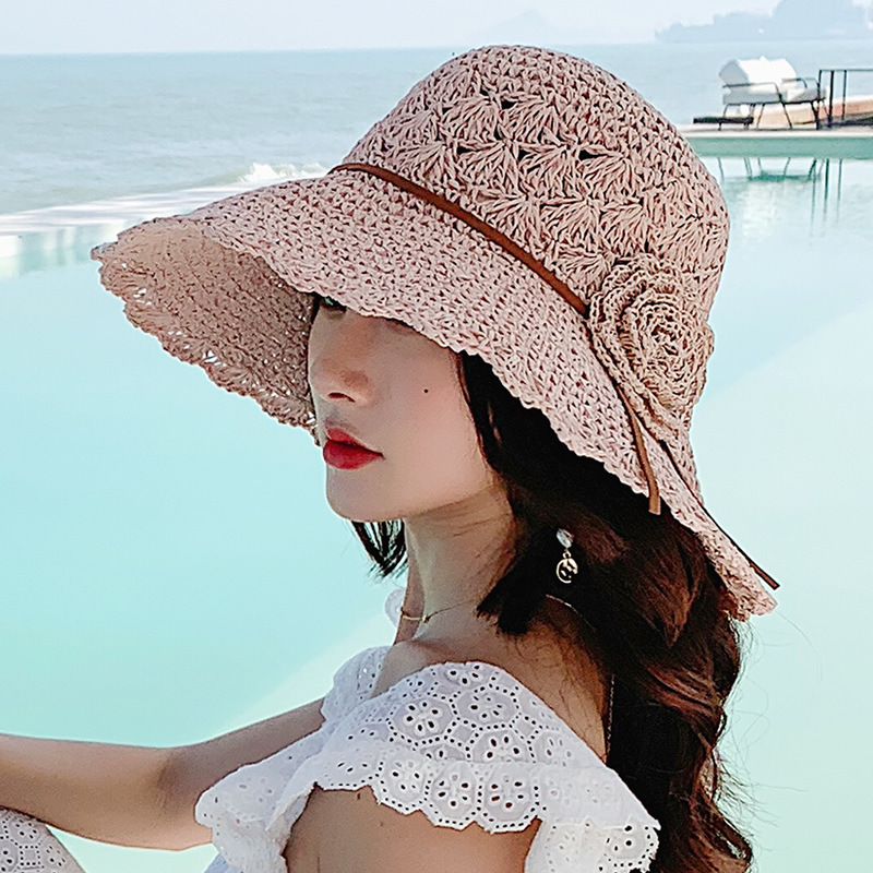 草帽女编织防晒手工编制遮阳韩版潮女式时尚小檐带花夏天太阳帽子