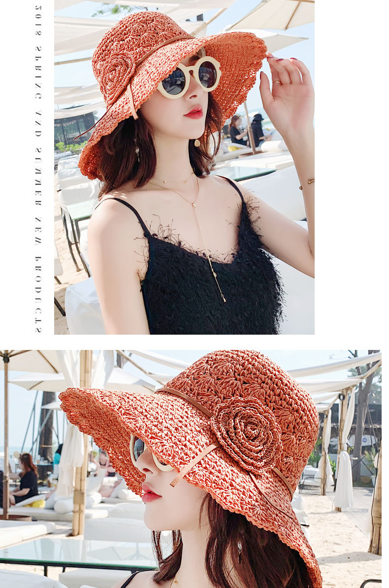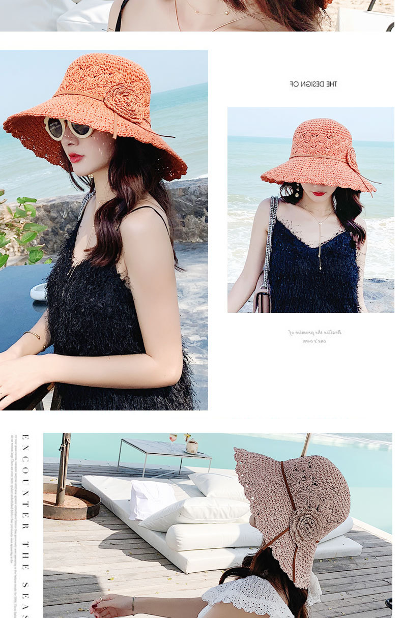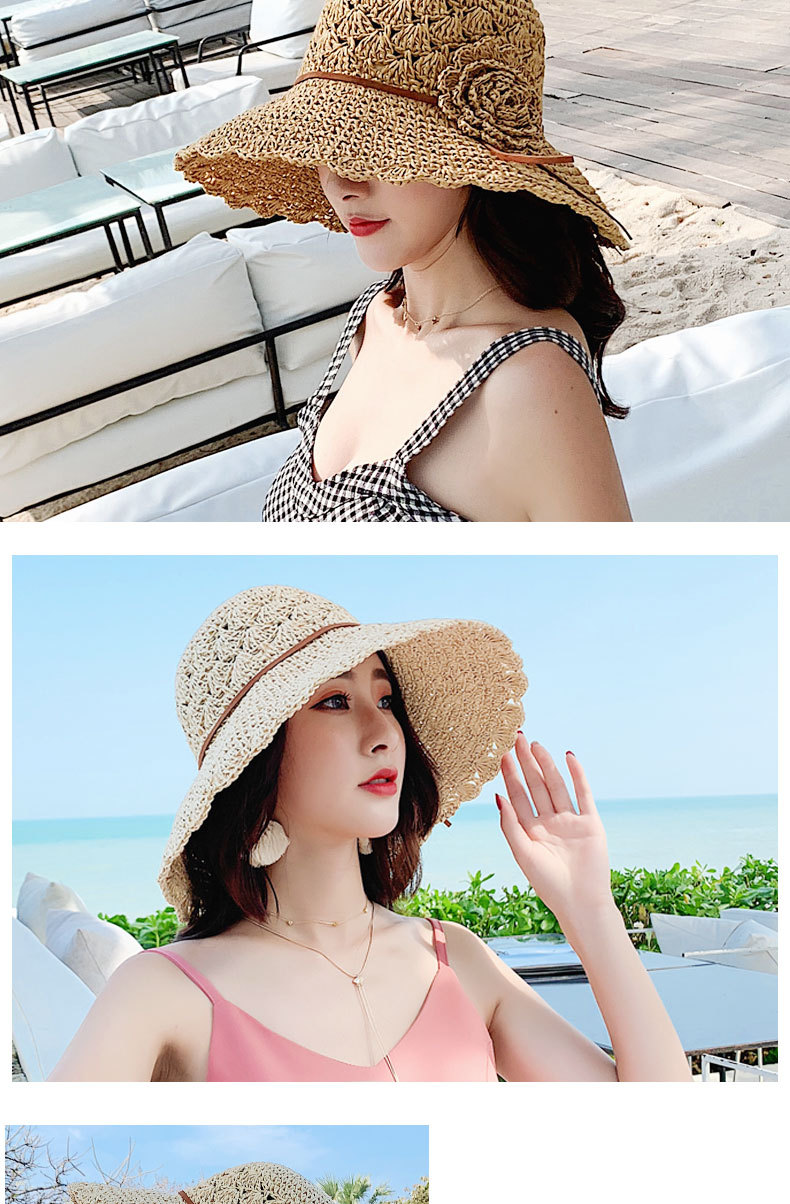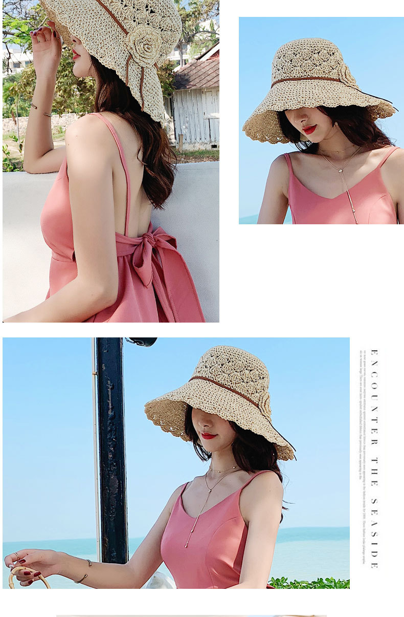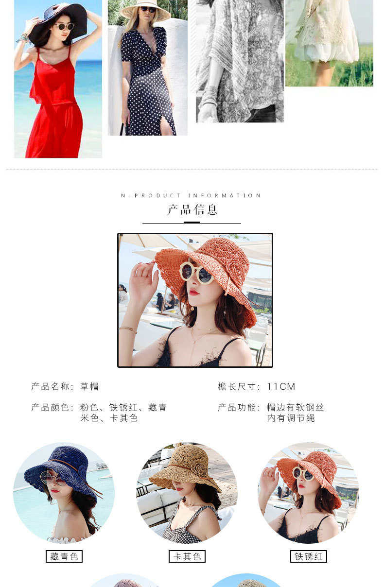草帽女编织防晒手工编制遮阳韩版潮女式时尚小檐带花夏天太阳帽子