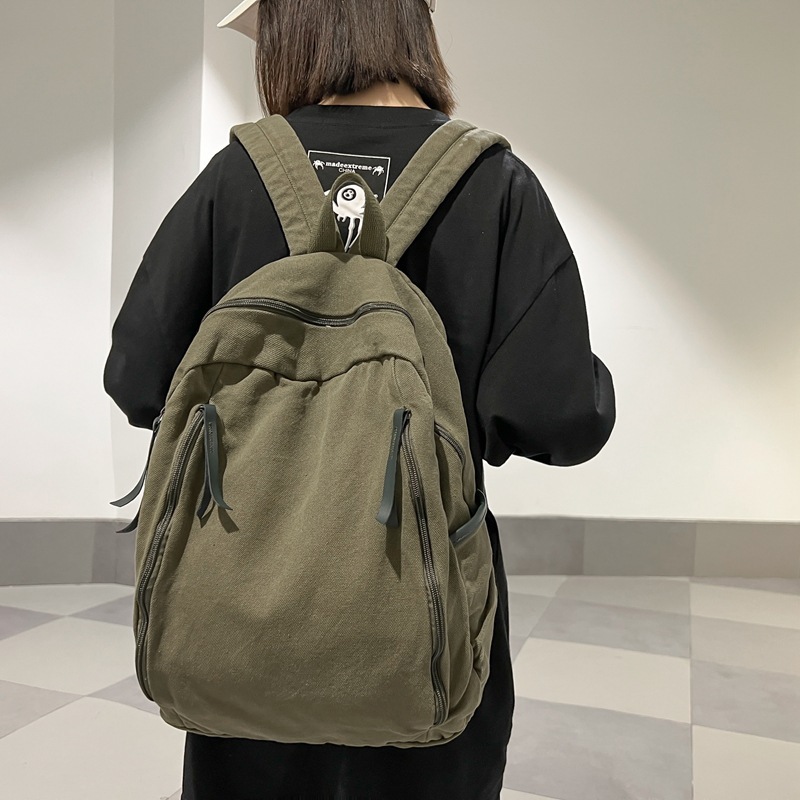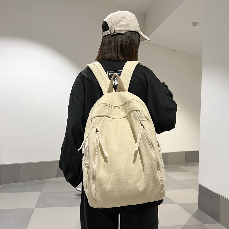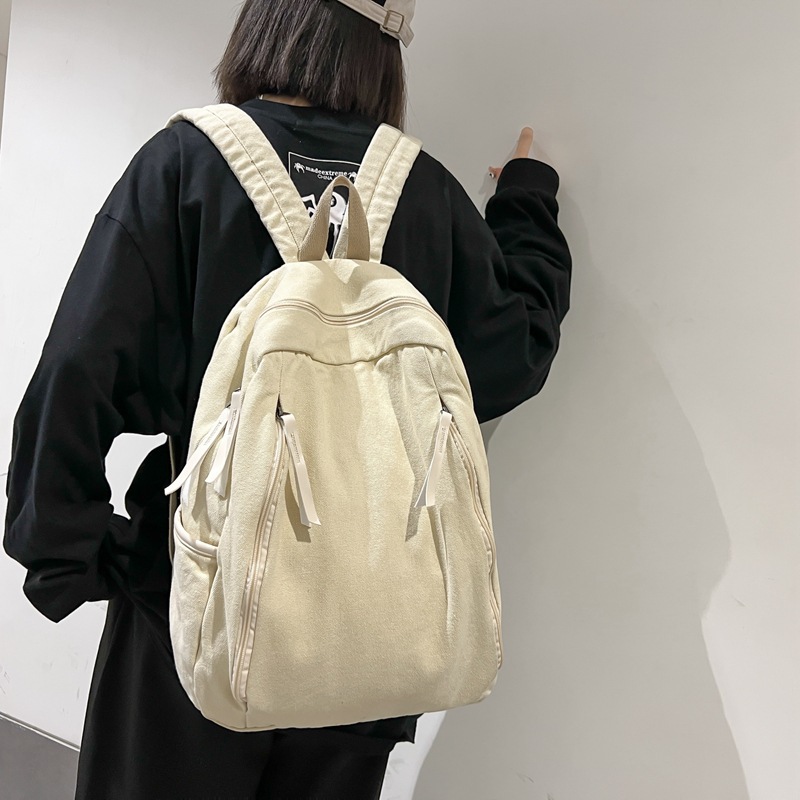 2024新款双肩包男帆布水洗背包轻便文艺休闲大学生书包