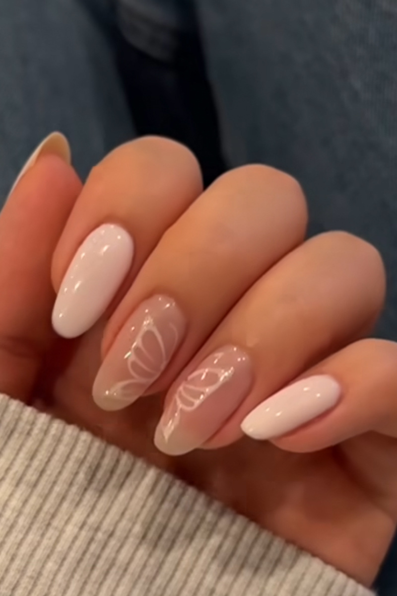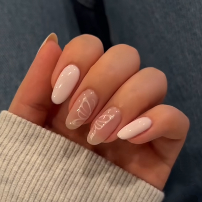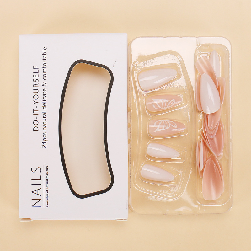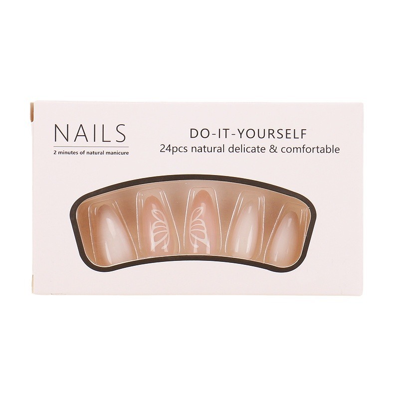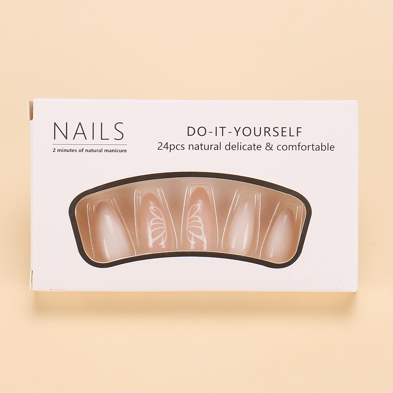 跨境爆款穿戴甲裸色白撞色美甲贴片成品24片蝴蝶翅膀指甲片可拆卸