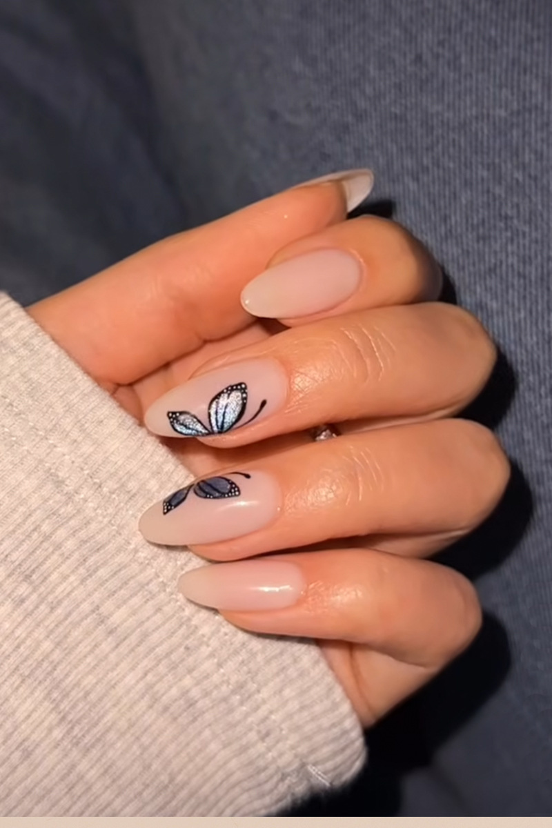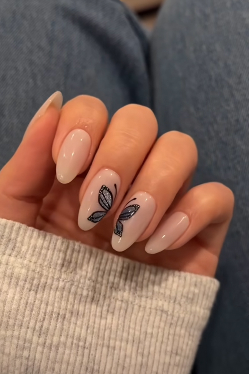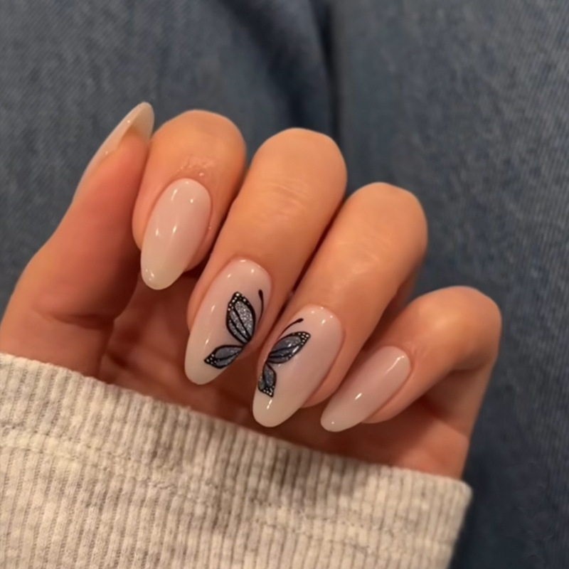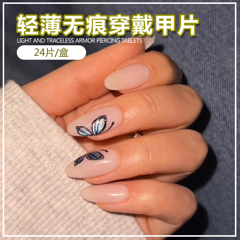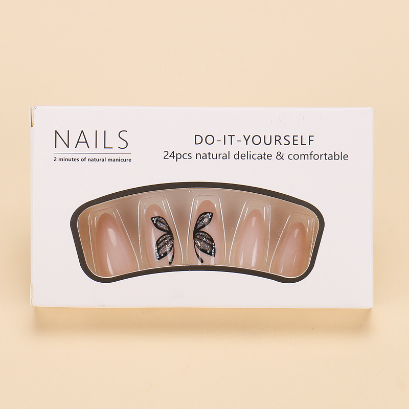 外贸热销穿戴甲黑色蝴蝶美甲片成品24片可拆卸裸色渐变假指甲贴片
