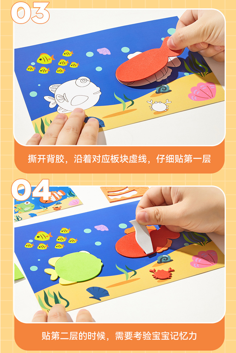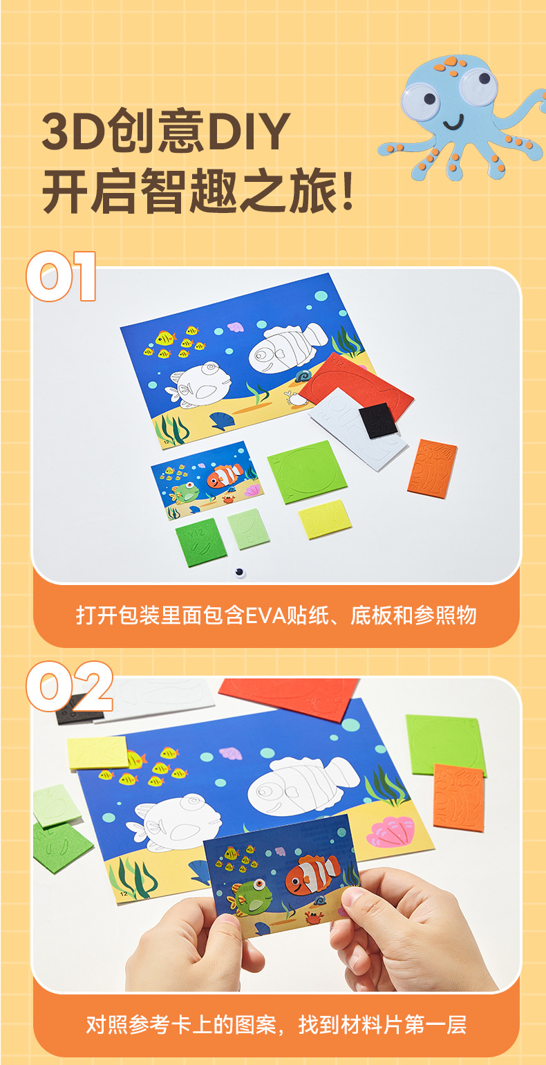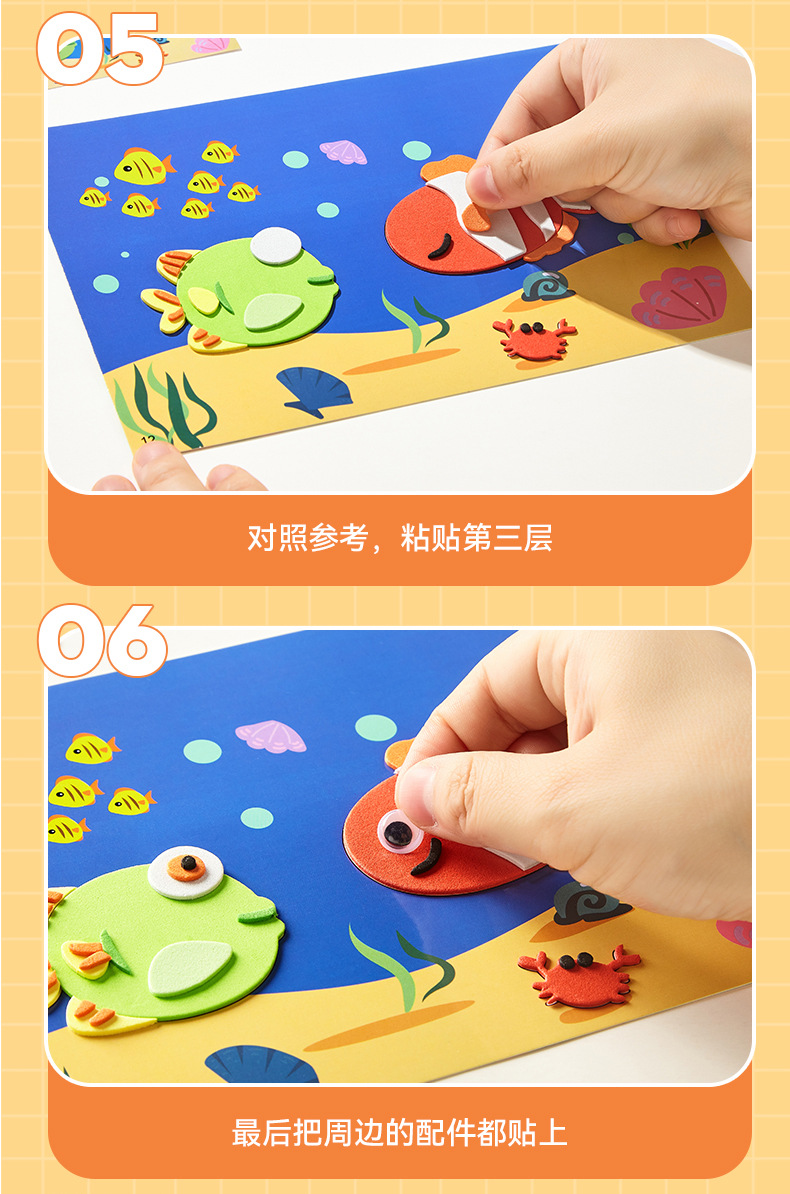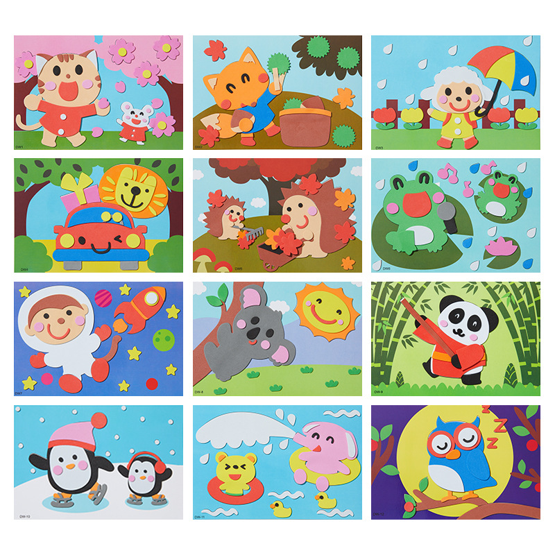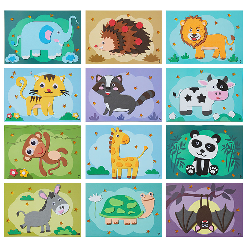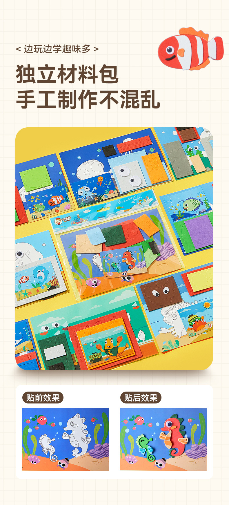 【跨境专供】儿童手工制作材料包3D立体粘贴画幼儿园创意益智玩具
