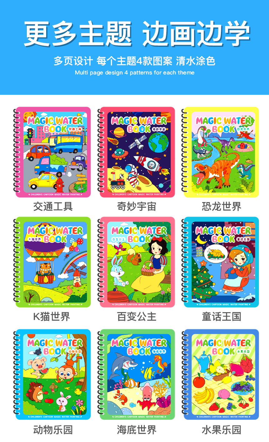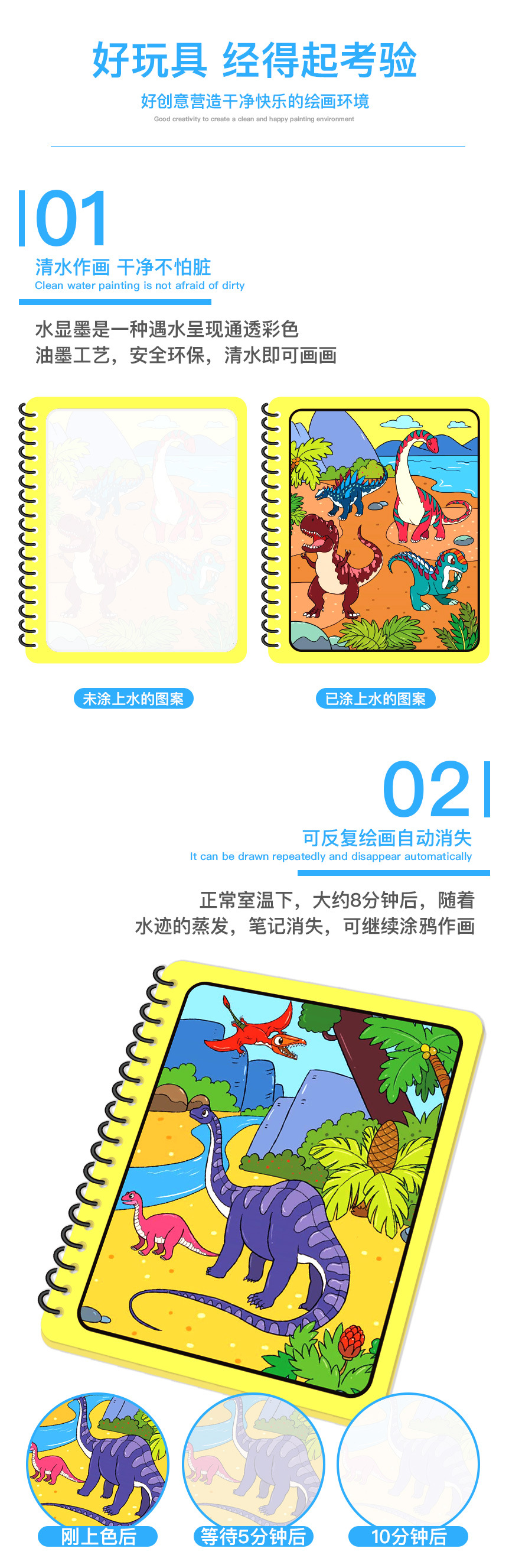 水画本儿童画画本神奇涂色绘画画套装宝宝益智反复填色水彩画玩具