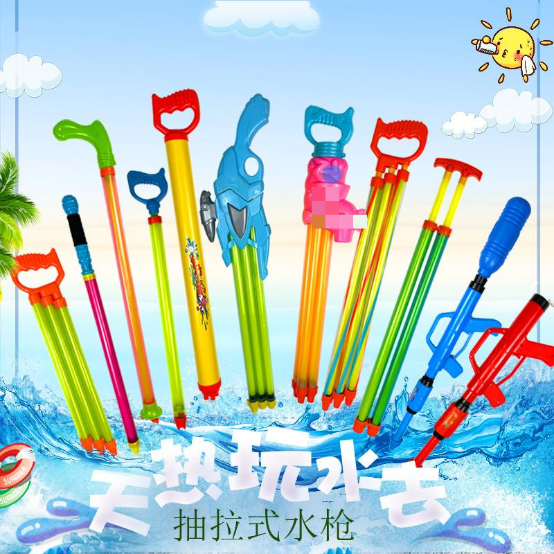 夏季塑料戏水玩具便携式多管水枪夏日水上乐园竞技抽拉式水枪批发
