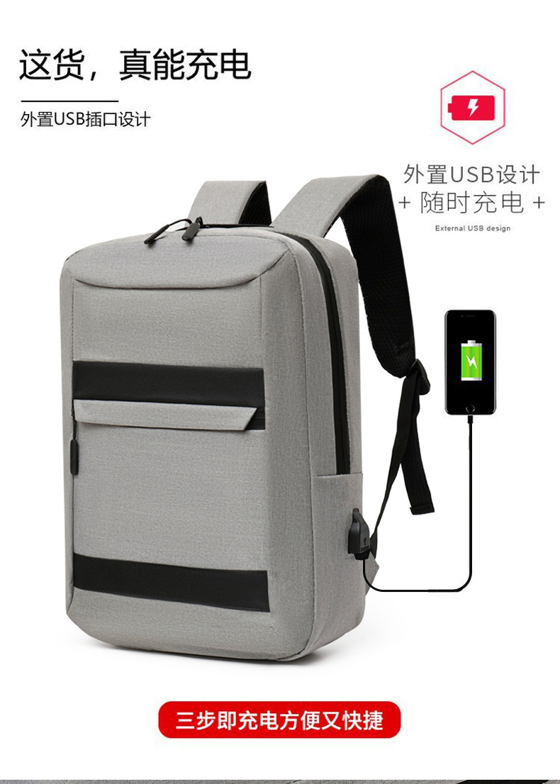 厂家直销外贸休闲男包商务多功能电脑包USB充电男士双肩包印logo