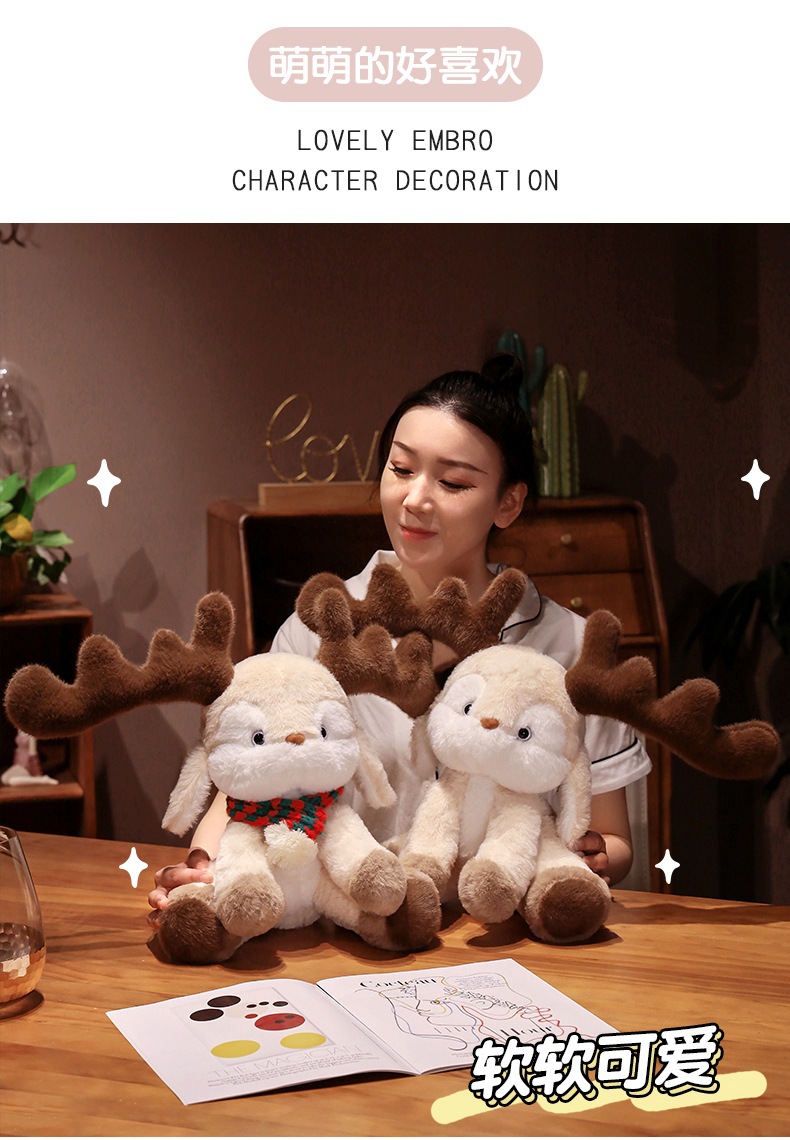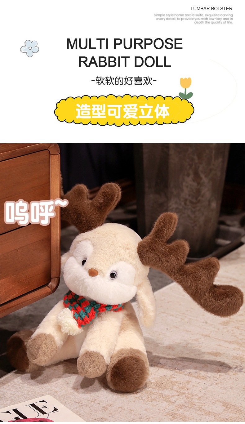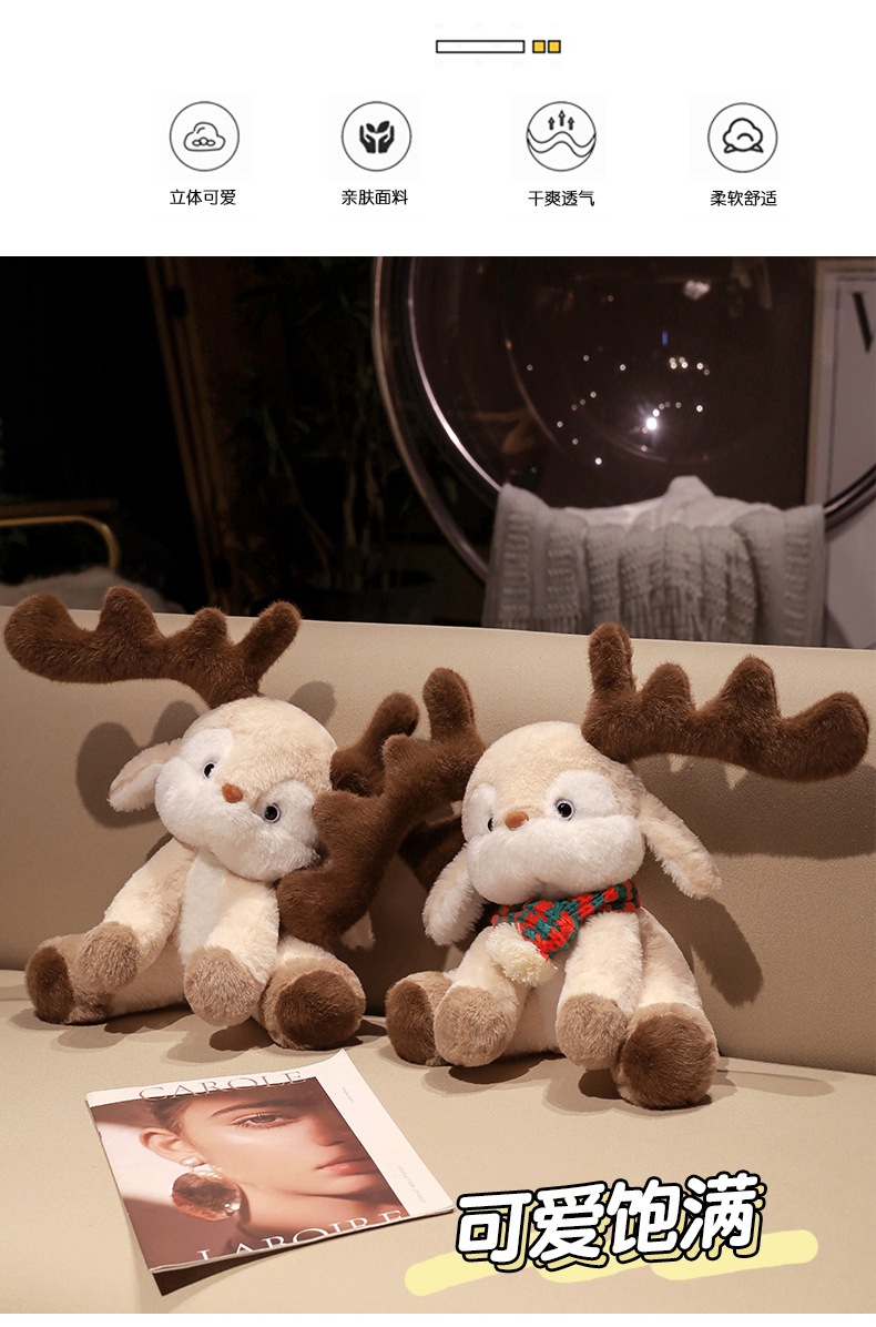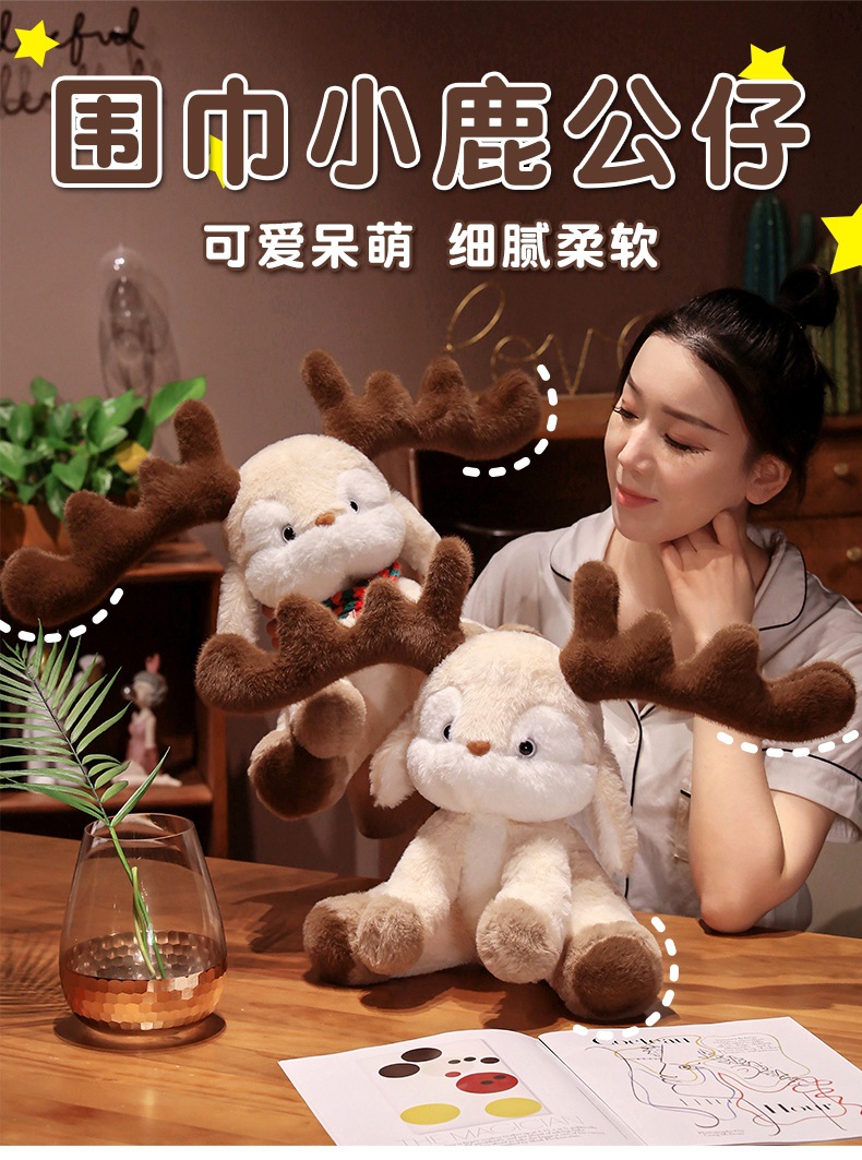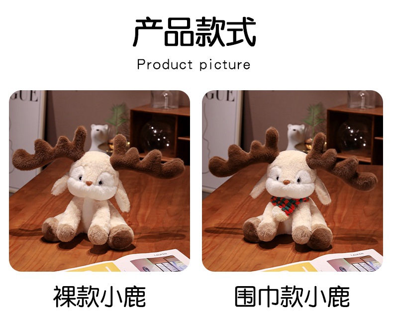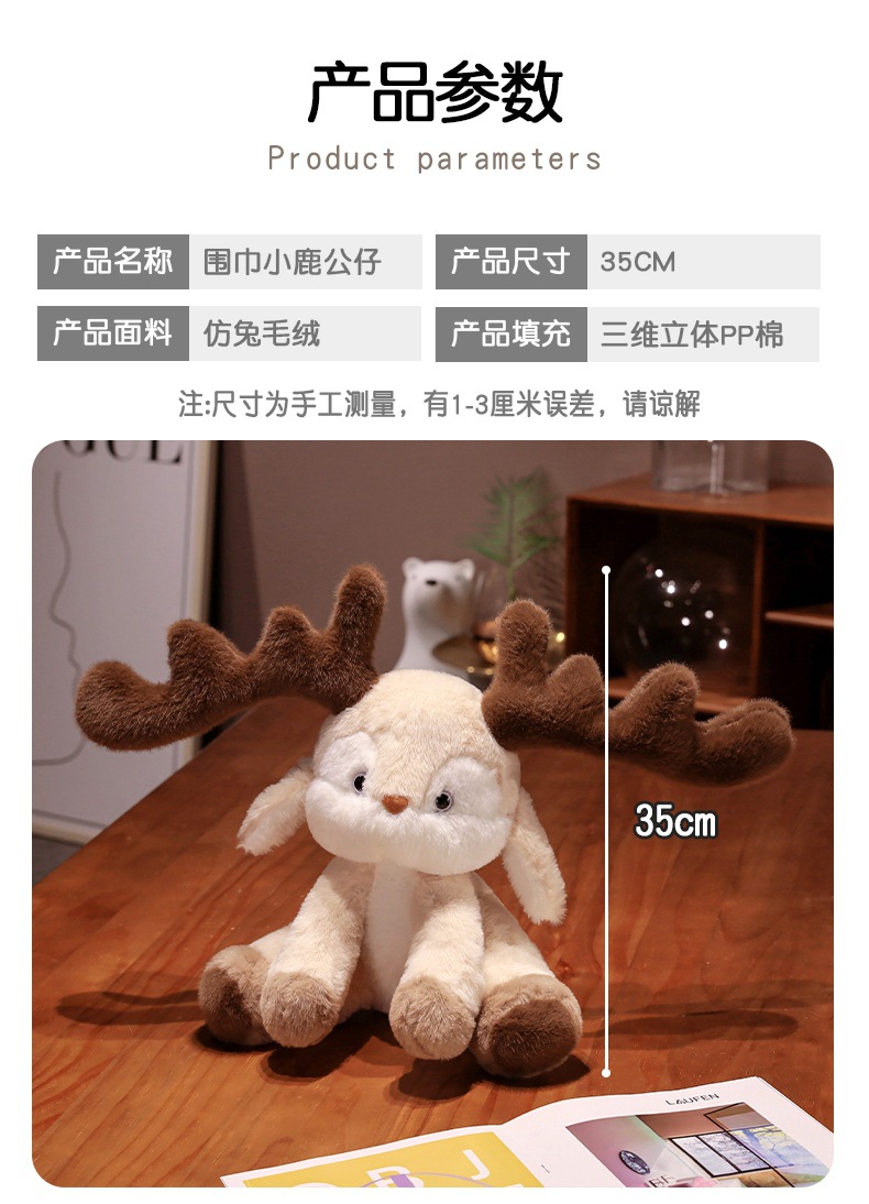 跨境可爱戴围巾圣诞小鹿公仔 可爱麋鹿毛绒玩具圣诞节日礼物批发
