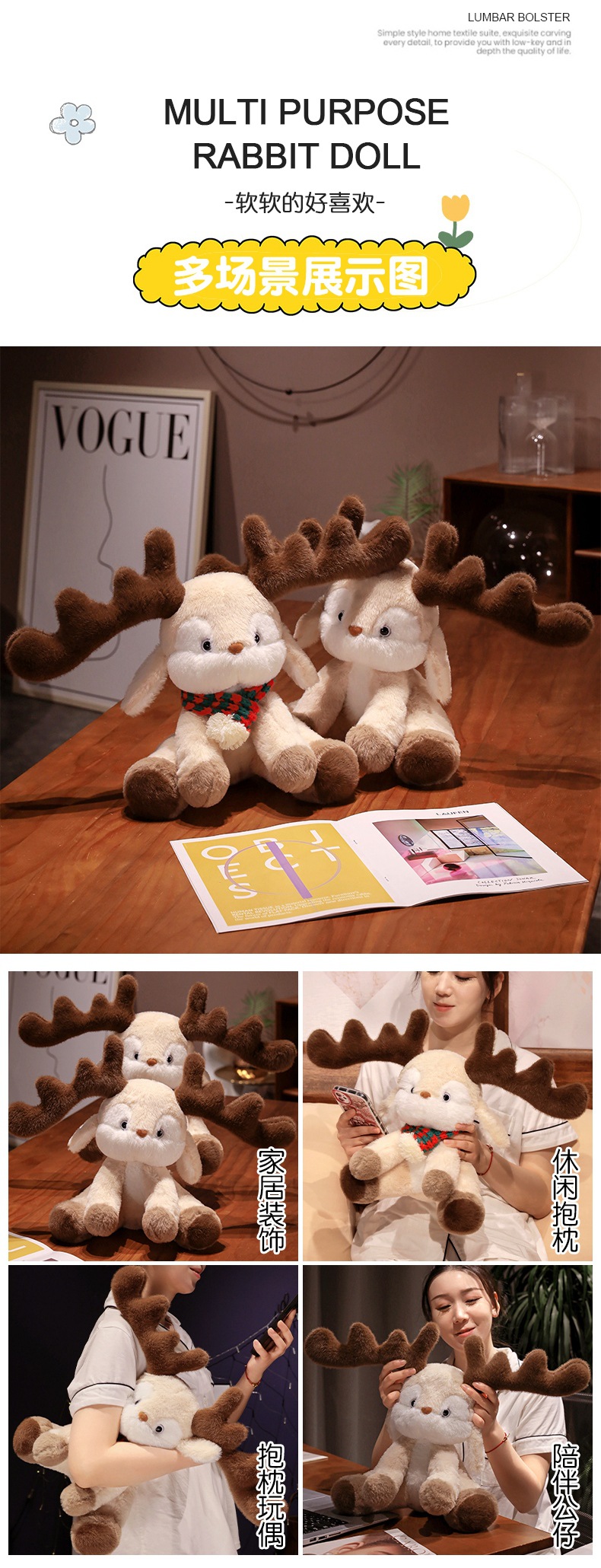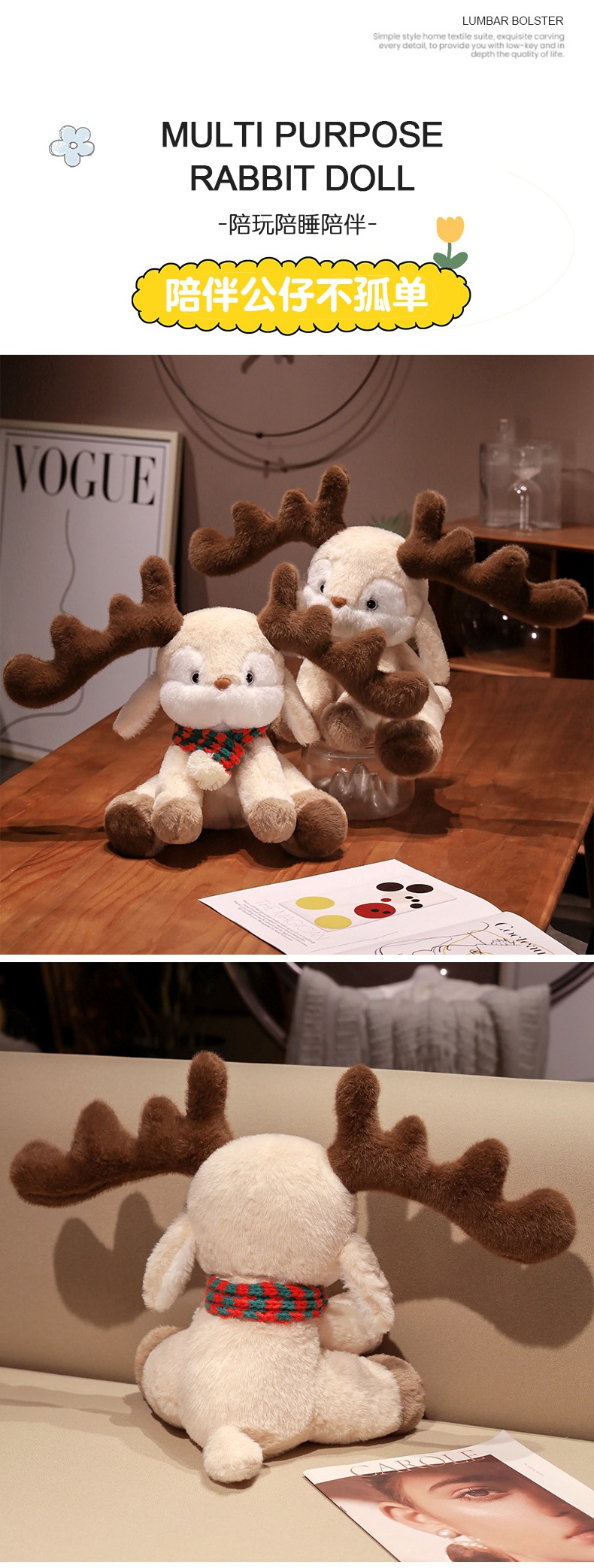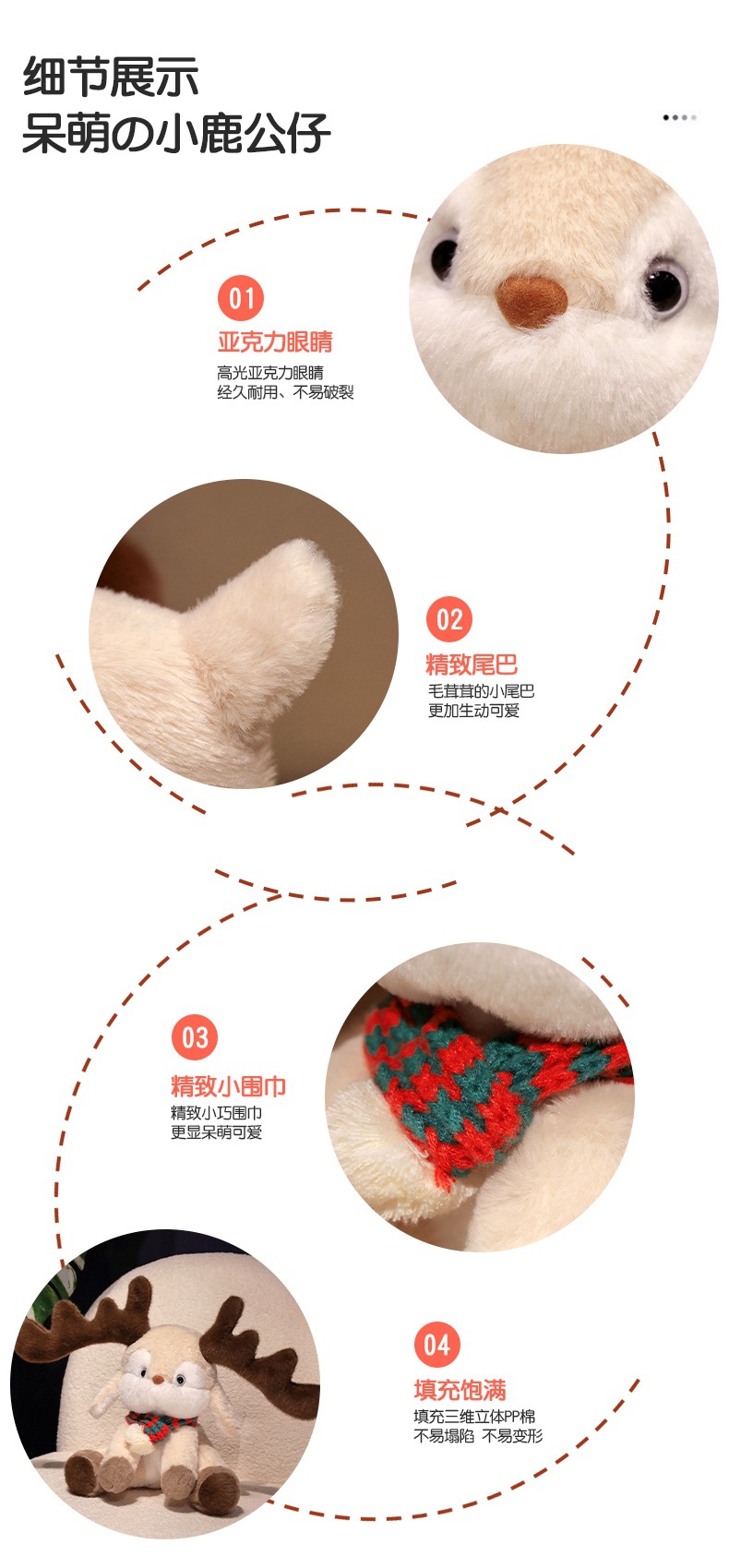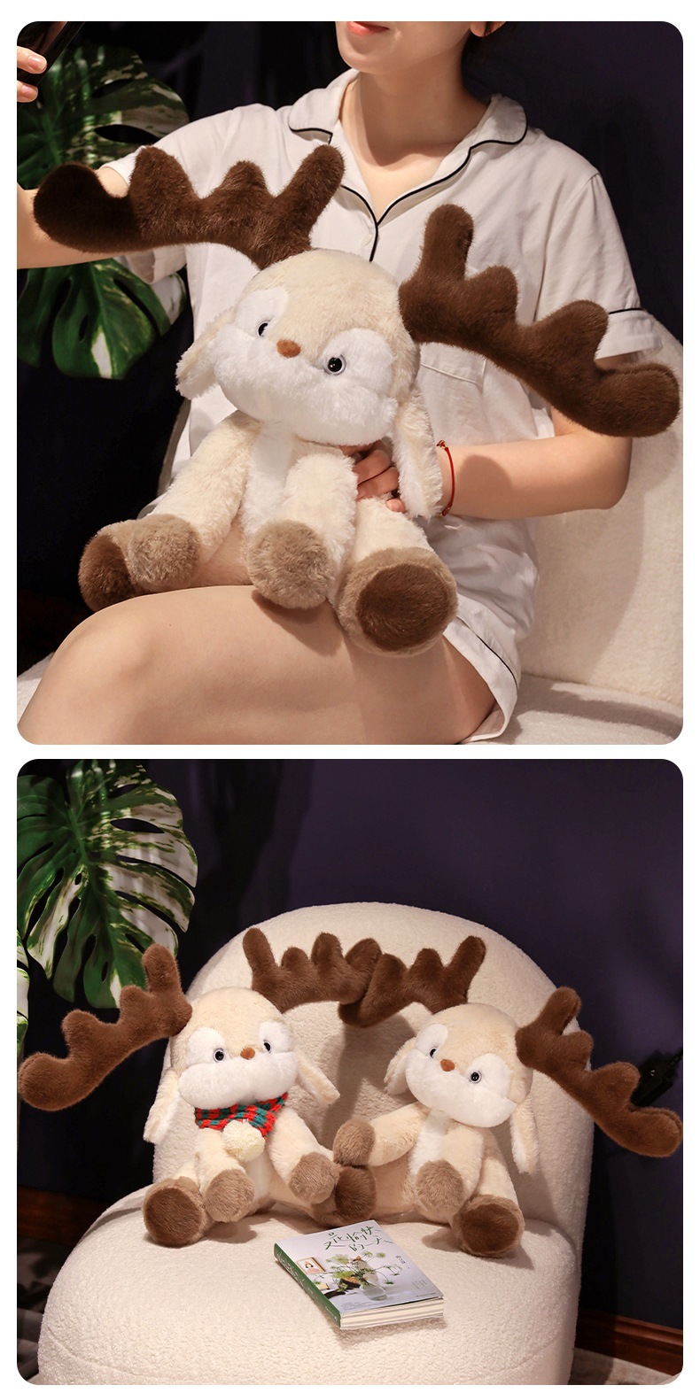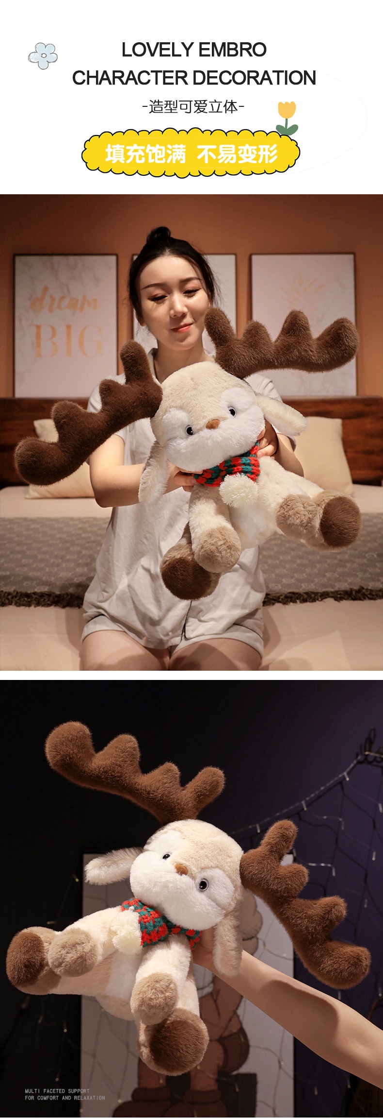 跨境可爱戴围巾圣诞小鹿公仔 可爱麋鹿毛绒玩具圣诞节日礼物批发