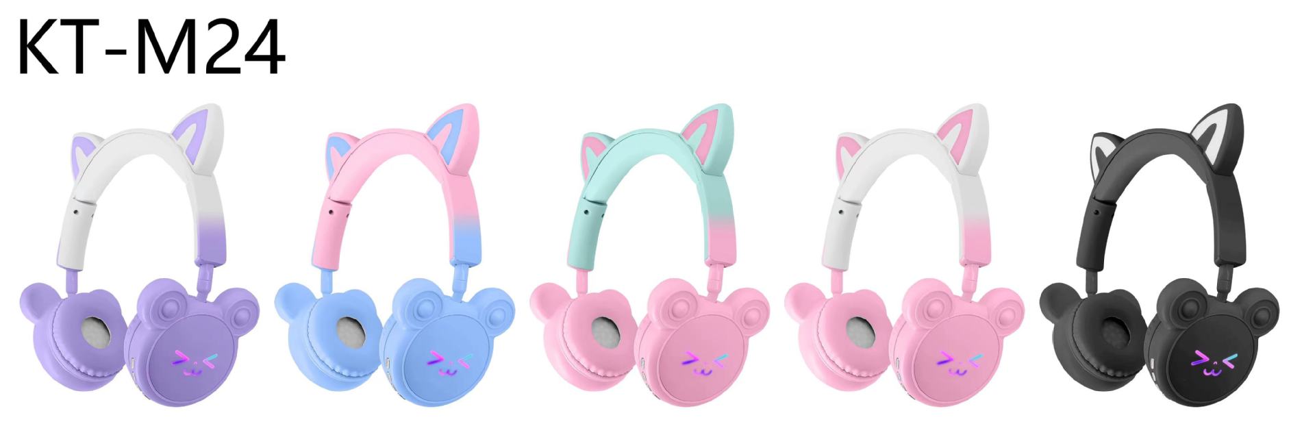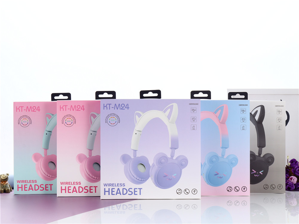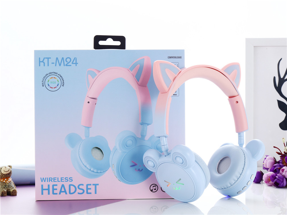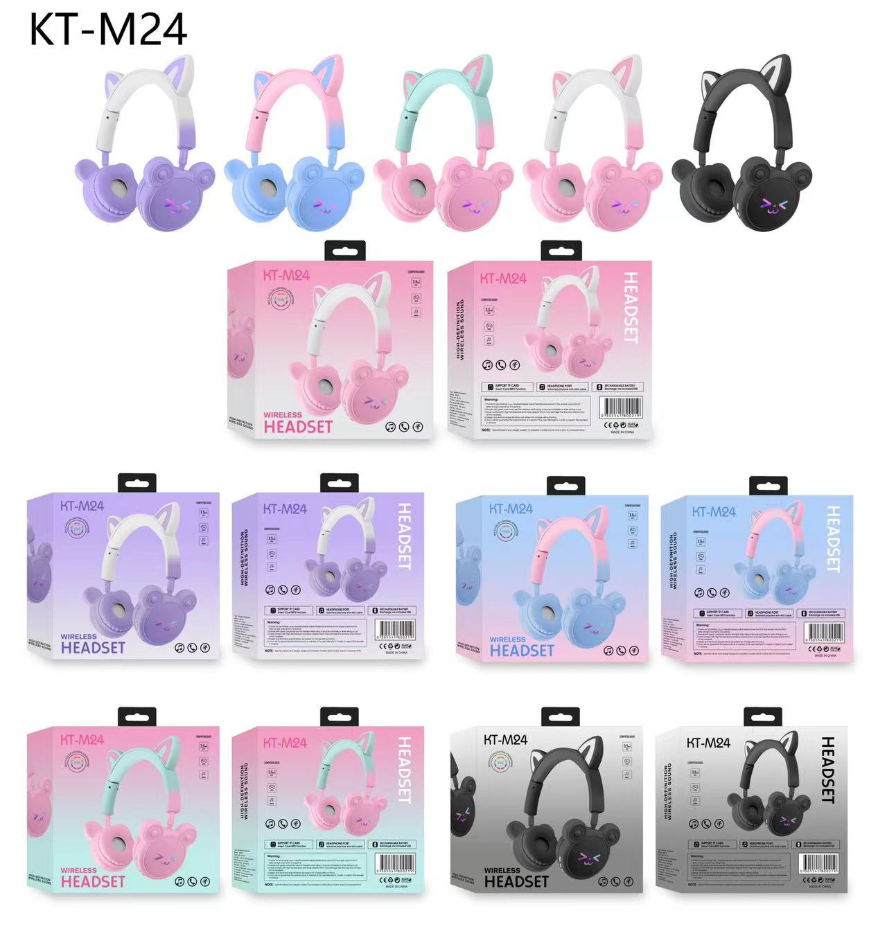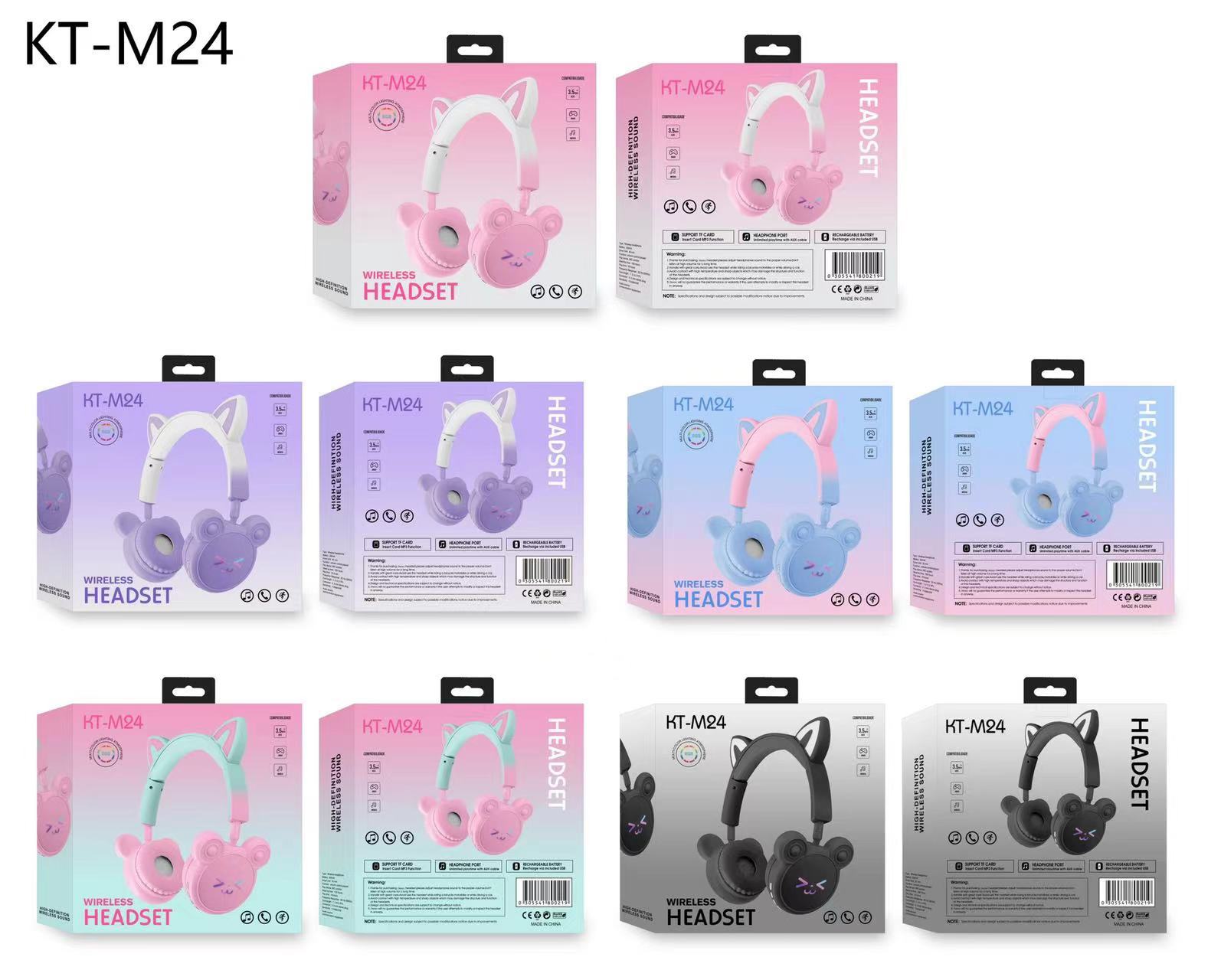 外贸跨镜新款KT-M24头戴式蓝牙耳机发光折叠可爱无线耳机批发直销