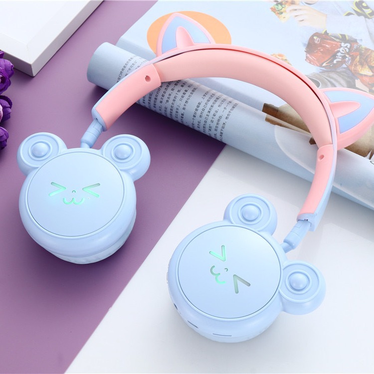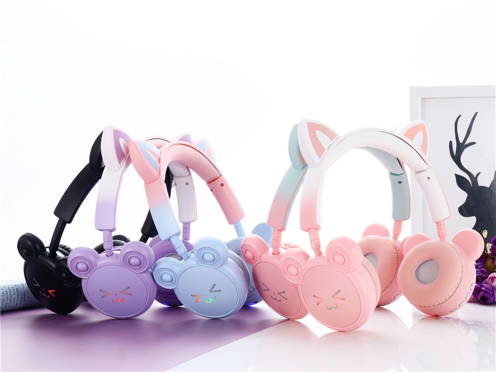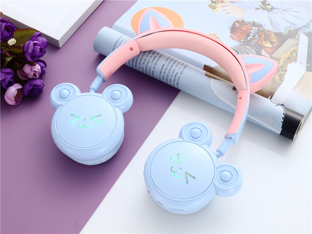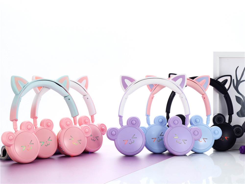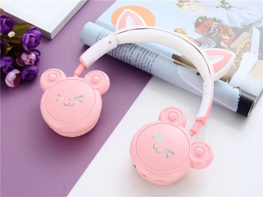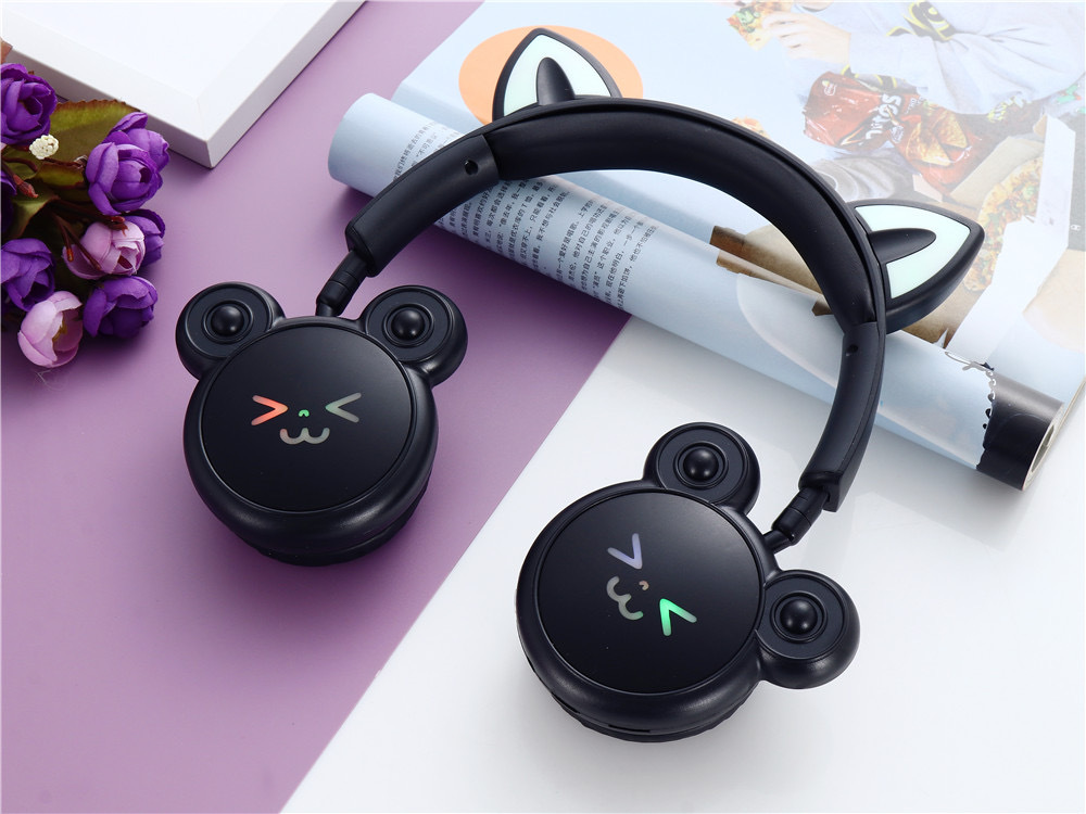 外贸跨镜新款KT-M24头戴式蓝牙耳机发光折叠可爱无线耳机批发直销