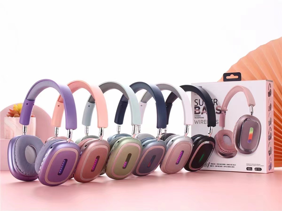 B23BT跨境潮流时尚RGB彩灯头戴蓝牙耳机无线耳麦插卡收音工厂批发