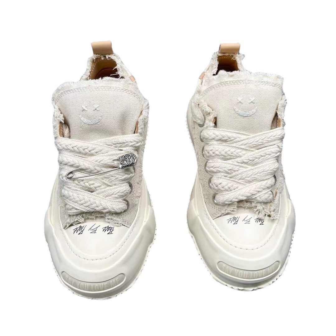 纯原吴建豪隐藏款同款帆布鞋开口笑棉花糖厚底男女情侣面包乞丐鞋