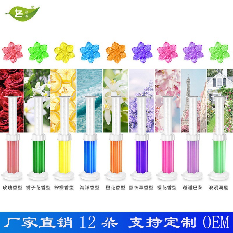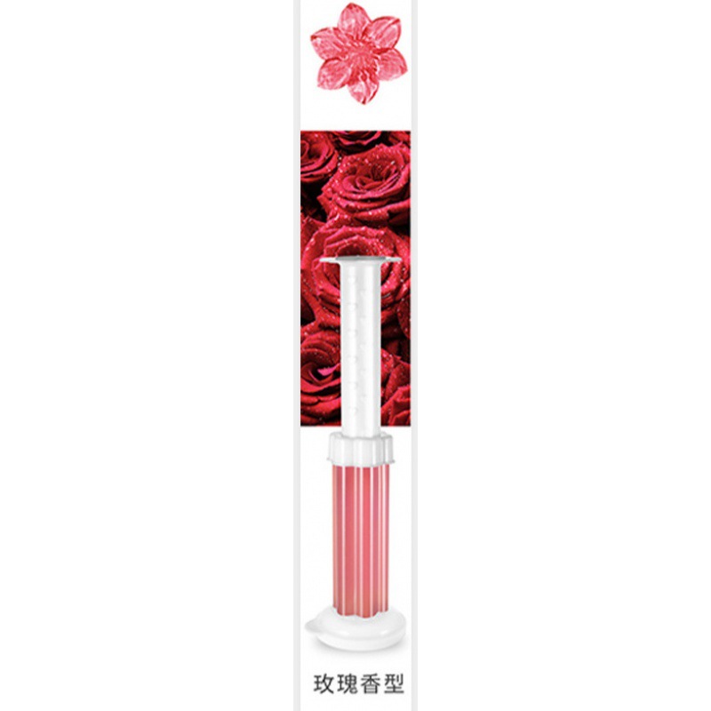 使用方法:轻轻挤压到便池或者马桶边缘,通过水冲散发芬芳,一支可打出12朵小花