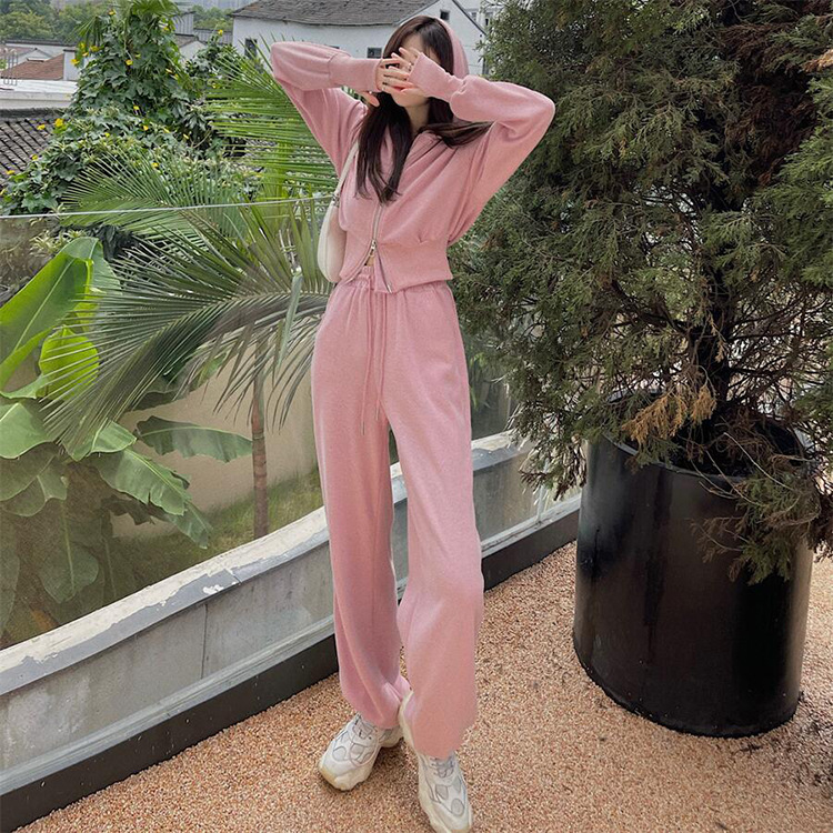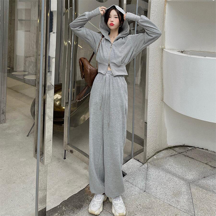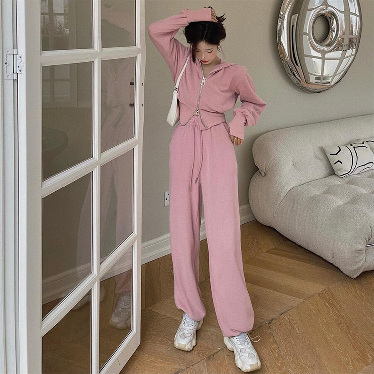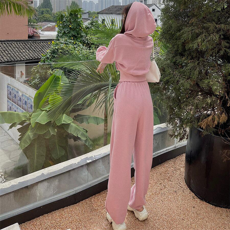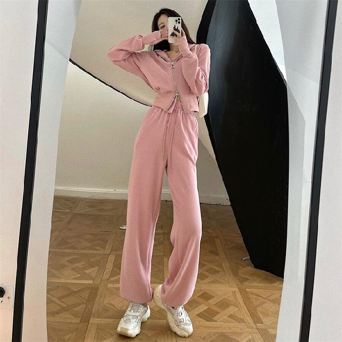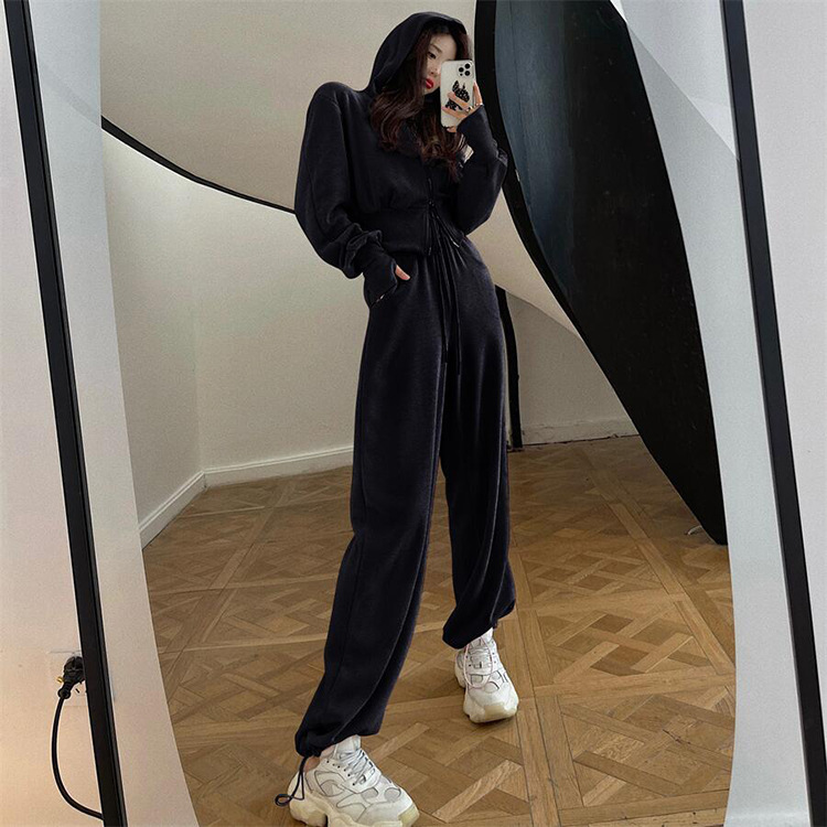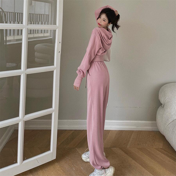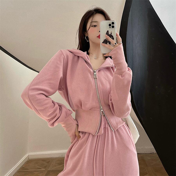 卫衣外套女春秋新款连帽长袖收腰小个子显瘦短款休闲运动套装上衣