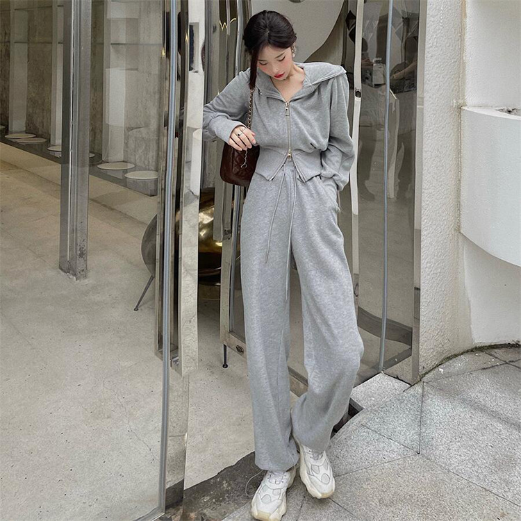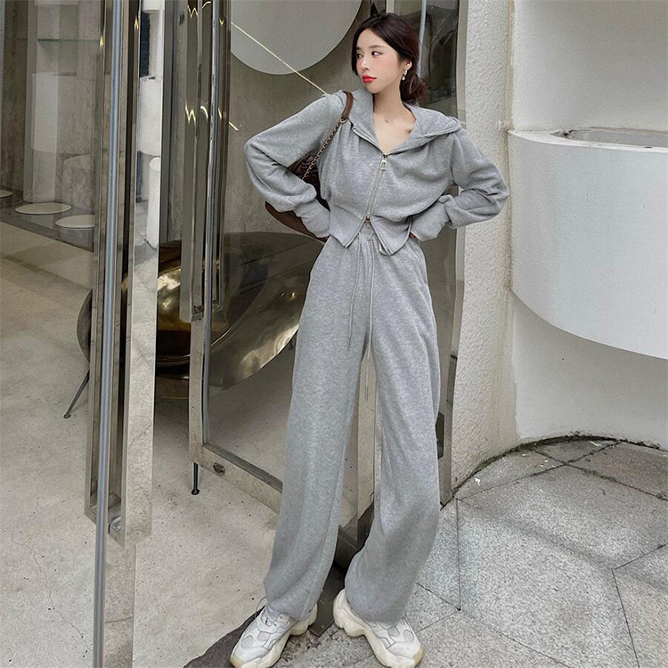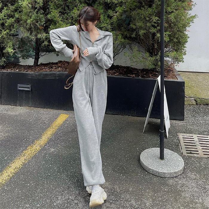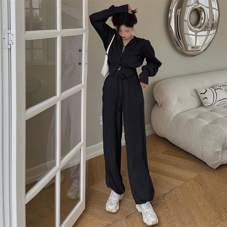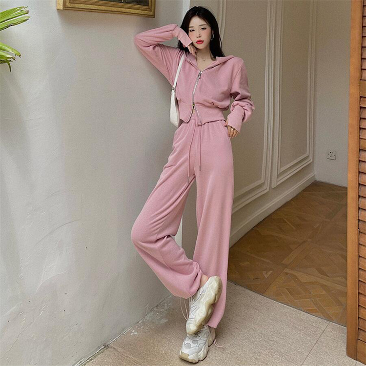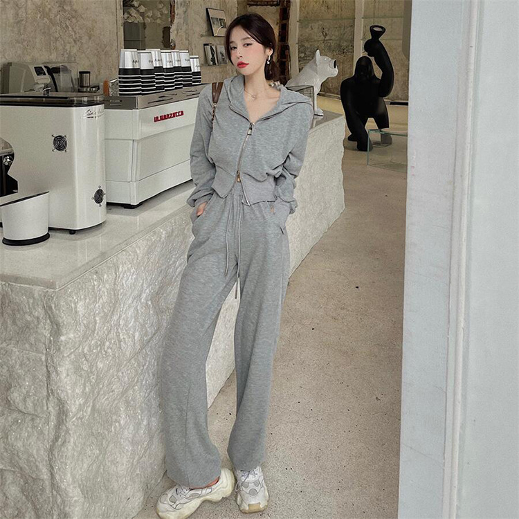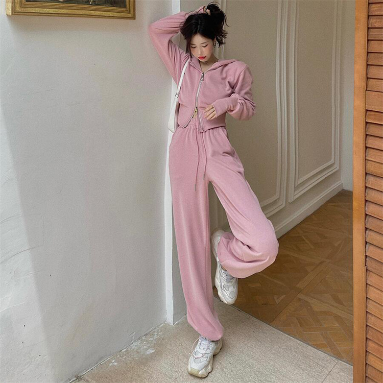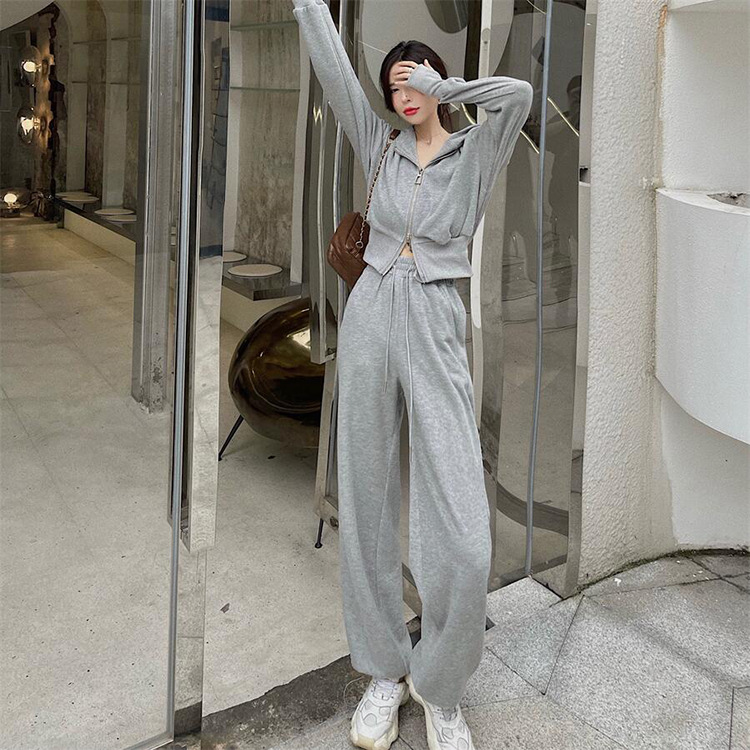 卫衣外套女春秋新款连帽长袖收腰小个子显瘦短款休闲运动套装上衣