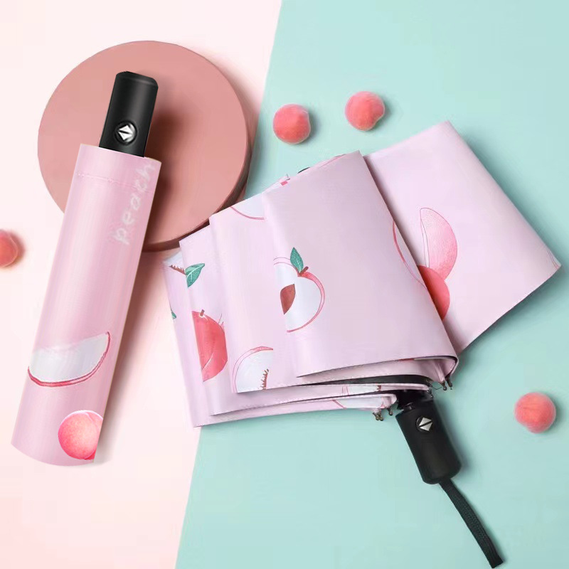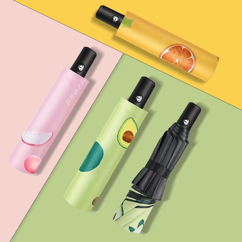 水果款图案全自动防晒雨伞晴雨折叠黑胶加印广告logo遮阳伞太阳伞