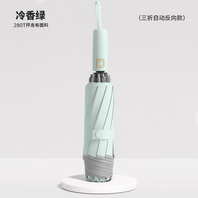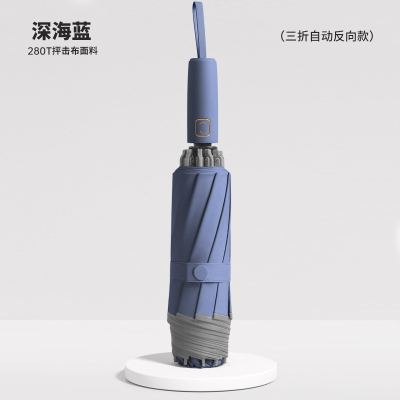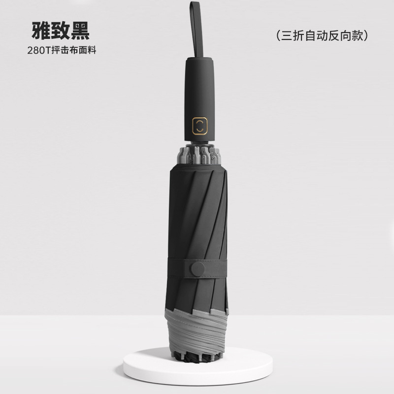 10骨三折自动反向伞包边反光条配色手柄商务晴雨伞加印logo广告伞