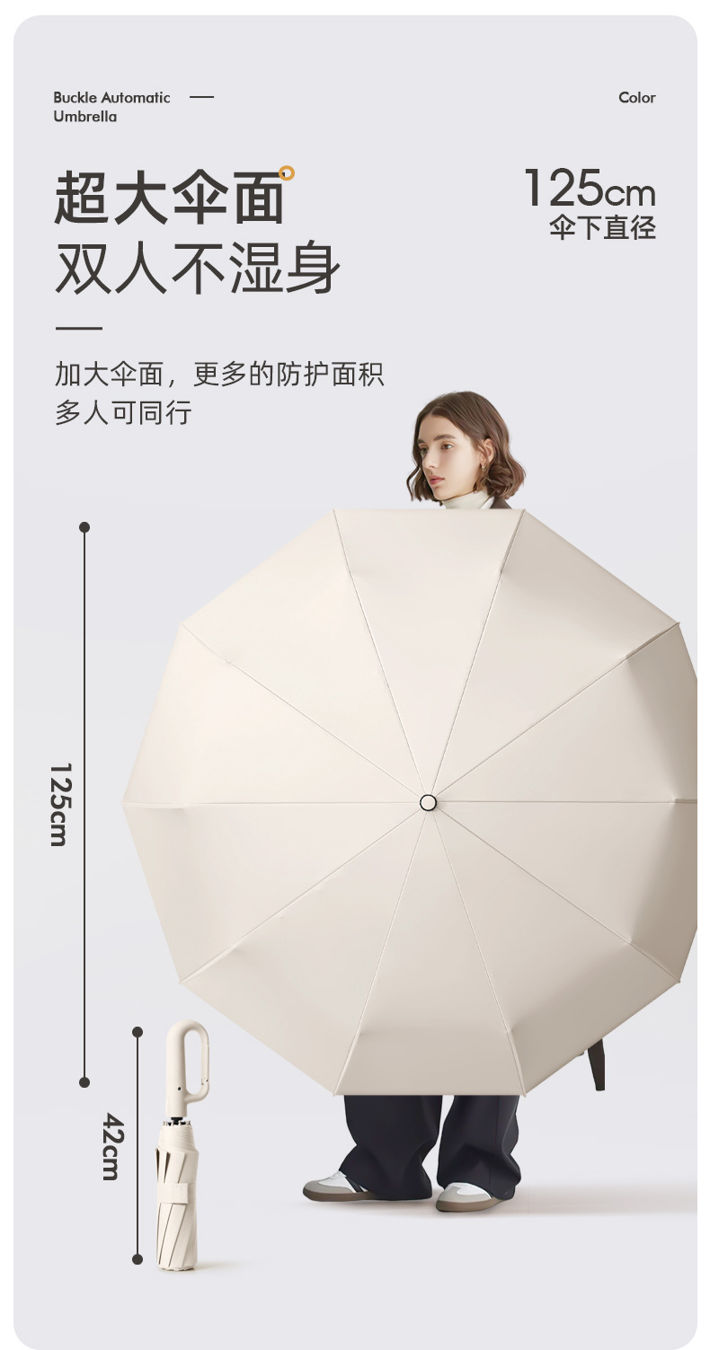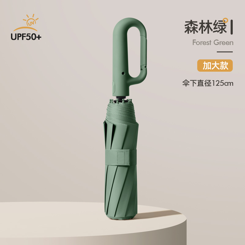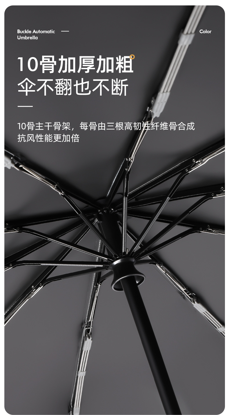 现货新款环扣简约全自动折叠商务雨伞配色手柄三折伞加印LOGO广告