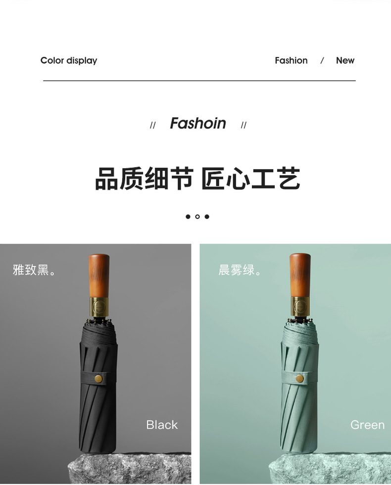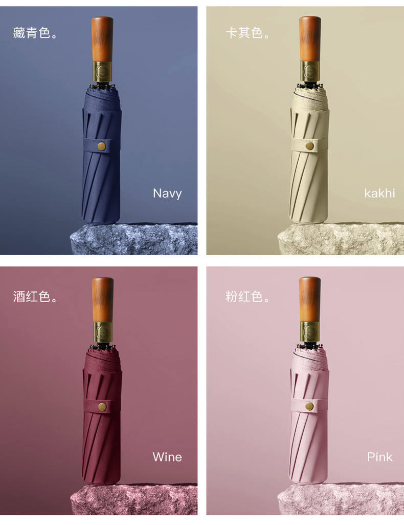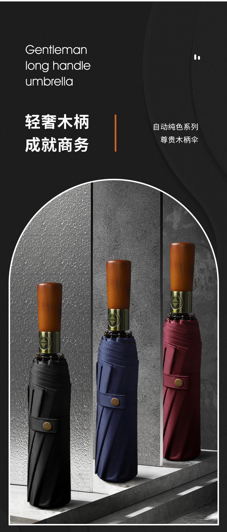 三折全自动晴雨伞折叠复古绅士雨伞定制广告伞实木手柄刻字印刷伞