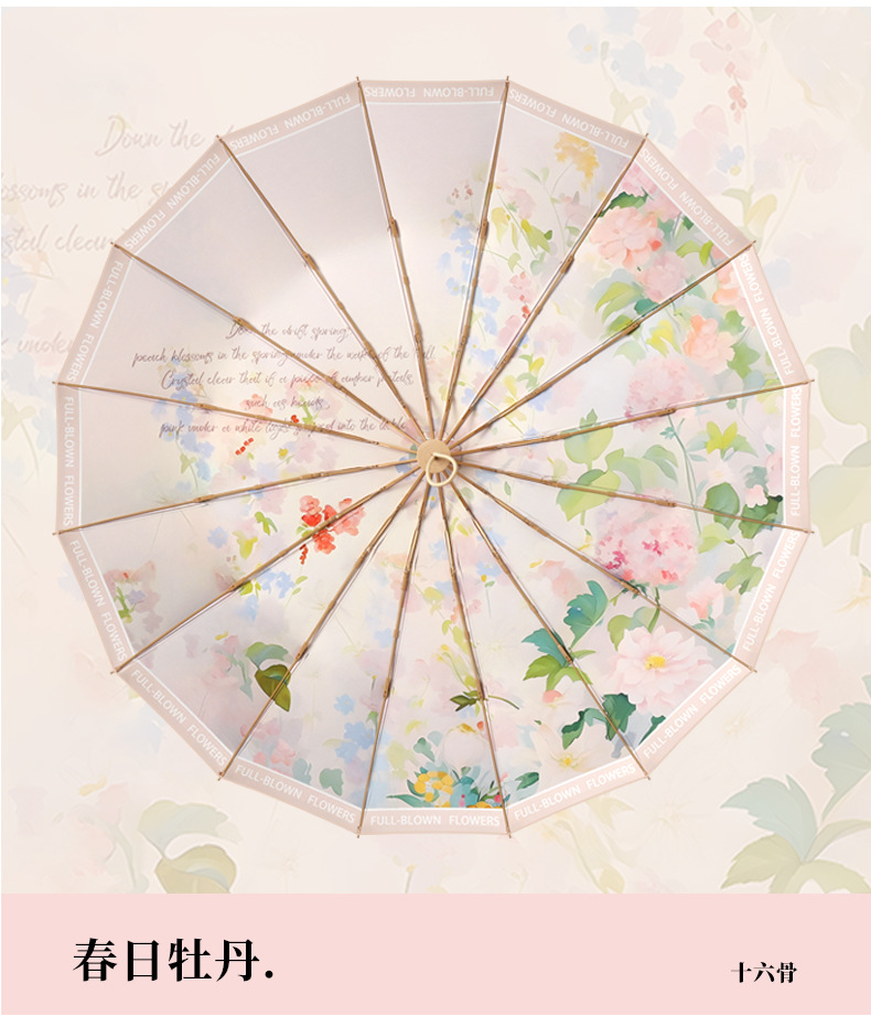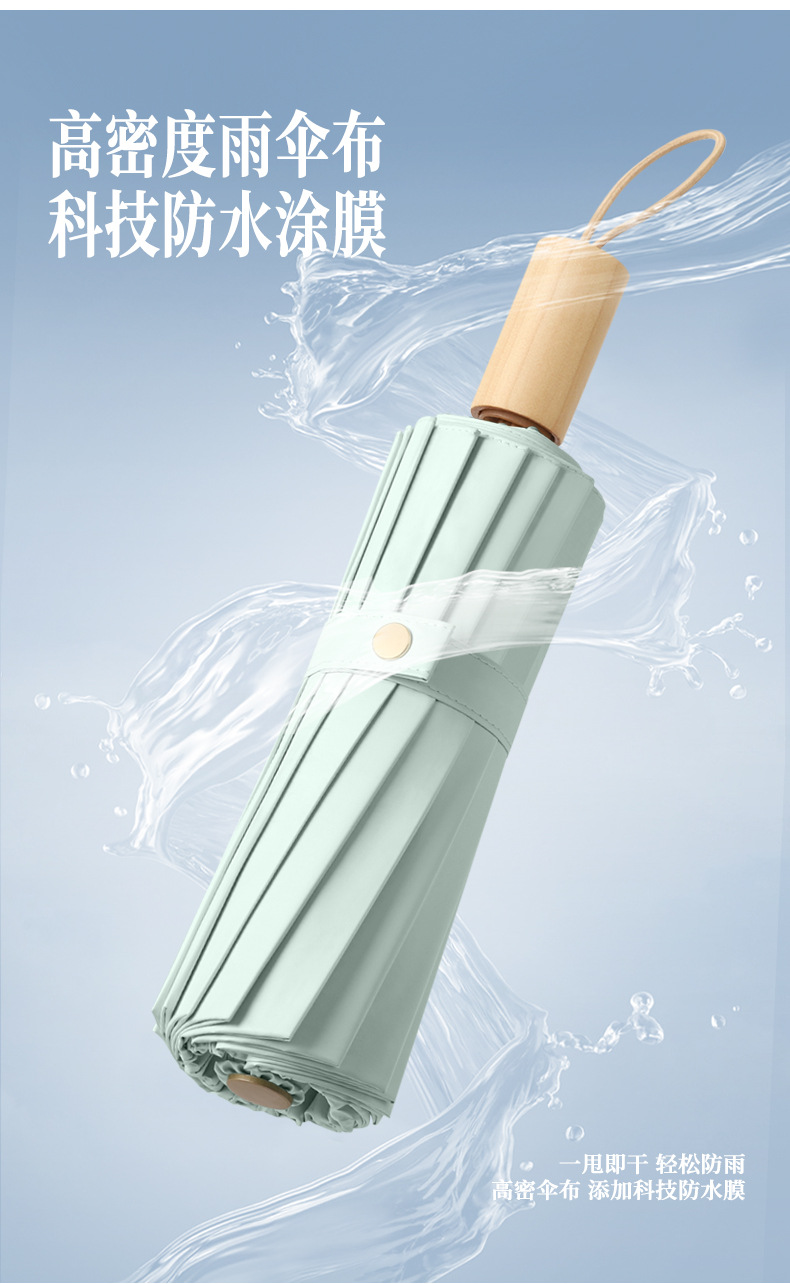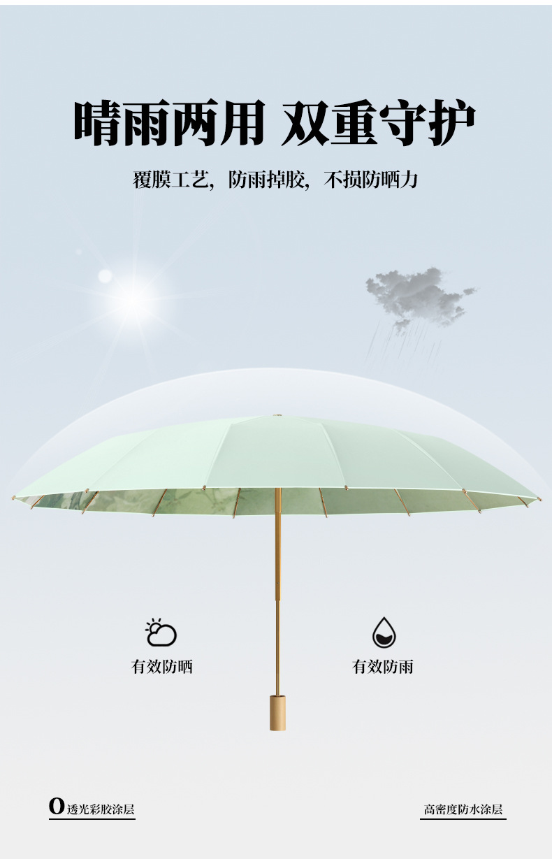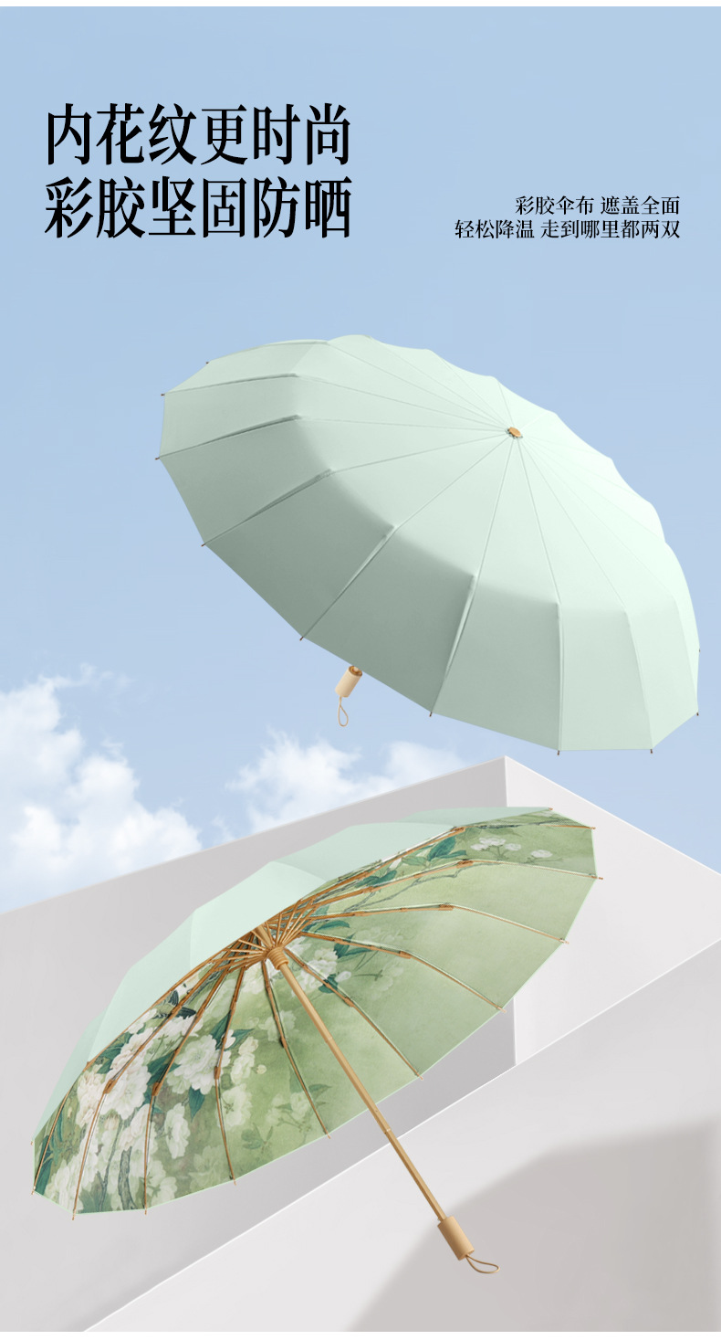 现货16骨手开三折彩胶晴雨伞实木柄遮阳伞防晒太阳伞现货一件代发