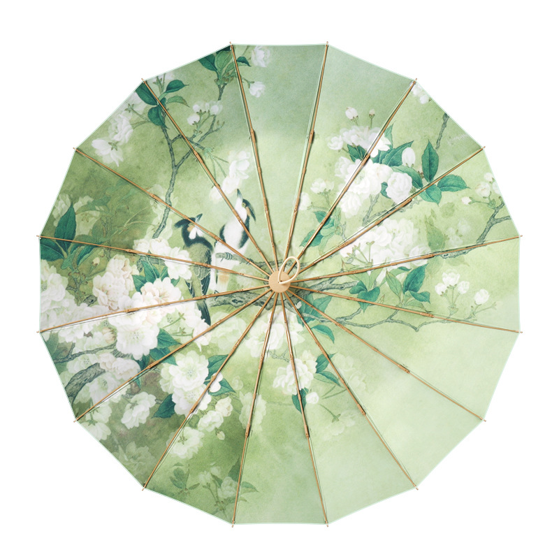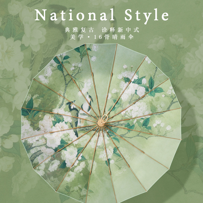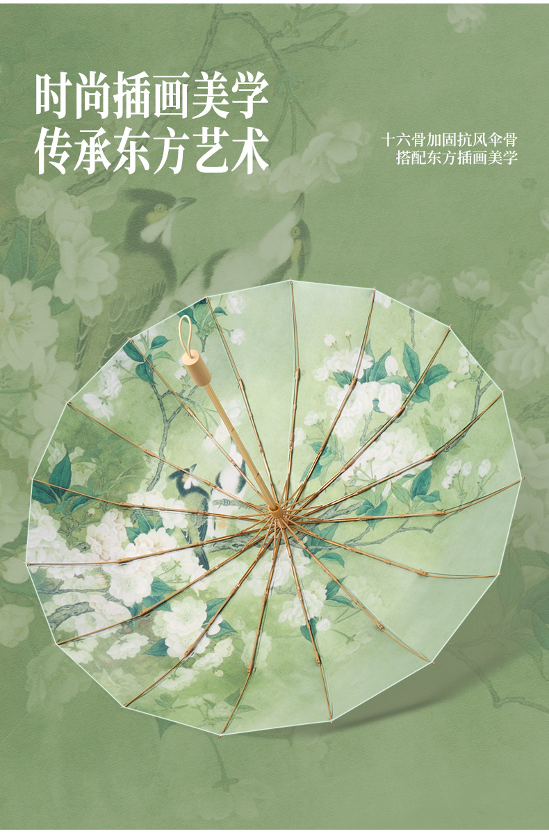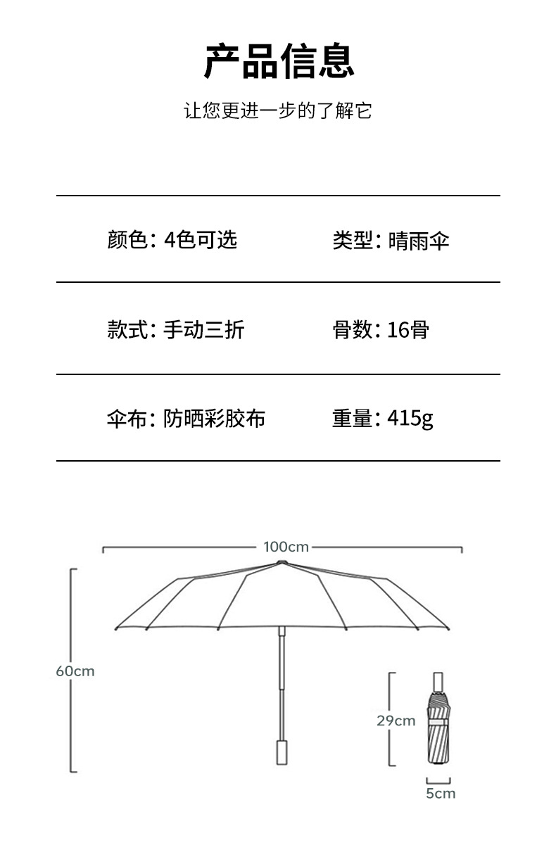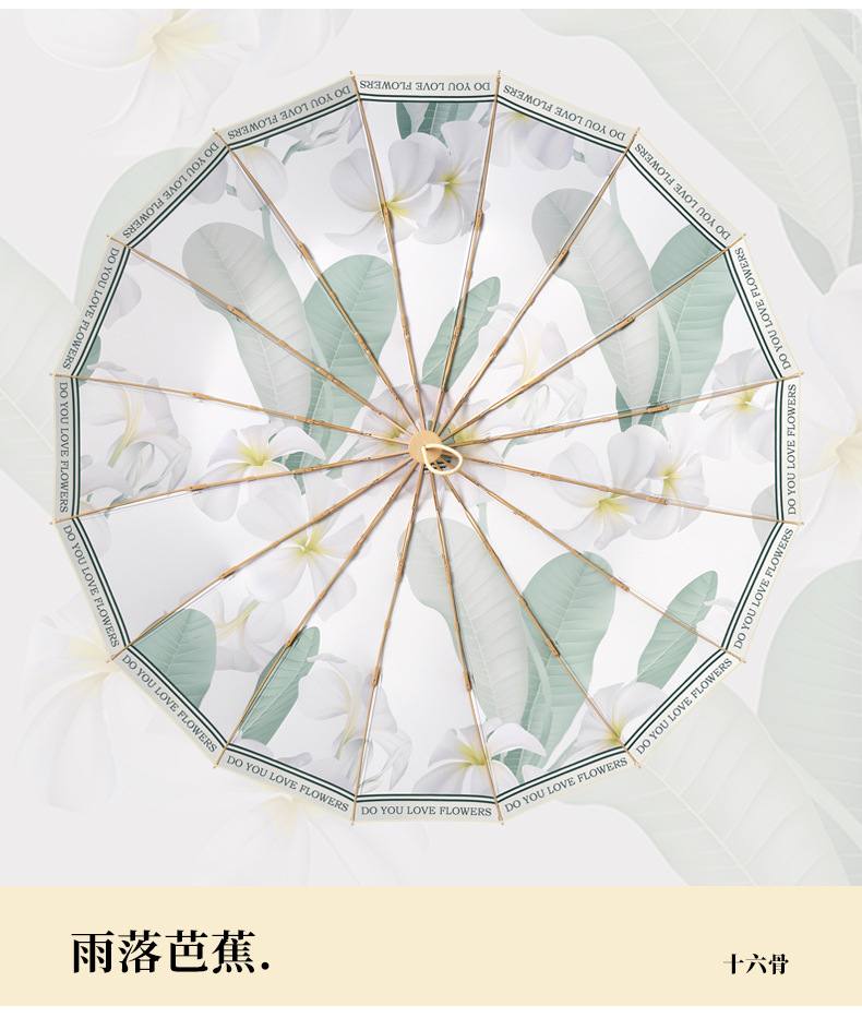 现货16骨手开三折彩胶晴雨伞实木柄遮阳伞防晒太阳伞现货一件代发