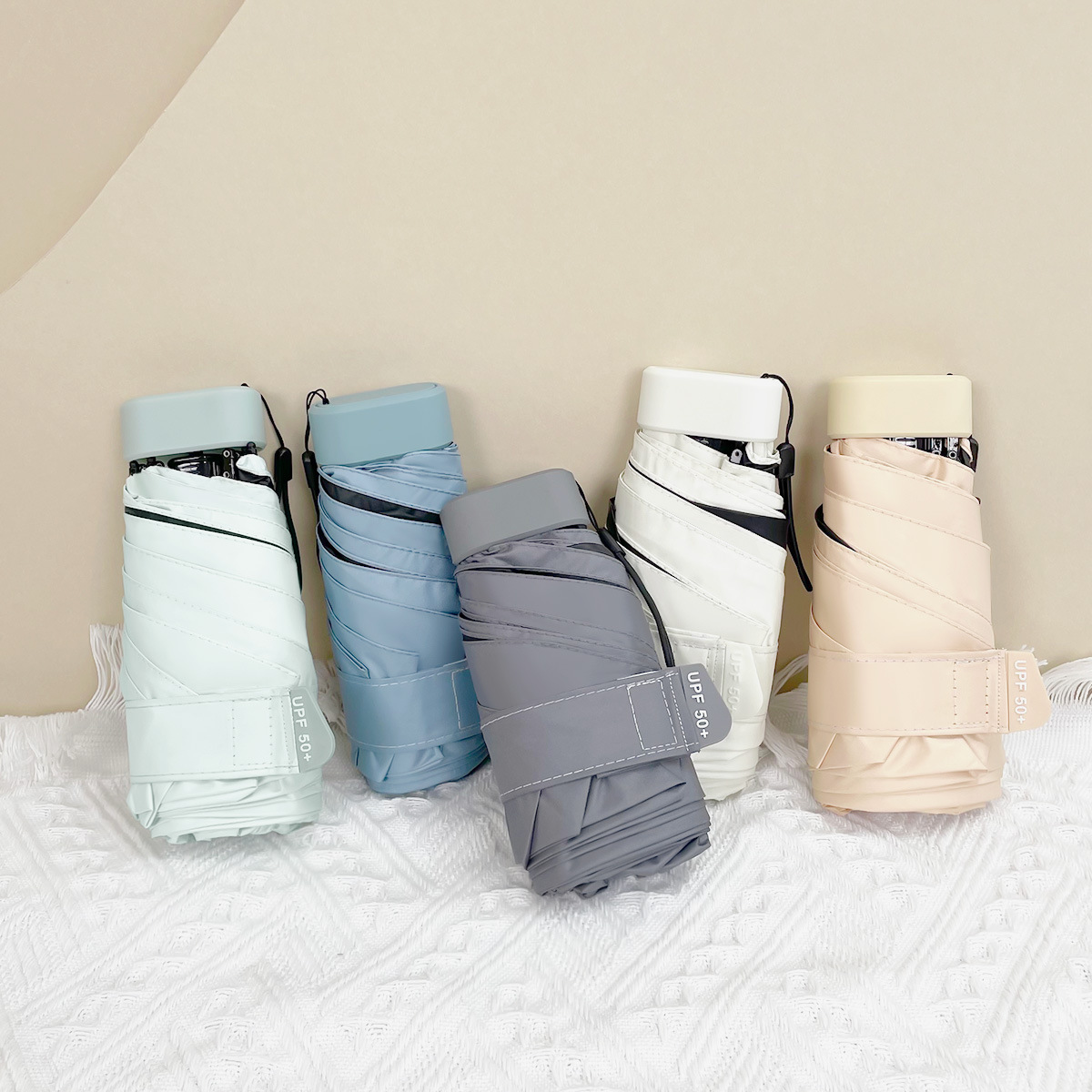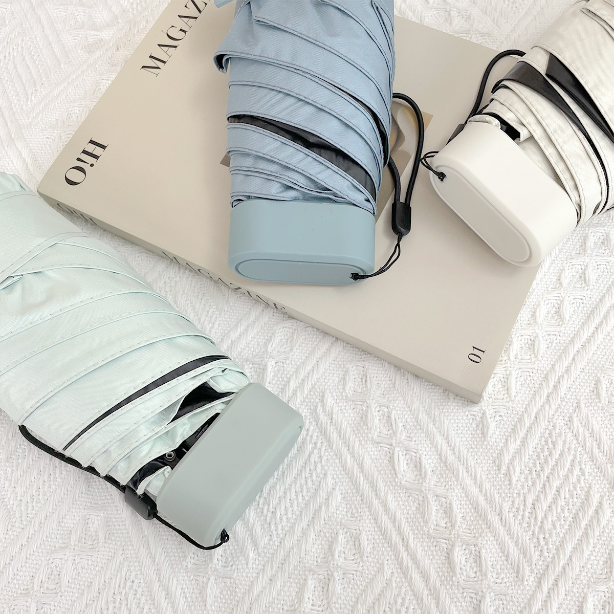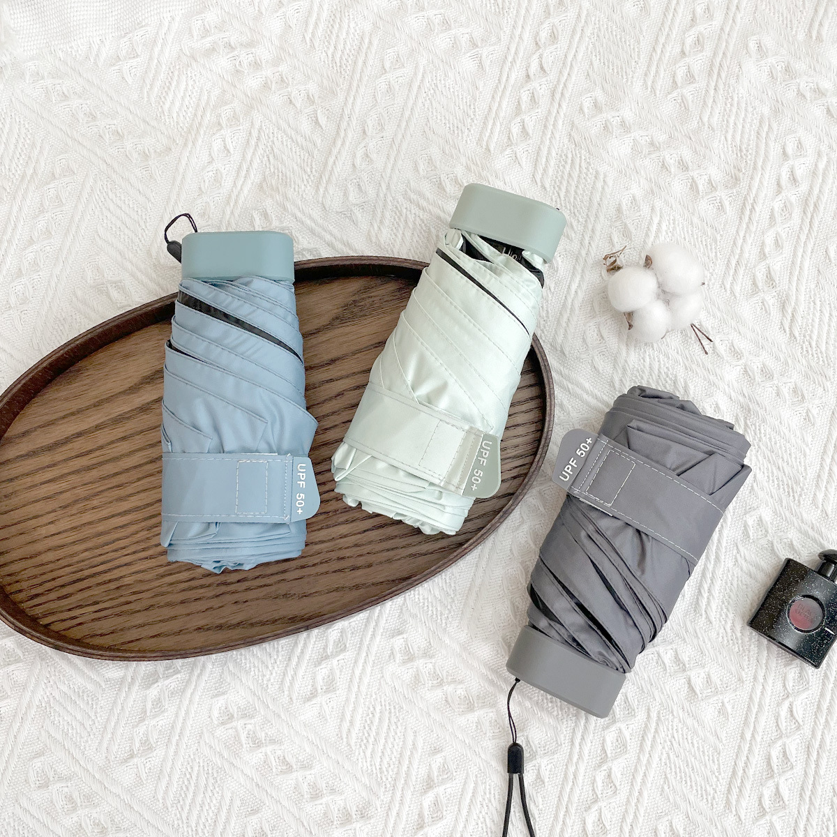 现货创意黑胶防晒晴雨伞迷你六折伞女小口袋胶囊晴雨两用太阳伞