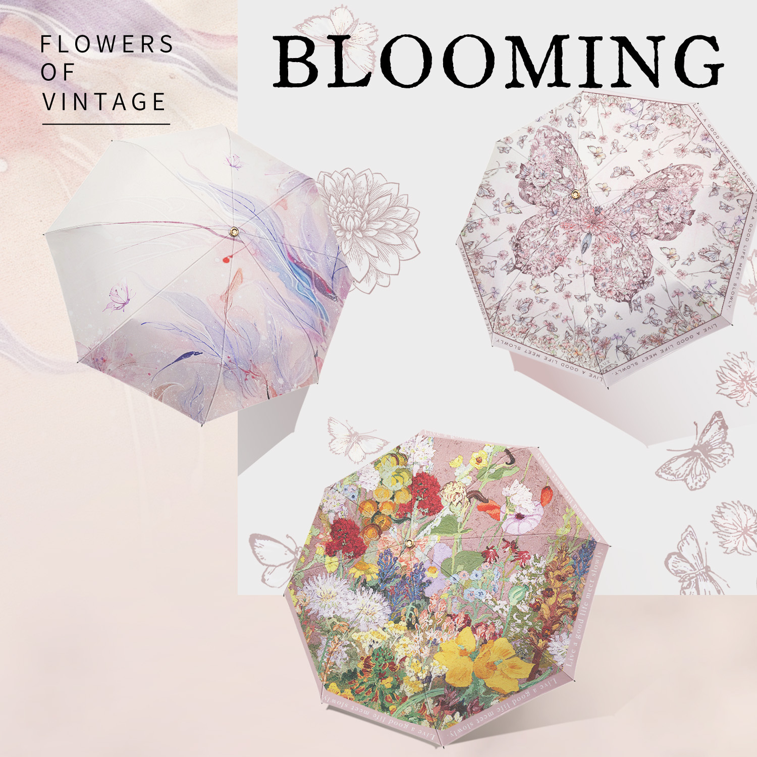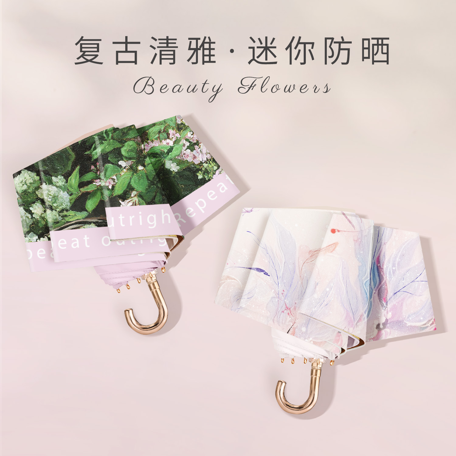 法式油画五折小金勾遮阳伞防紫外线女晴雨雨伞太阳伞小巧便携
