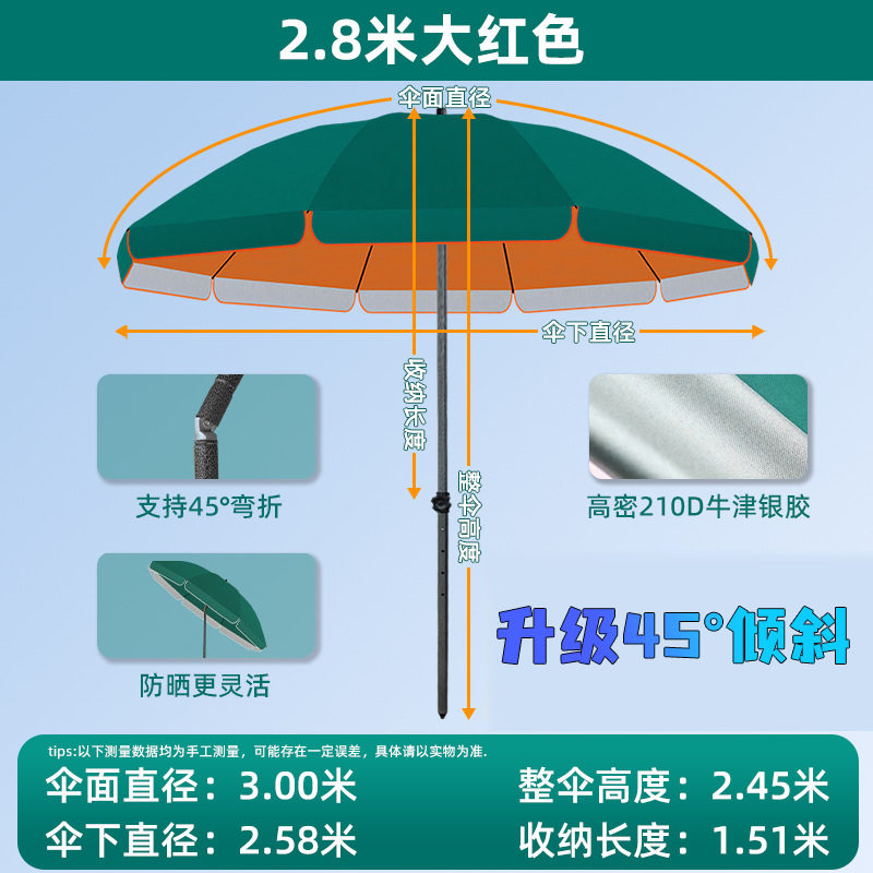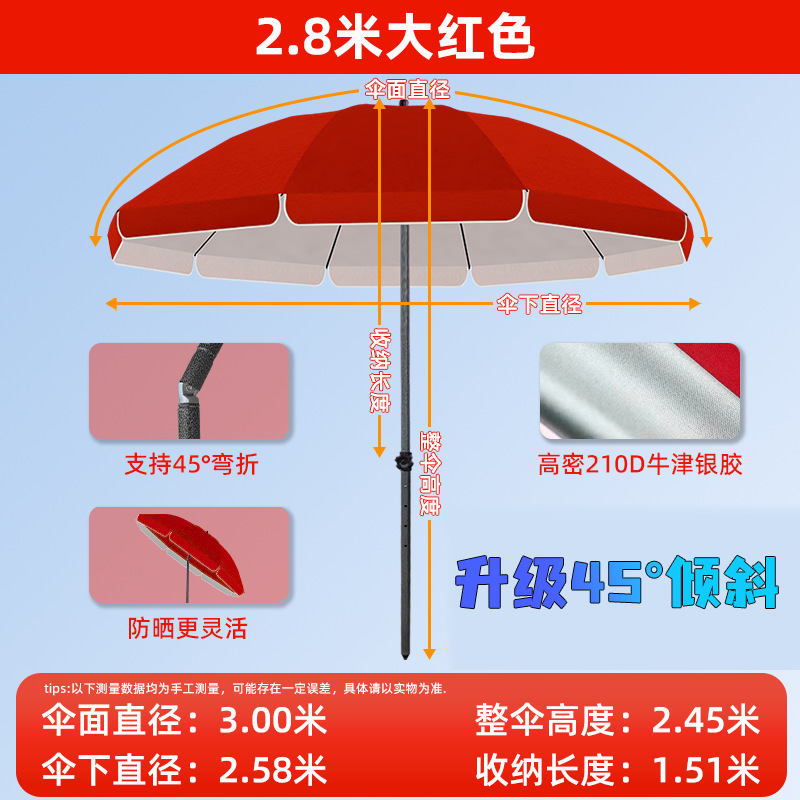 户外遮阳伞可倾斜圆形商用摆摊大号伞可折叠地摊集市沙滩伞广告伞