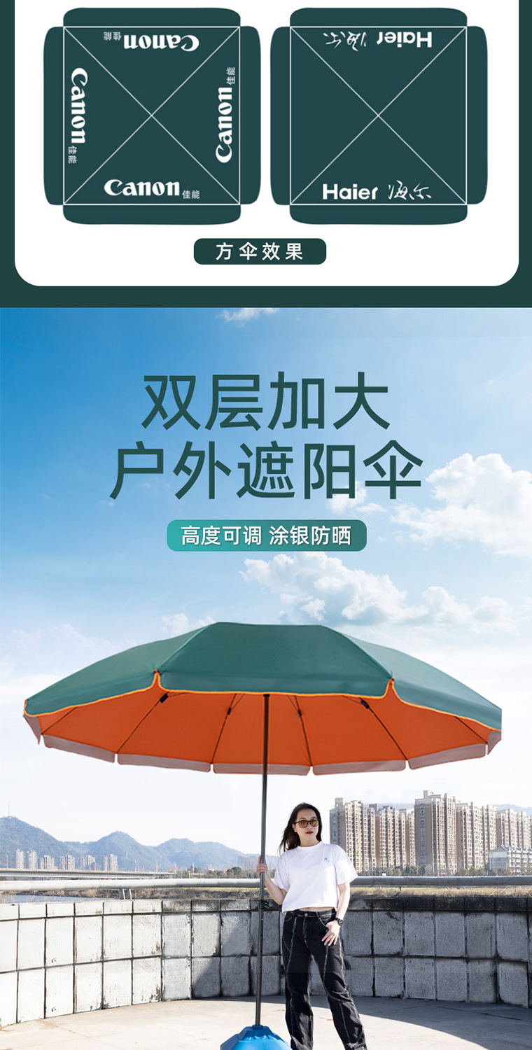 大伞圆伞双层银胶防晒防紫外线防水牛津布庭院伞摆摊伞防生锈印刷