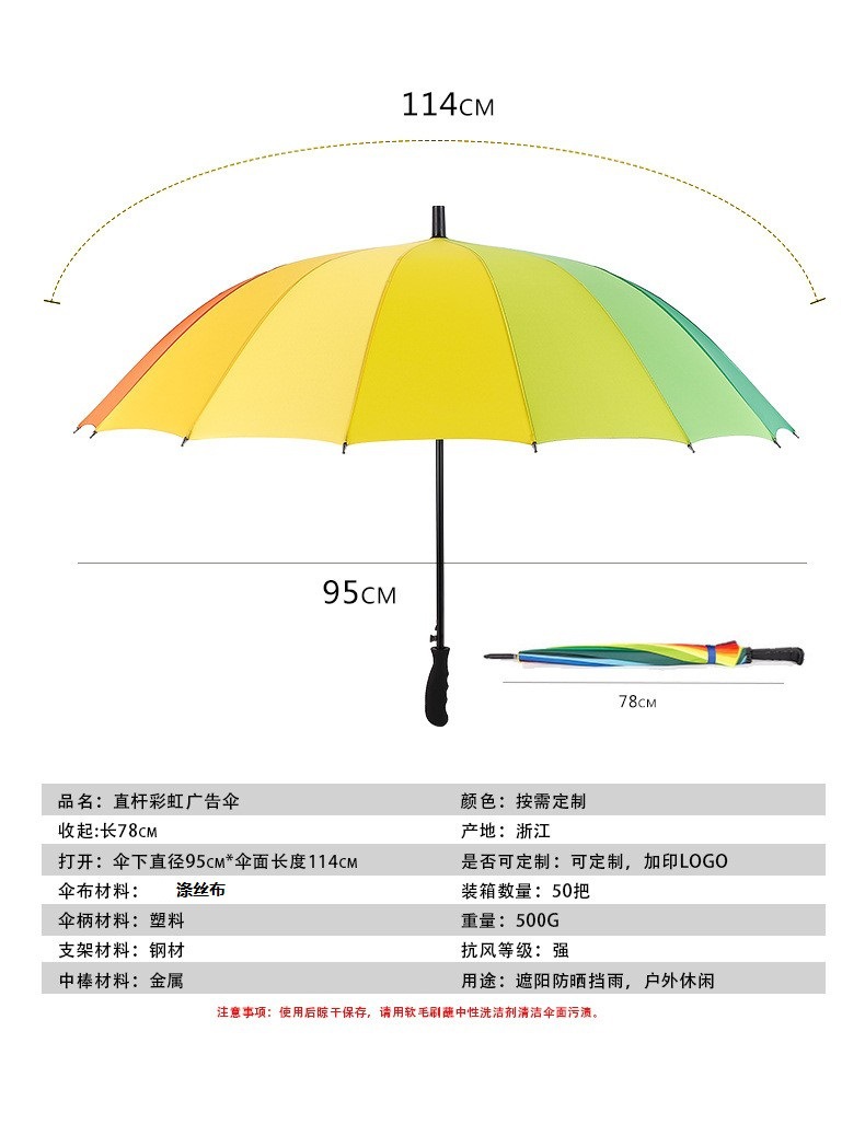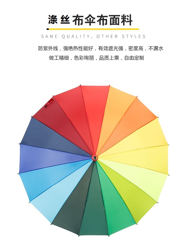 厂家批发16K创意彩虹伞 长柄自动防风雨伞直杆礼品广告伞设计logo